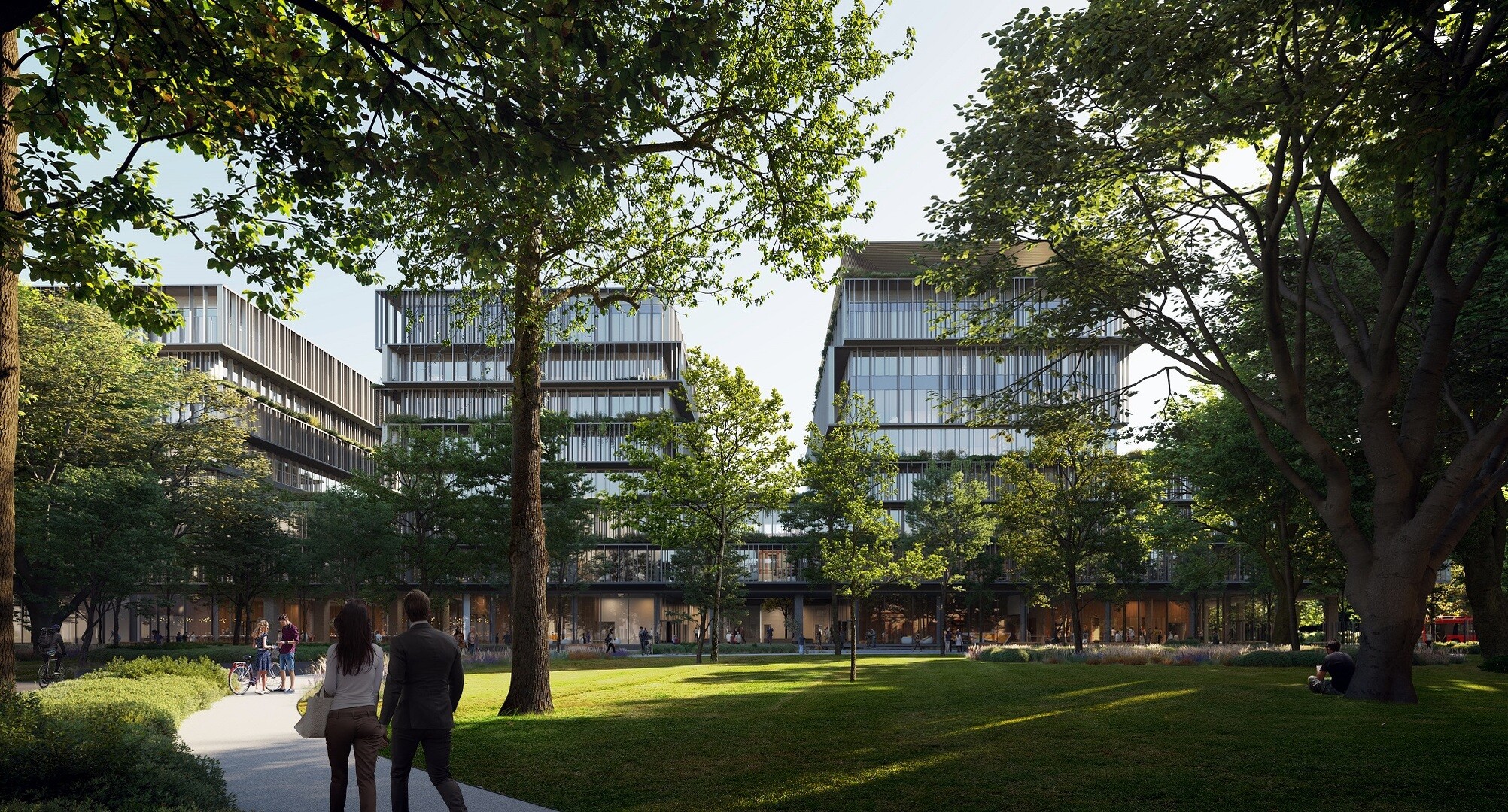 A monumentalitást a transzparens homlokzatok légiesíthetik majd, továbbá a felületeket alumínium lamellarendszerrel fedik és tagolják. Az említett zöld homlokzat szintén enyhítheti a léptéket, továbbá a tornyok között cour’d honneur kialakítású kerteket terveztek.