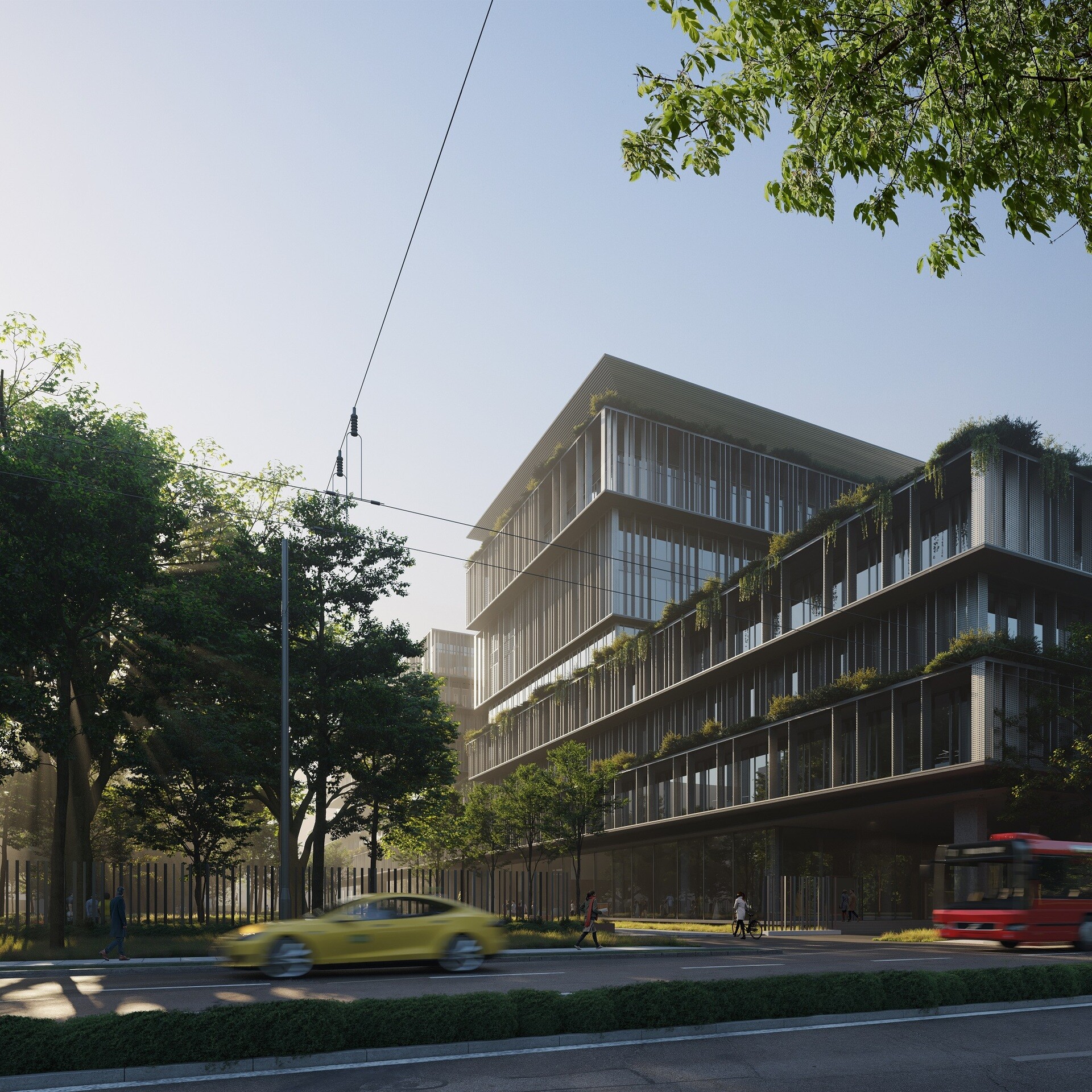 A Stefánia úti saroknál magasodó kollégiumhoz képest az utcaszintről nézve hátrébb húzódó tornyokat álmodtak meg, a gépészetet plusz szint kialakításával takarják el a tetőn. A magasszinti tömegek fiókszerű kiugratásai lehetőséget adnak kertek, növények futtatására is – ebben a tekintetben a milánói Bosco Verticale jelenleg is működő gyakorlata kifejezetten minta volt Schranz Mihály, a Property Market ügyvezető igazgatója szerint.