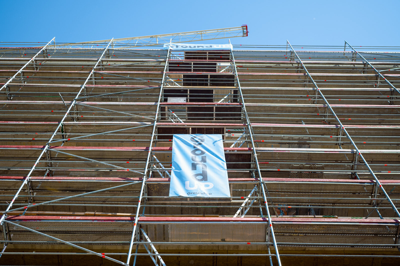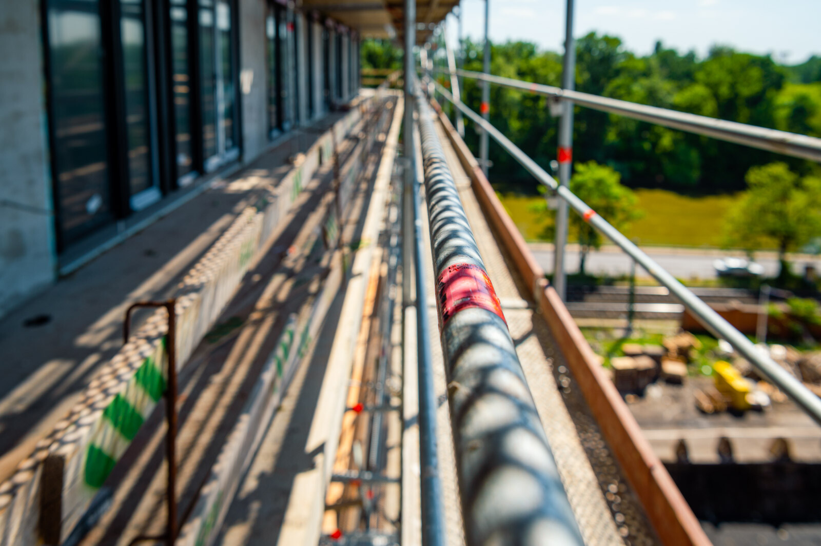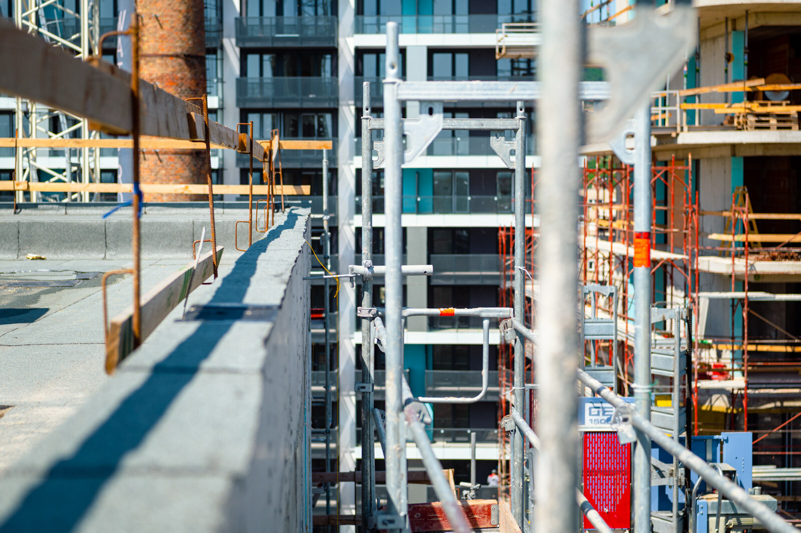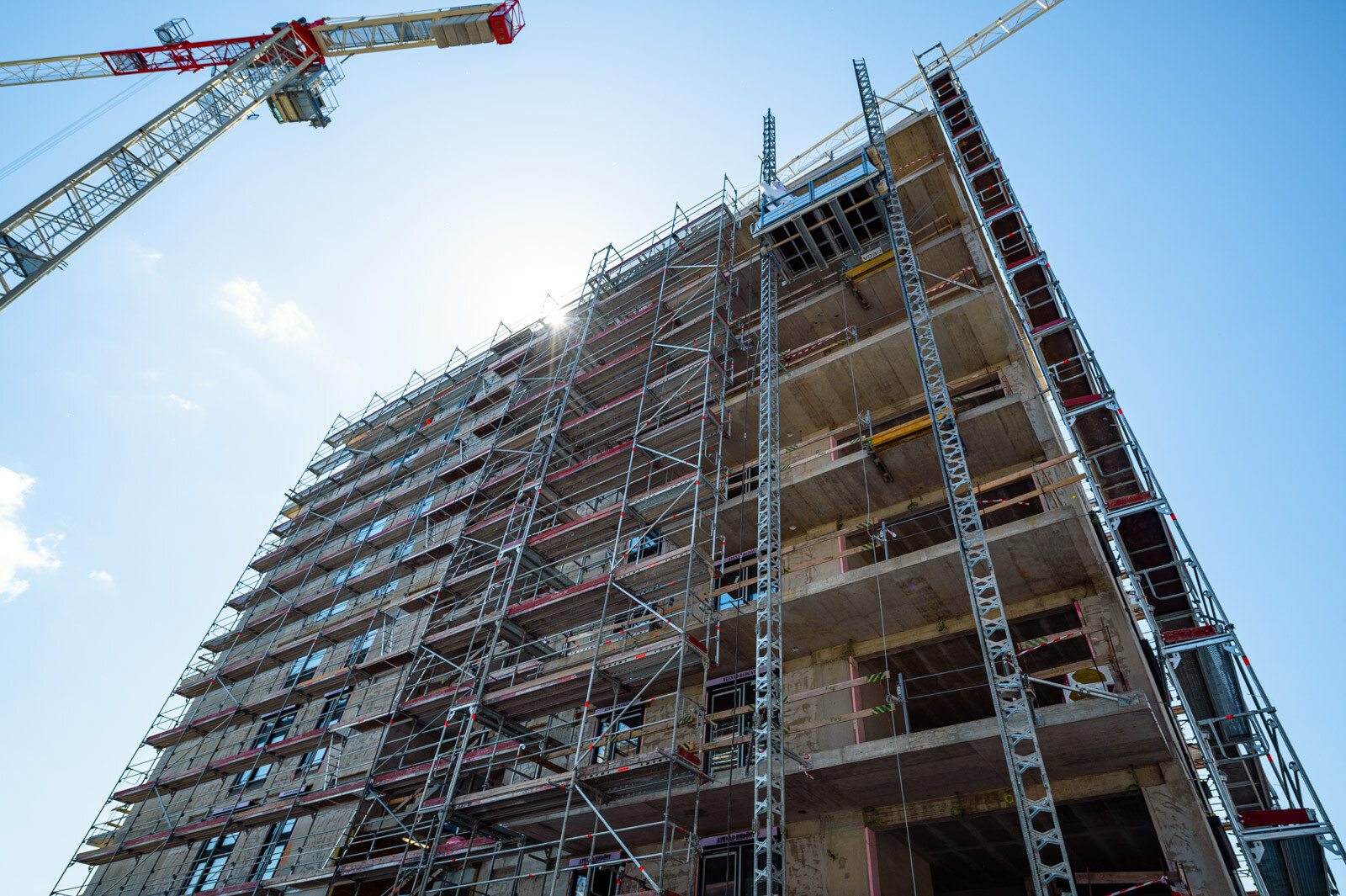 A III. kerületi lakópark építése során a homlokzati munkák támogatására - szigetelés, festés, valamint az erkélyek kiépítéséhez - alkalmazták a Layher állványzatot.
