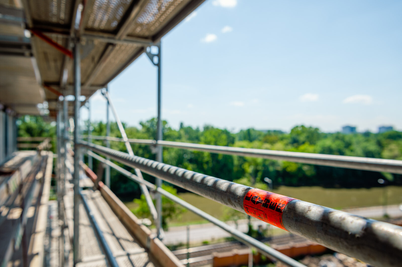A 3. ütemben a B és a C épületek állványozási munkáit az Induserv Állványművek Kft. és a Dunamenti Állványtechnika Kft. végezte Layher Blitz homlokzati állványrendszer alkalmazásával.