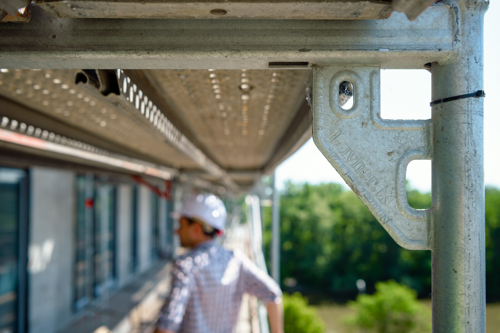 Minden erkély esetén más kinyúlással, homlokzati pozícióval, alaprajzi elhelyezkedéssel és mérettel kellett számolni és ezt lekövetni az állványzattal, hogy a lehető legjobban hozzáférést biztosítsa a szakemberek számára.