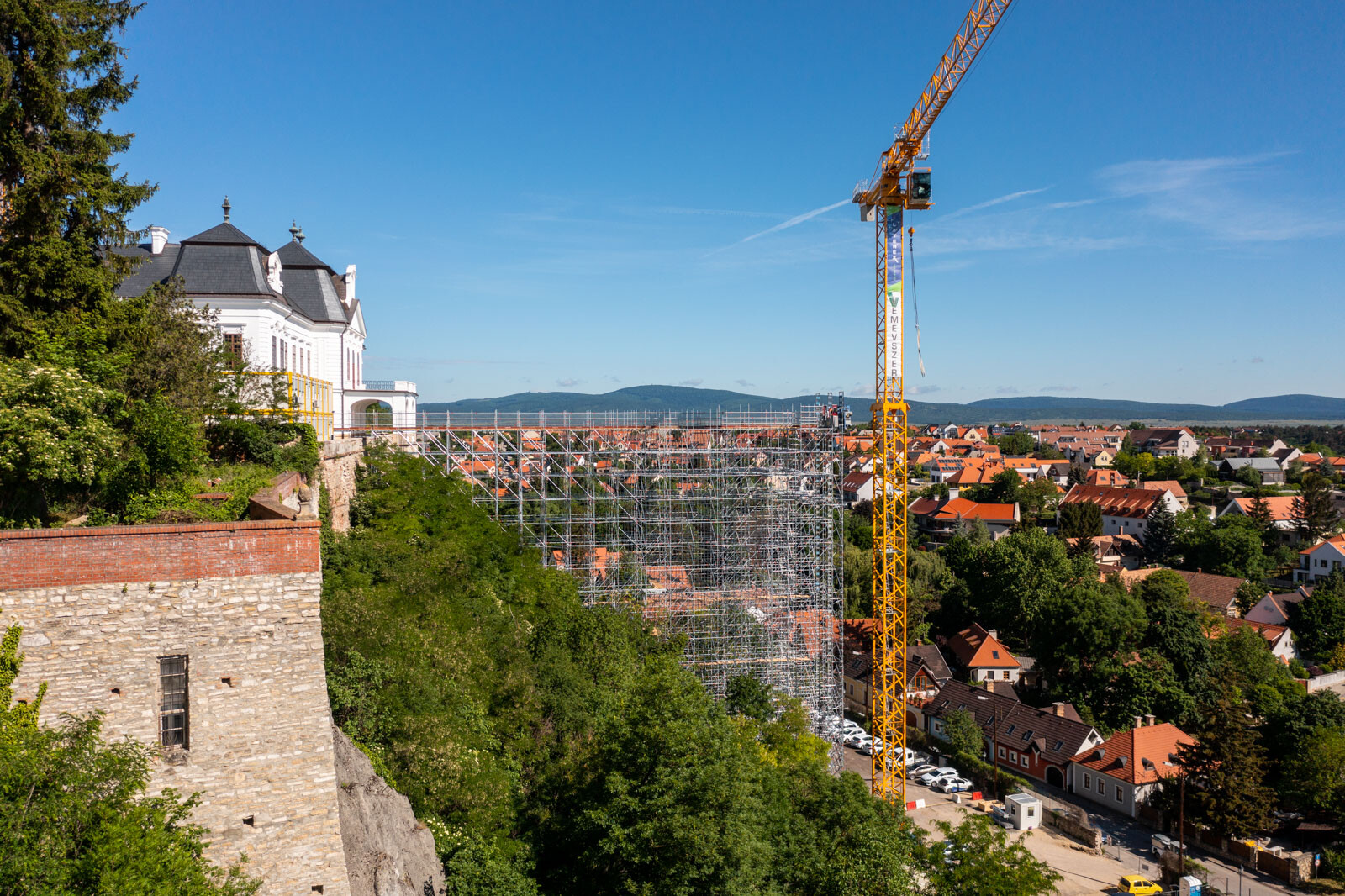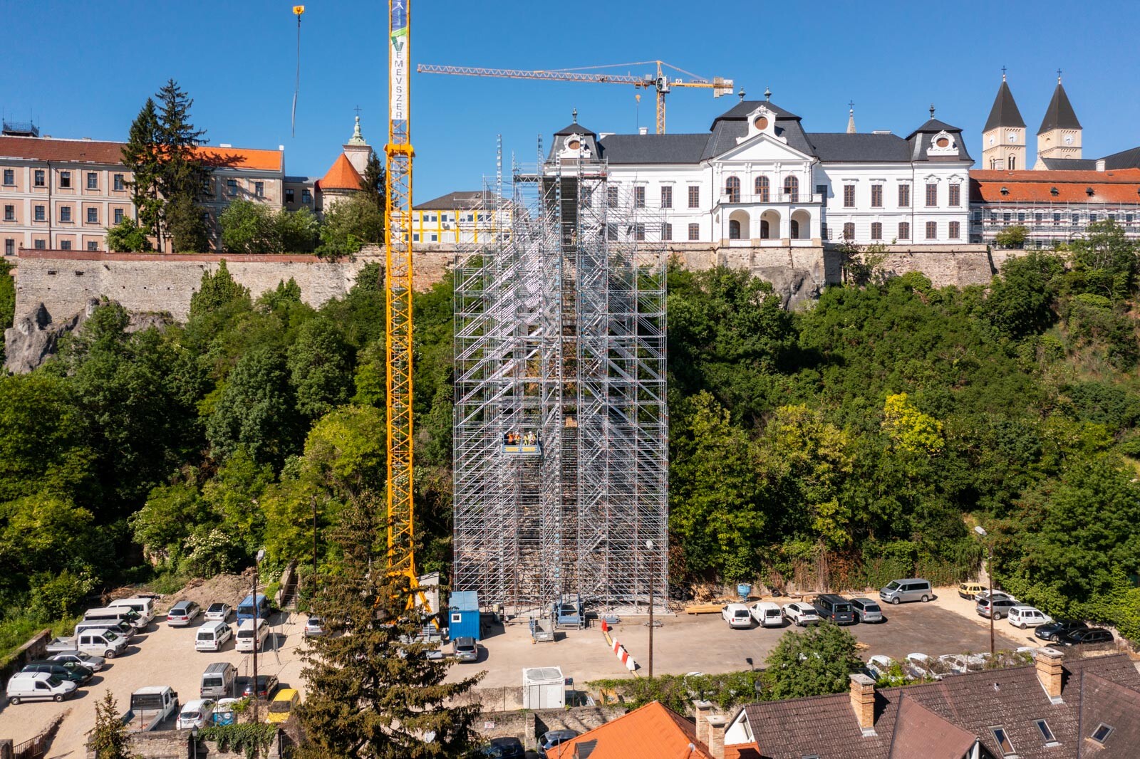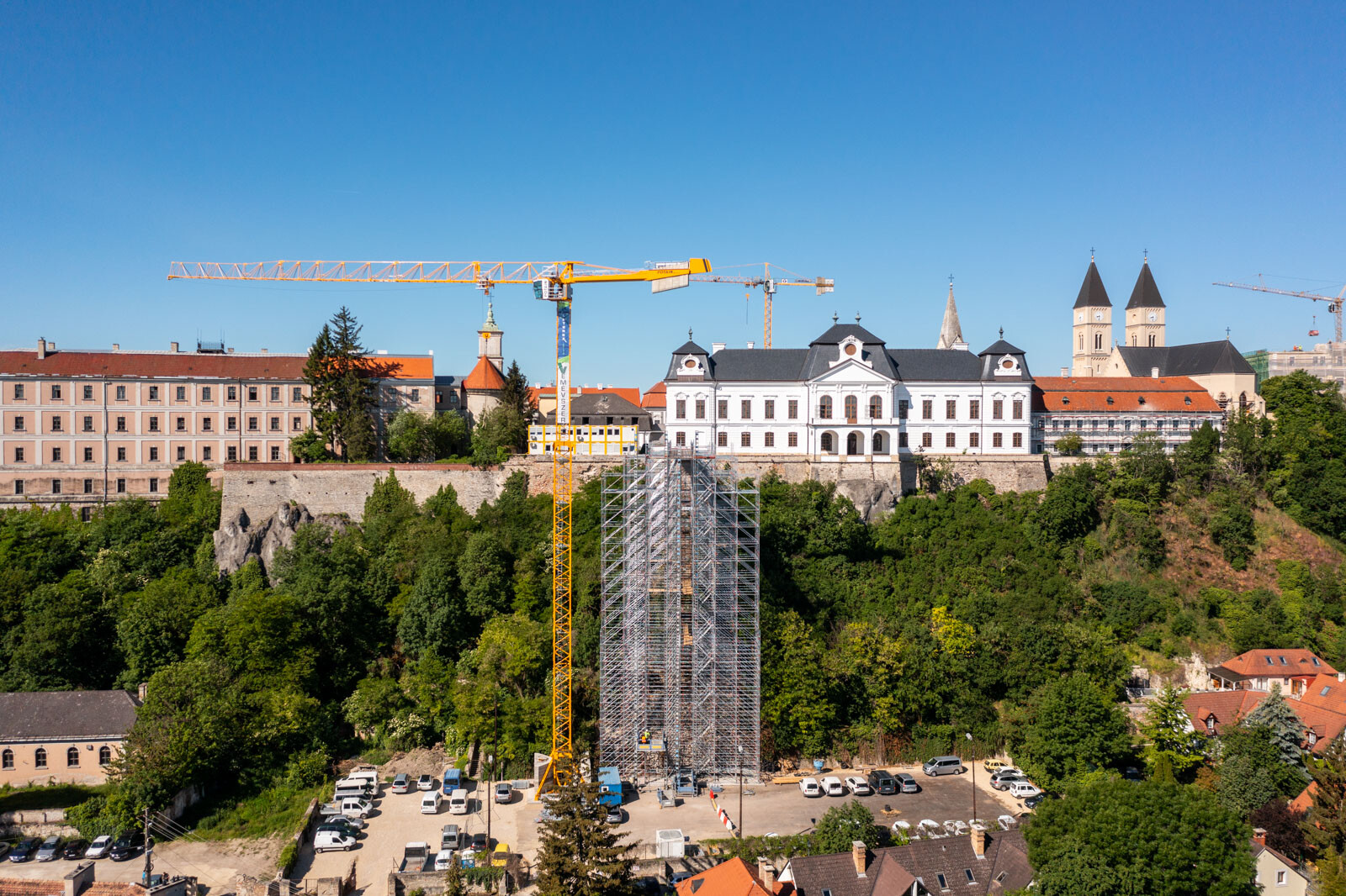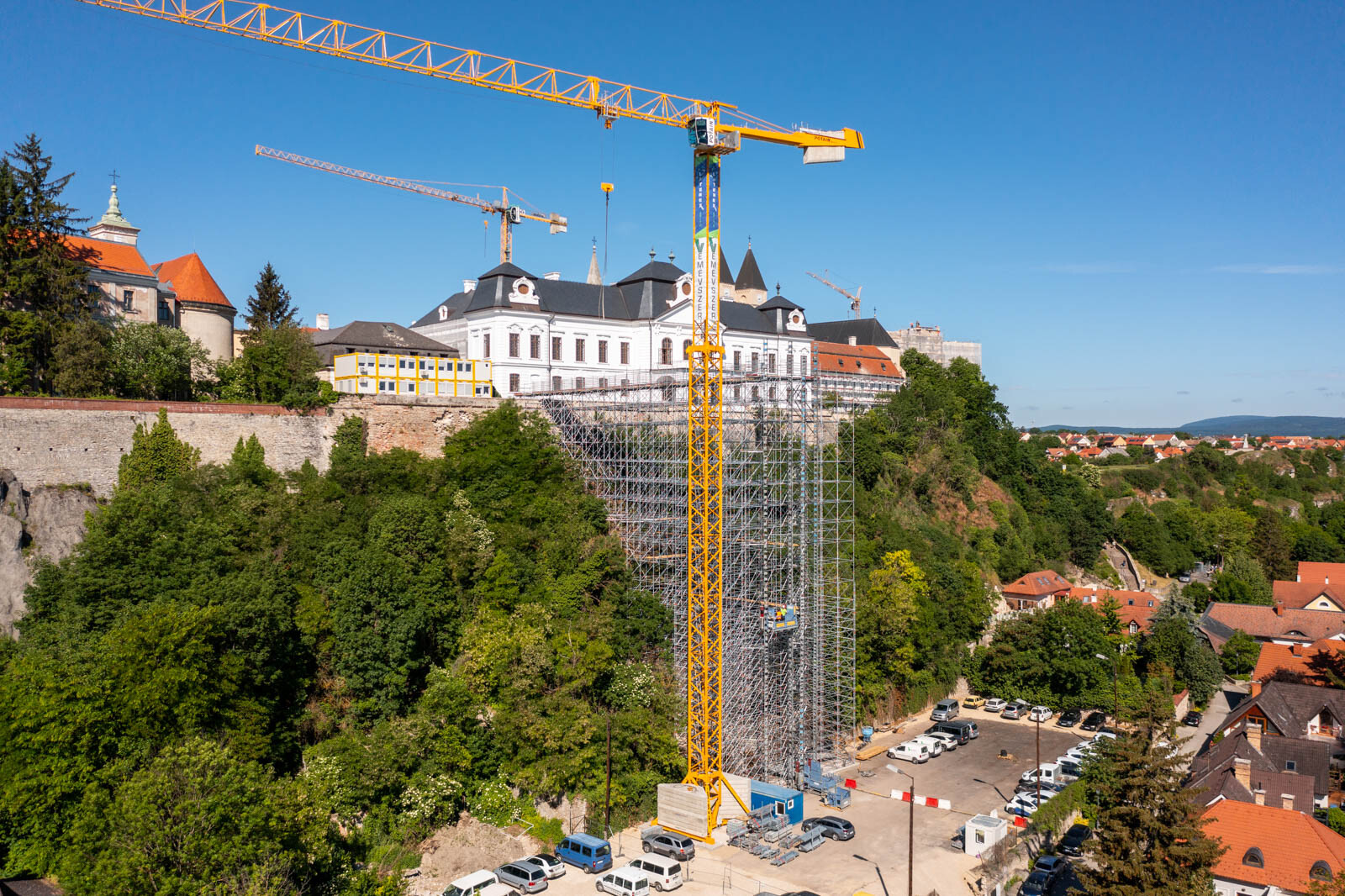 A várbeli épületek rekonstrukciós munkálatai a közelmúltban kezdődtek meg. A kivitelezési munkákat, főképp az építőanyag szállítását nagyban segíti a felvezetőben is említett, tízemeletes épületnél is magasabb, országosan is különleges és egyedülálló állványzat, mely a Laterex Építő Zrt. és a Vemév-Szer Kft. megbízásából készült el a Gép-Flotta Kft. és a Bakony-ács Kft. közös munkájaként.