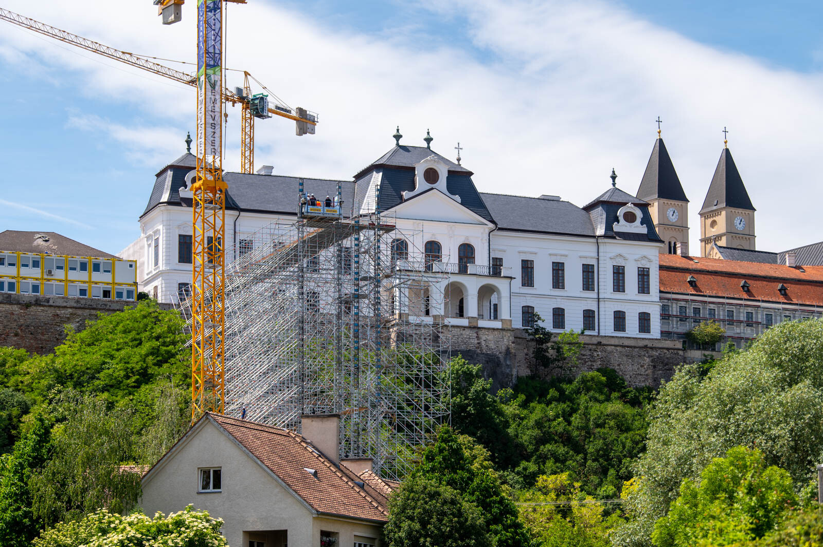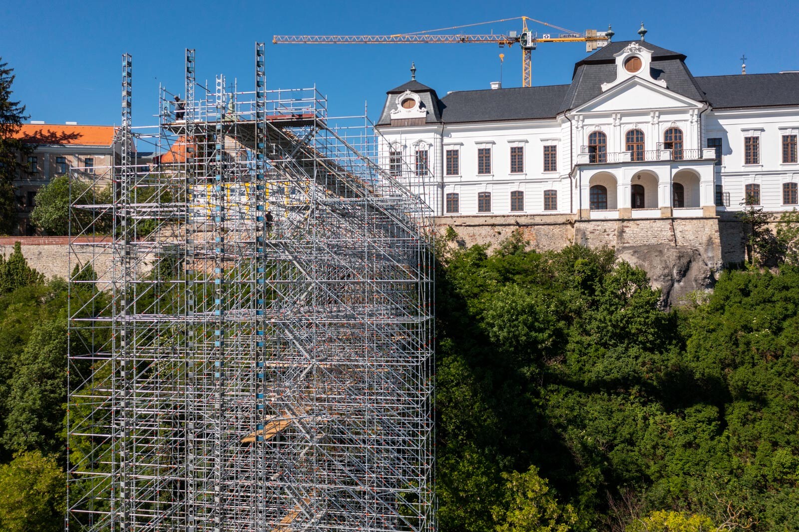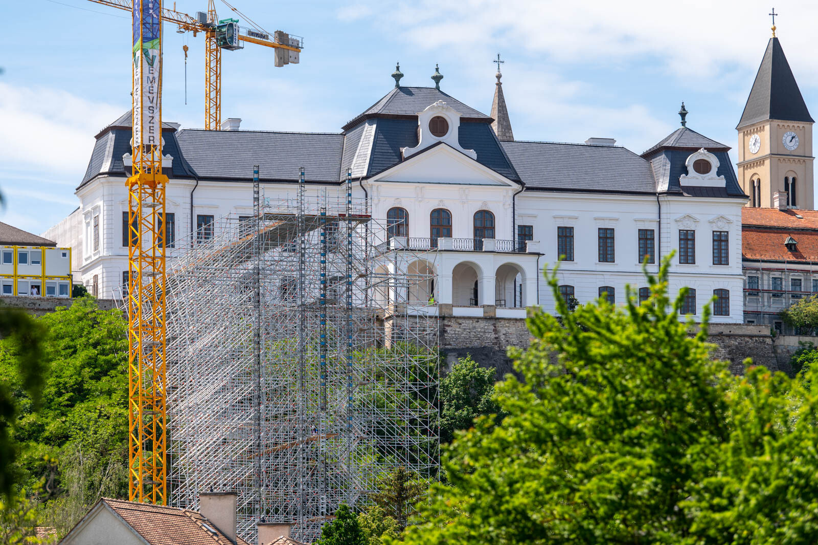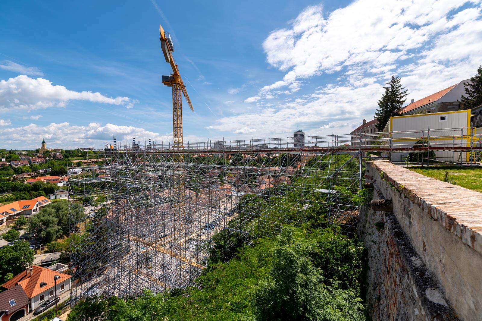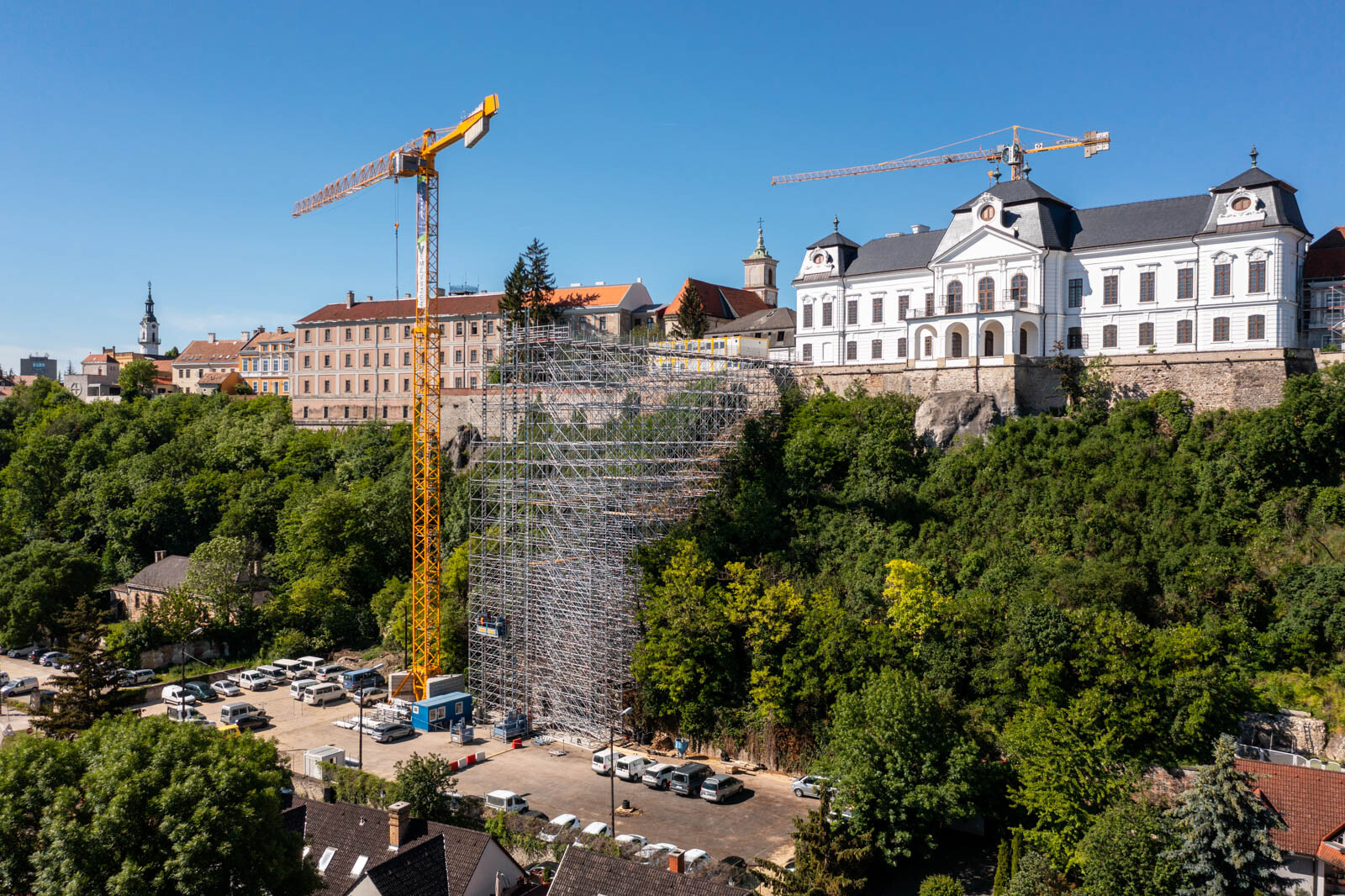 A várbeli épületek rekonstrukciós munkálatai a közelmúltban kezdődtek meg. A kivitelezési munkákat, főképp az építőanyag szállítását nagyban segíti a felvezetőben is említett, tízemeletes épületnél is magasabb, országosan is különleges és egyedülálló állványzat, mely a Laterex Építő Zrt. és a Vemév-Szer Kft. megbízásából készült el a Gép-Flotta Kft. és a Bakony-ács Kft. közös munkájaként.