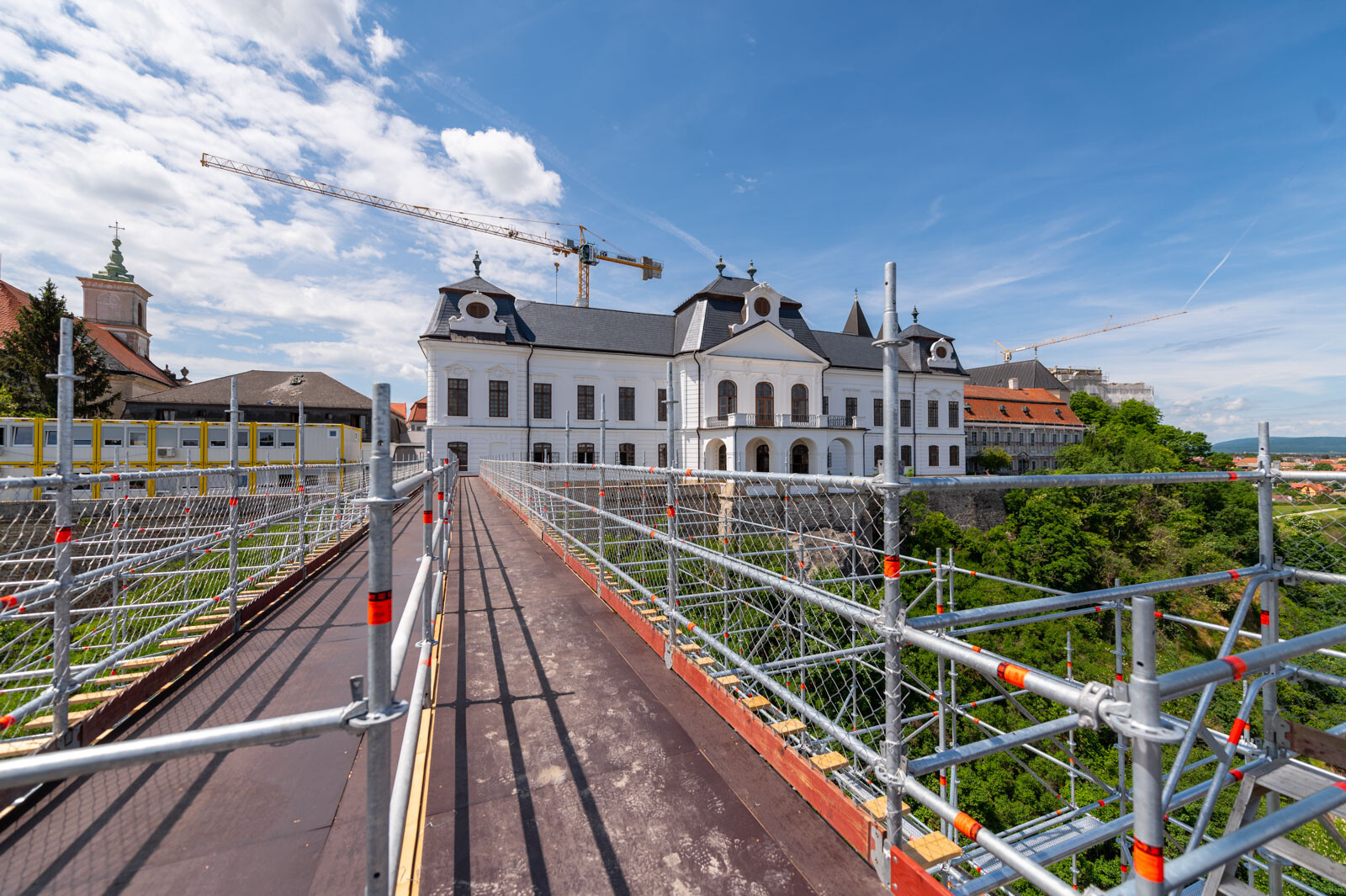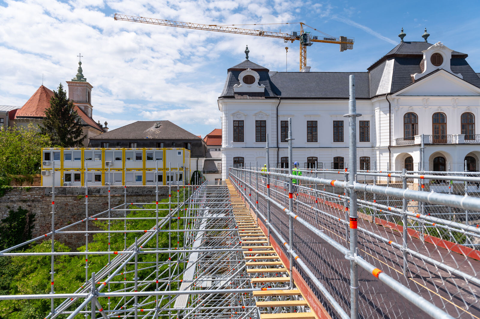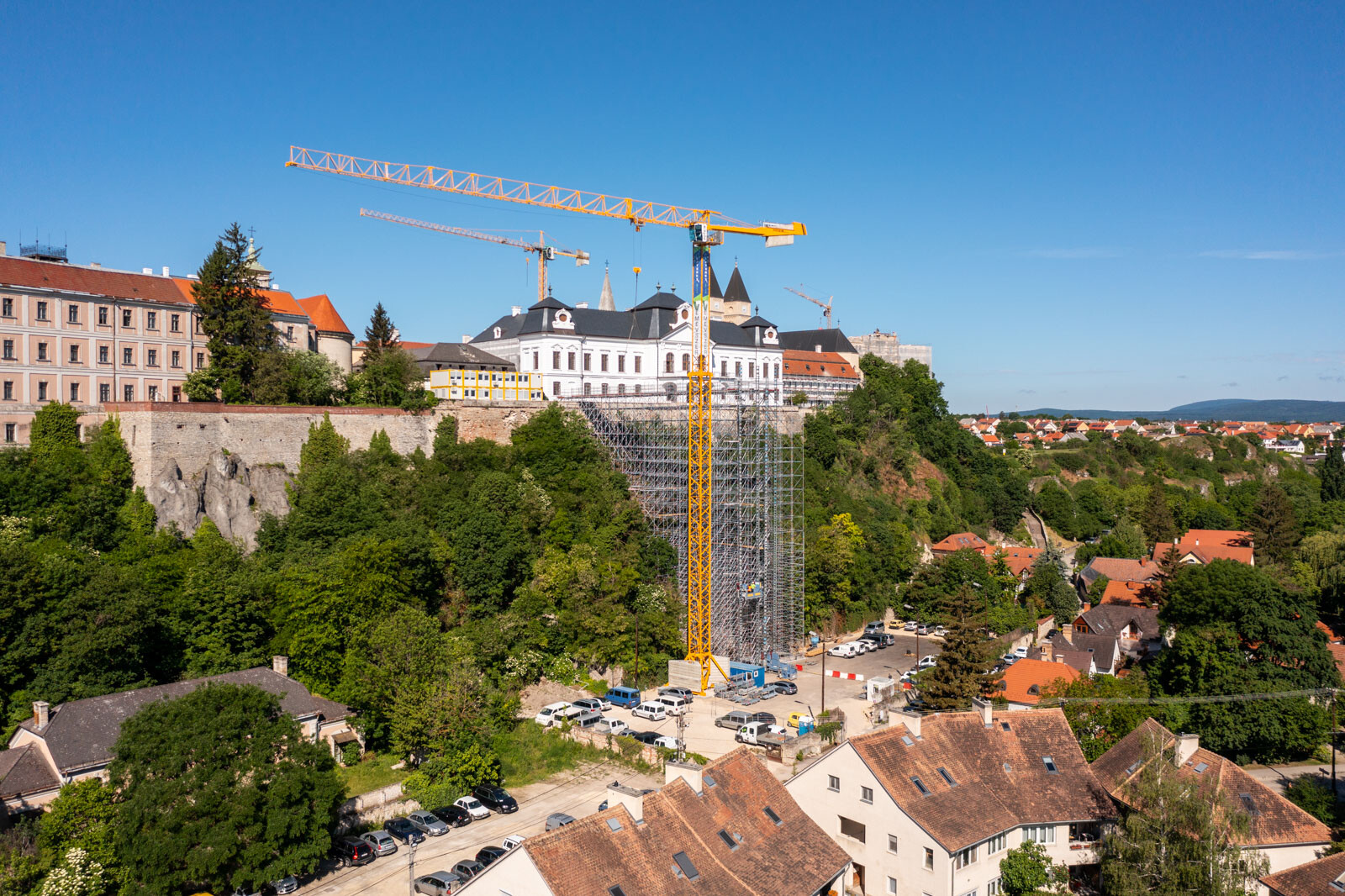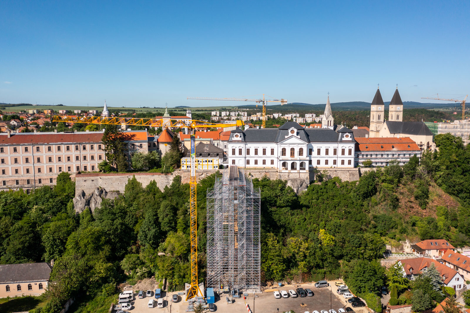 A várbeli épületek rekonstrukciós munkálatai a közelmúltban kezdődtek meg. A kivitelezési munkákat, főképp az építőanyag szállítását nagyban segíti a felvezetőben is említett, tízemeletes épületnél is magasabb, országosan is különleges és egyedülálló állványzat, mely a Laterex Építő Zrt. és a Vemév-Szer Kft. megbízásából készült el a Gép-Flotta Kft. és a Bakony-ács Kft. közös munkájaként.
