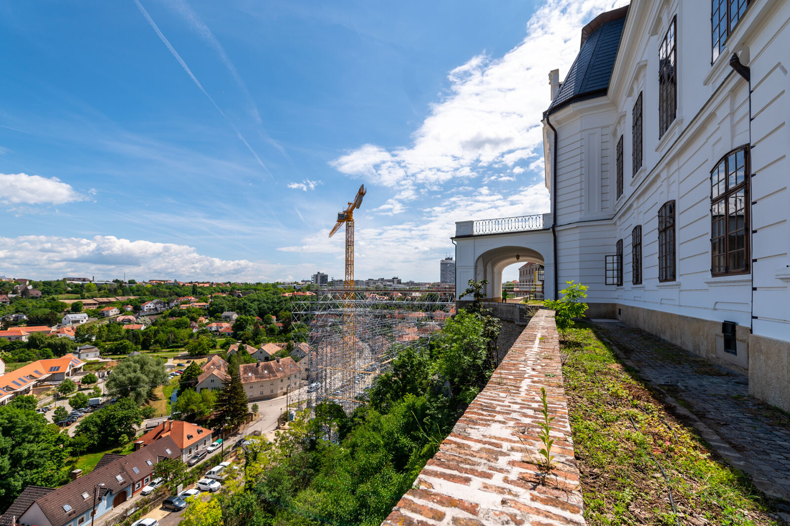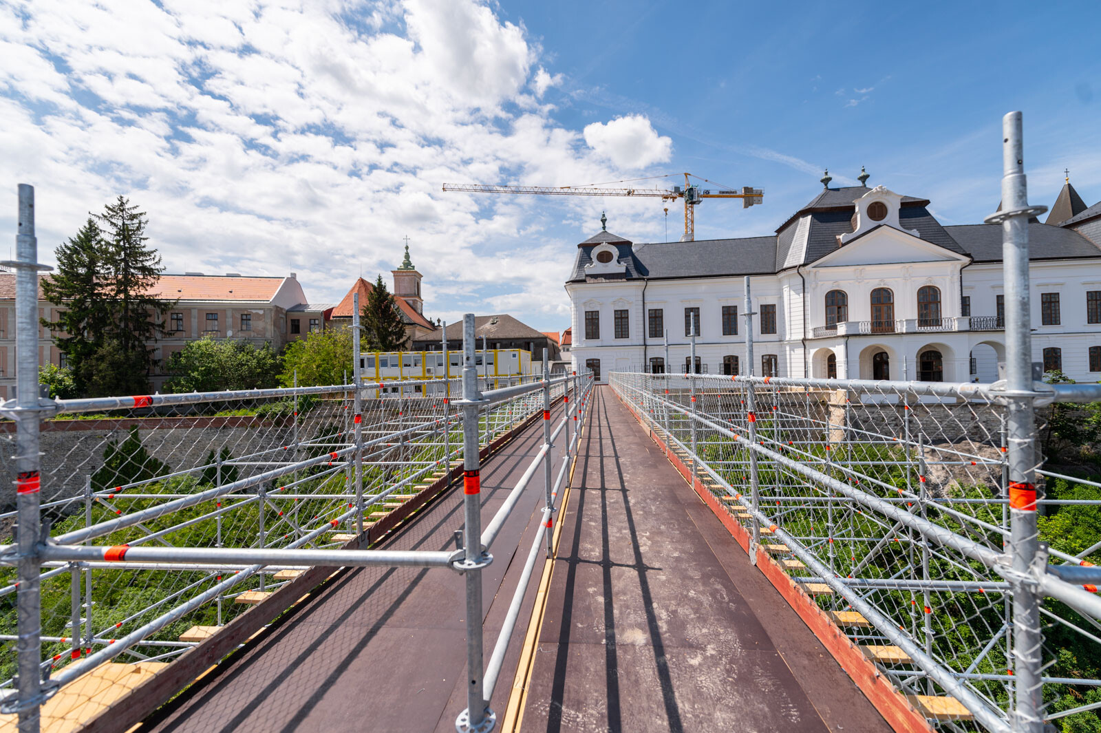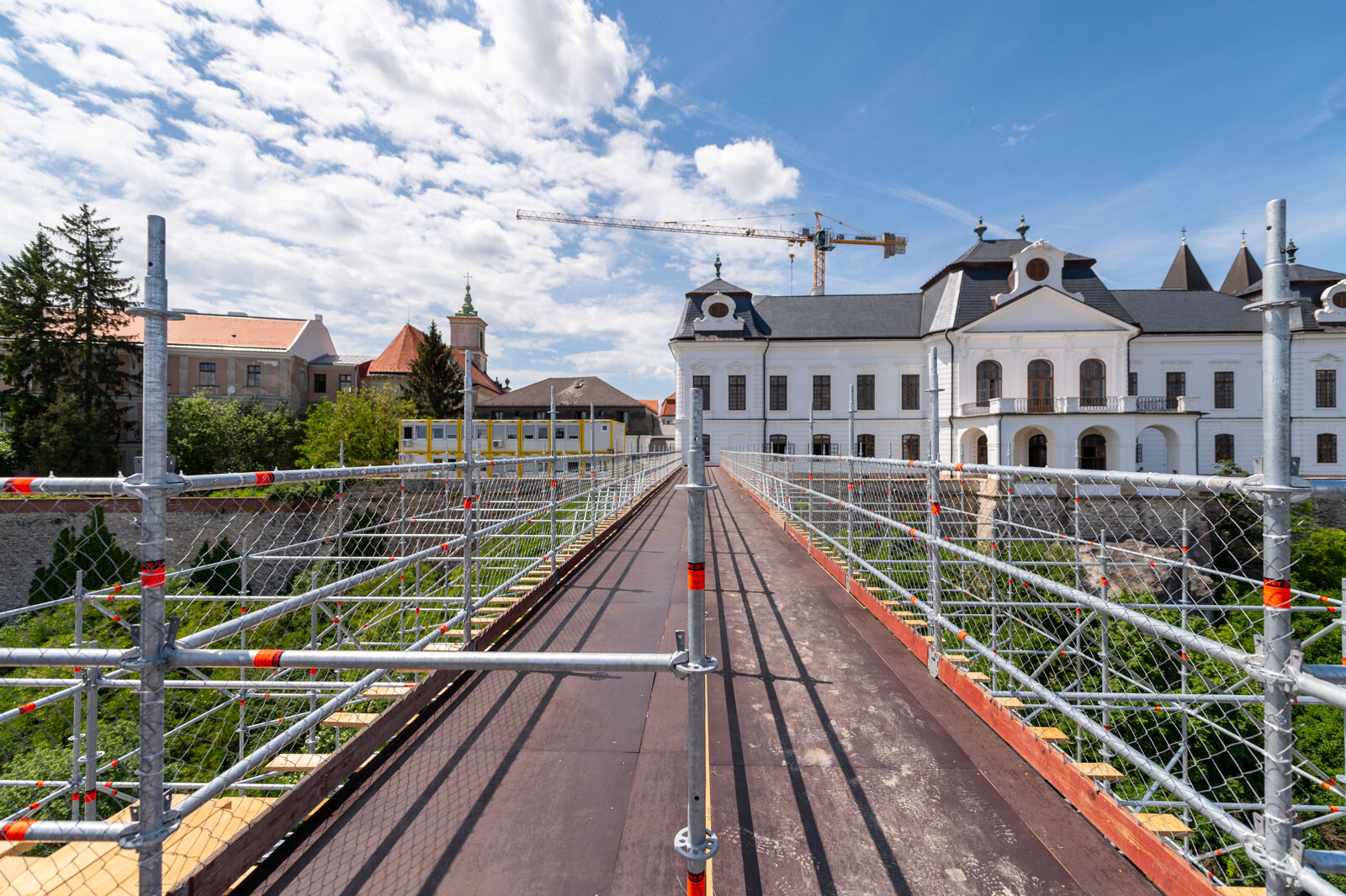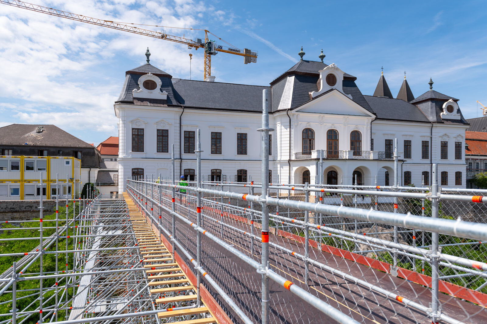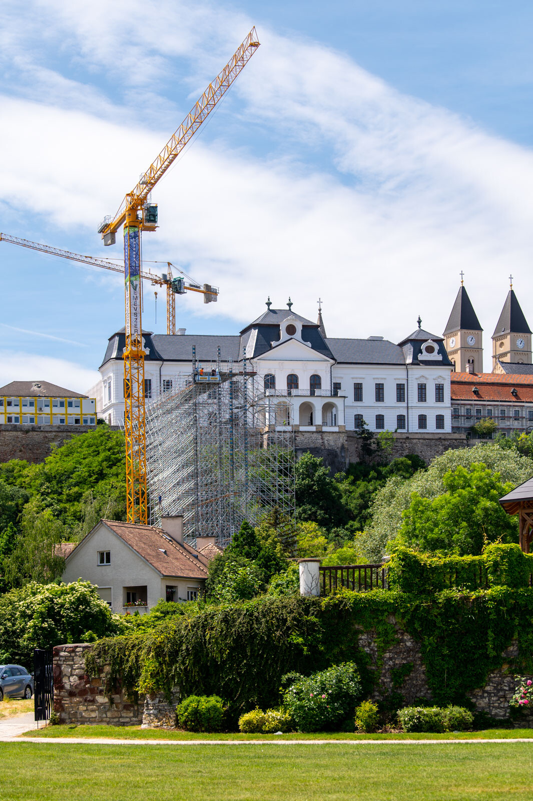 A várbeli épületek rekonstrukciós munkálatai a közelmúltban kezdődtek meg. A kivitelezési munkákat, főképp az építőanyag szállítását nagyban segíti a felvezetőben is említett, tízemeletes épületnél is magasabb, országosan is különleges és egyedülálló állványzat, mely a Laterex Építő Zrt. és a Vemév-Szer Kft. megbízásából készült el a Gép-Flotta Kft. és a Bakony-ács Kft. közös munkájaként.