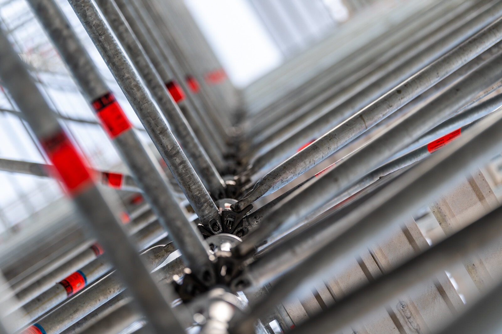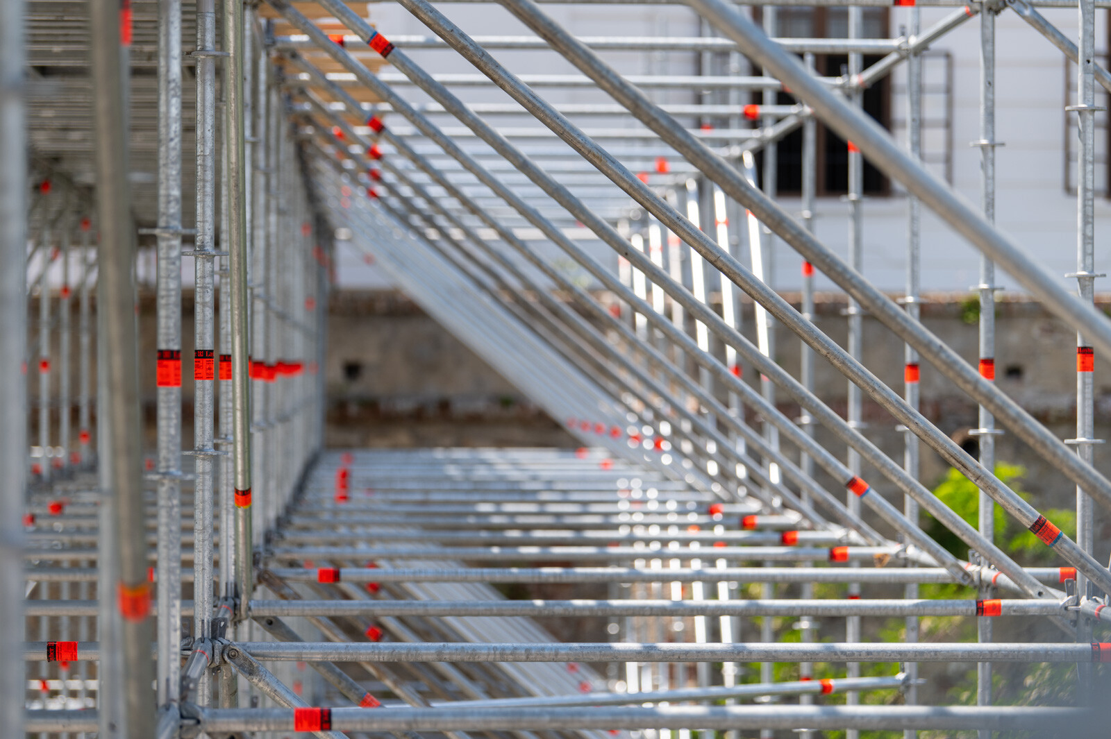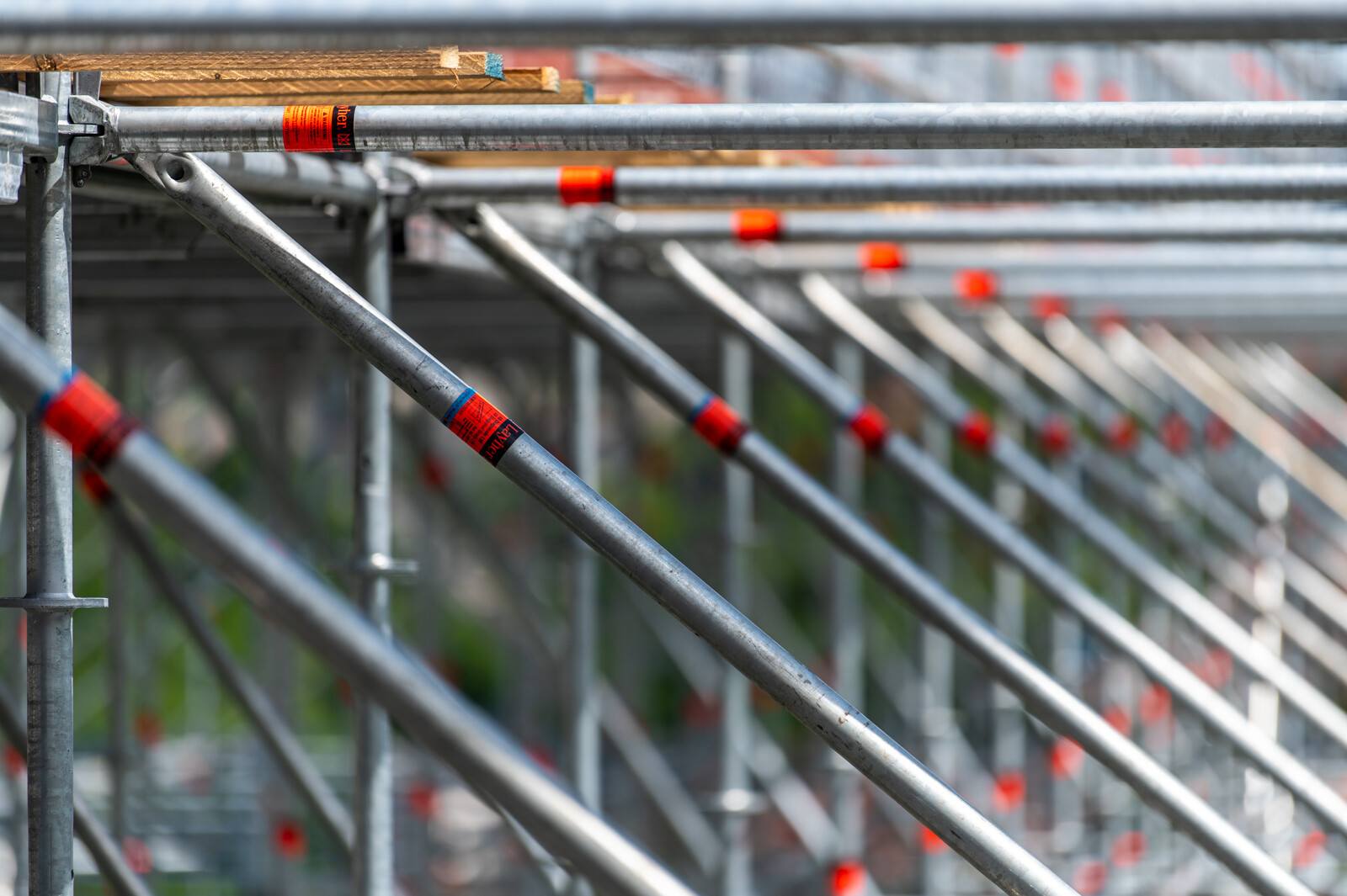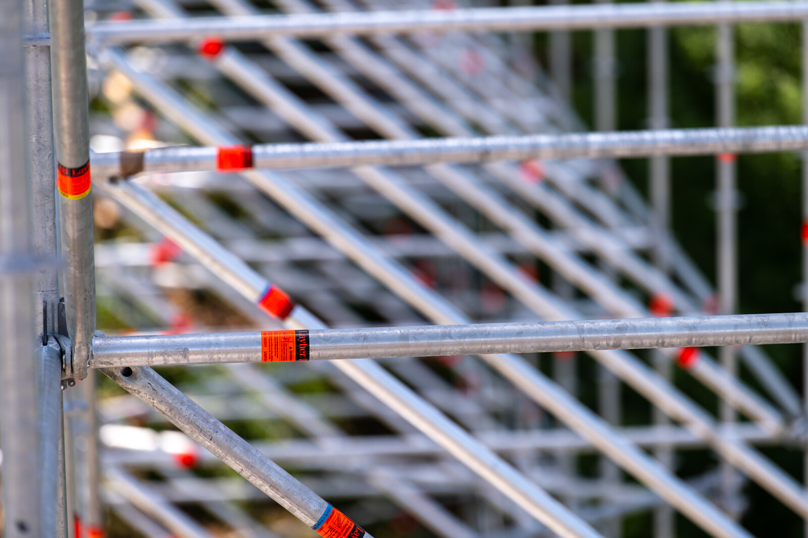 A két közlekedési folyosó borítása is gondos munka eredménye. Layher Lightweight, vagyis könnyített súlyú acél járólapokat alkalmaztak. Ezek standard állványozási munkákhoz kiválóan alkalmasak, vékonyabb falvastagságúak a standard acél járólapnál és kisebb súllyal rendelkeznek, ennek ellenére nagyobb teherbírásúak.