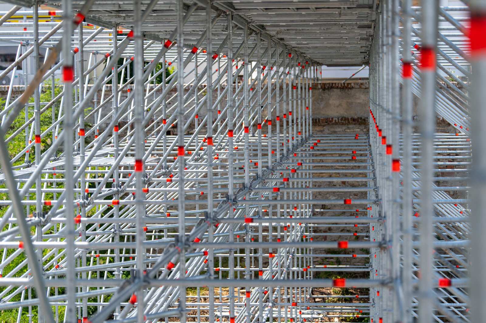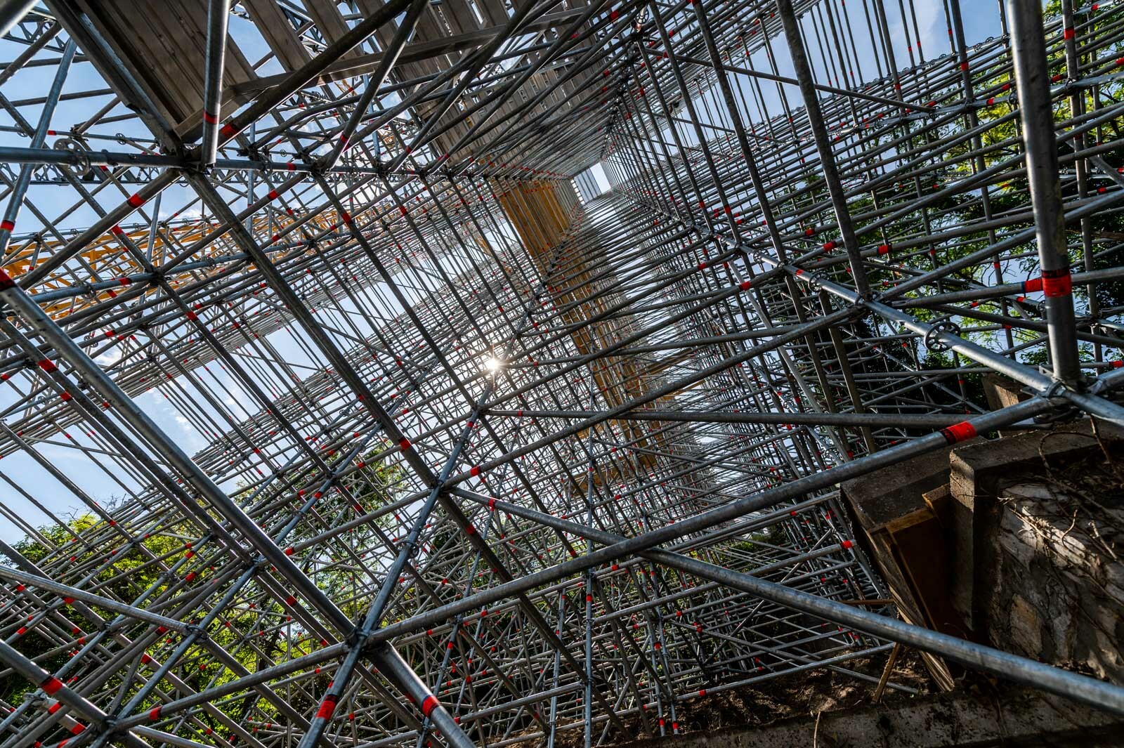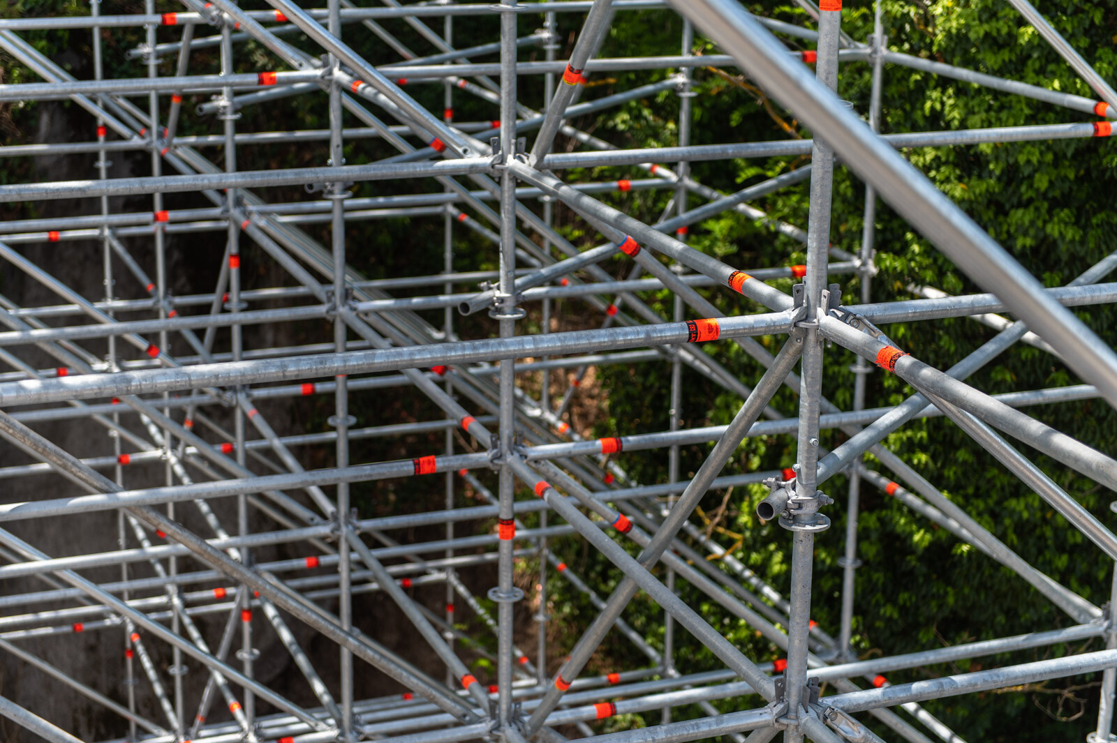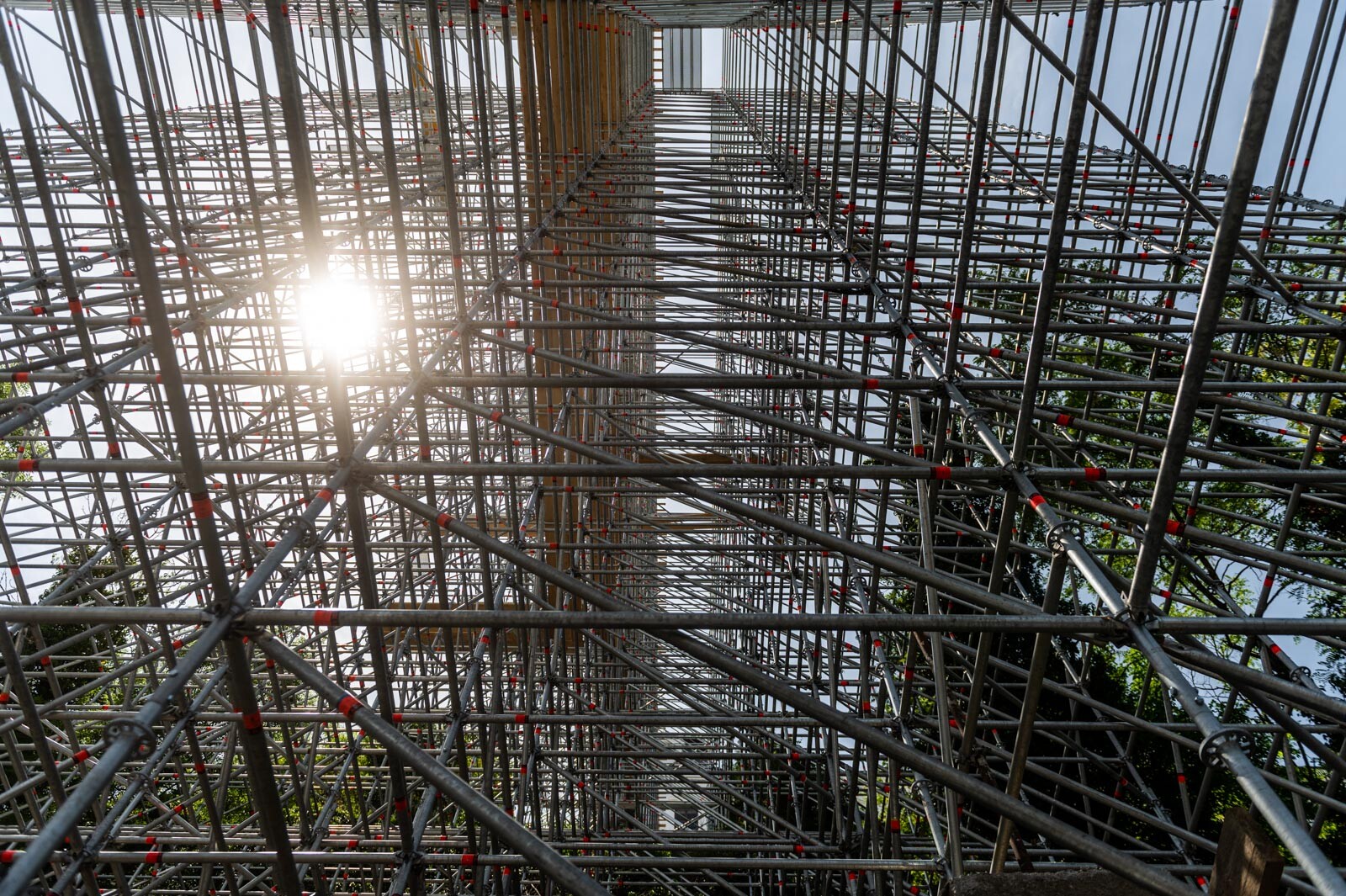 A 80 tonna állványanyagból megvalósult szerkezet 42 méter magas és 12.000 köbméter állványzatot foglal magában.