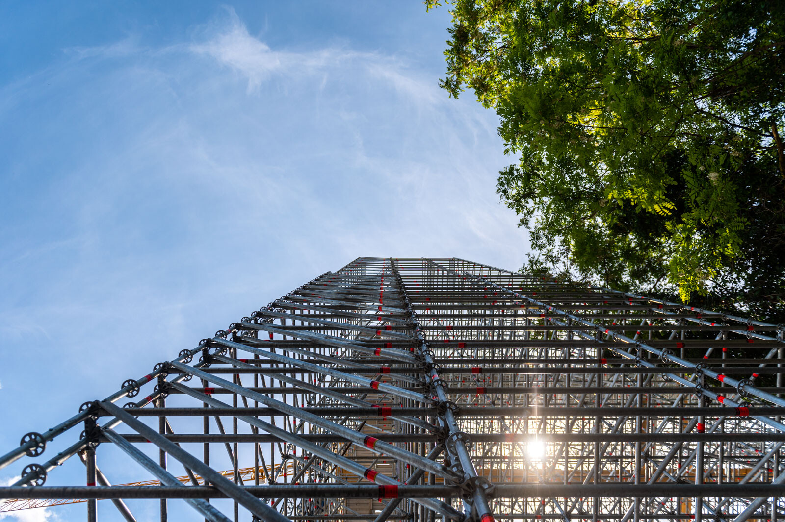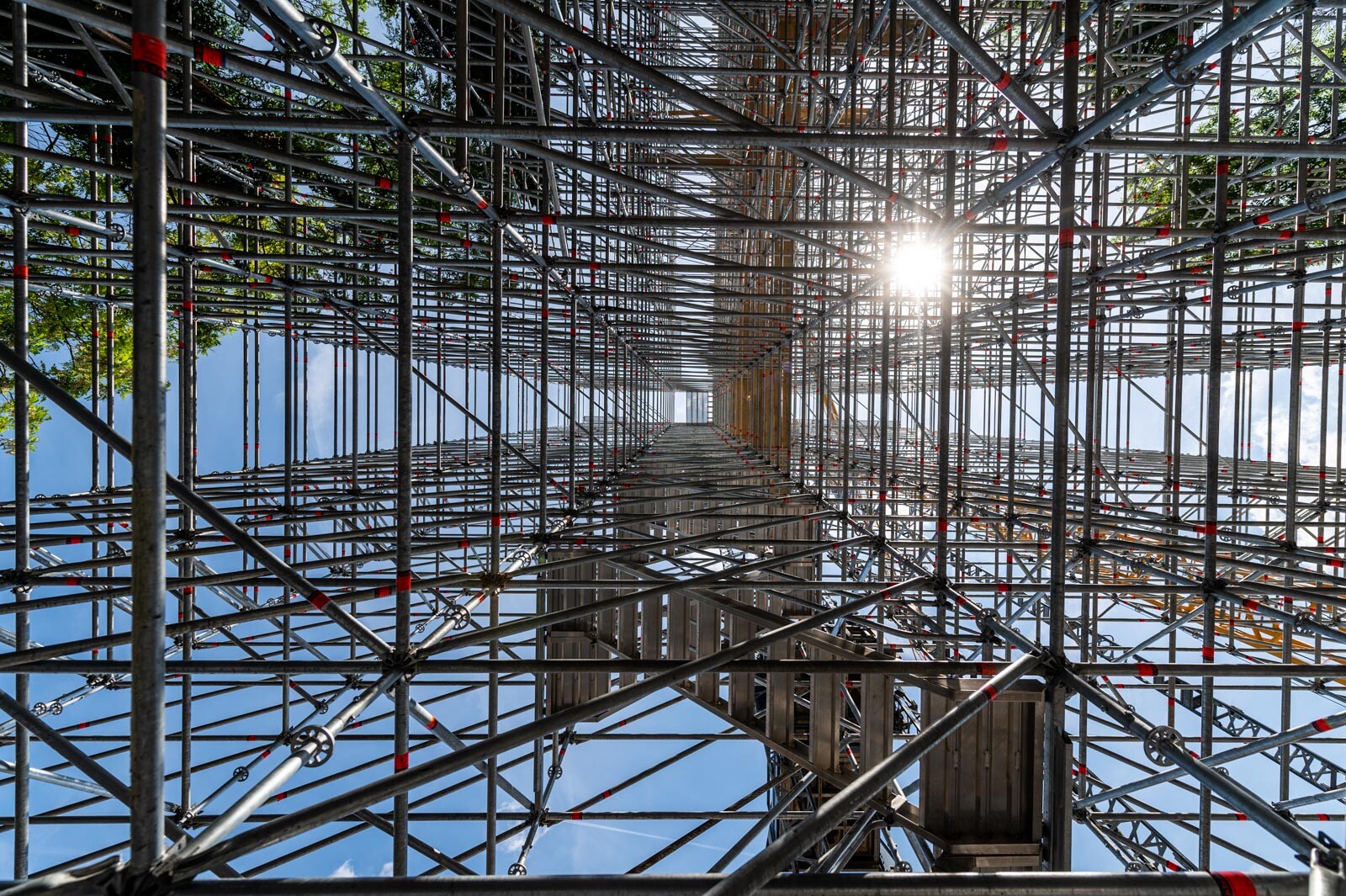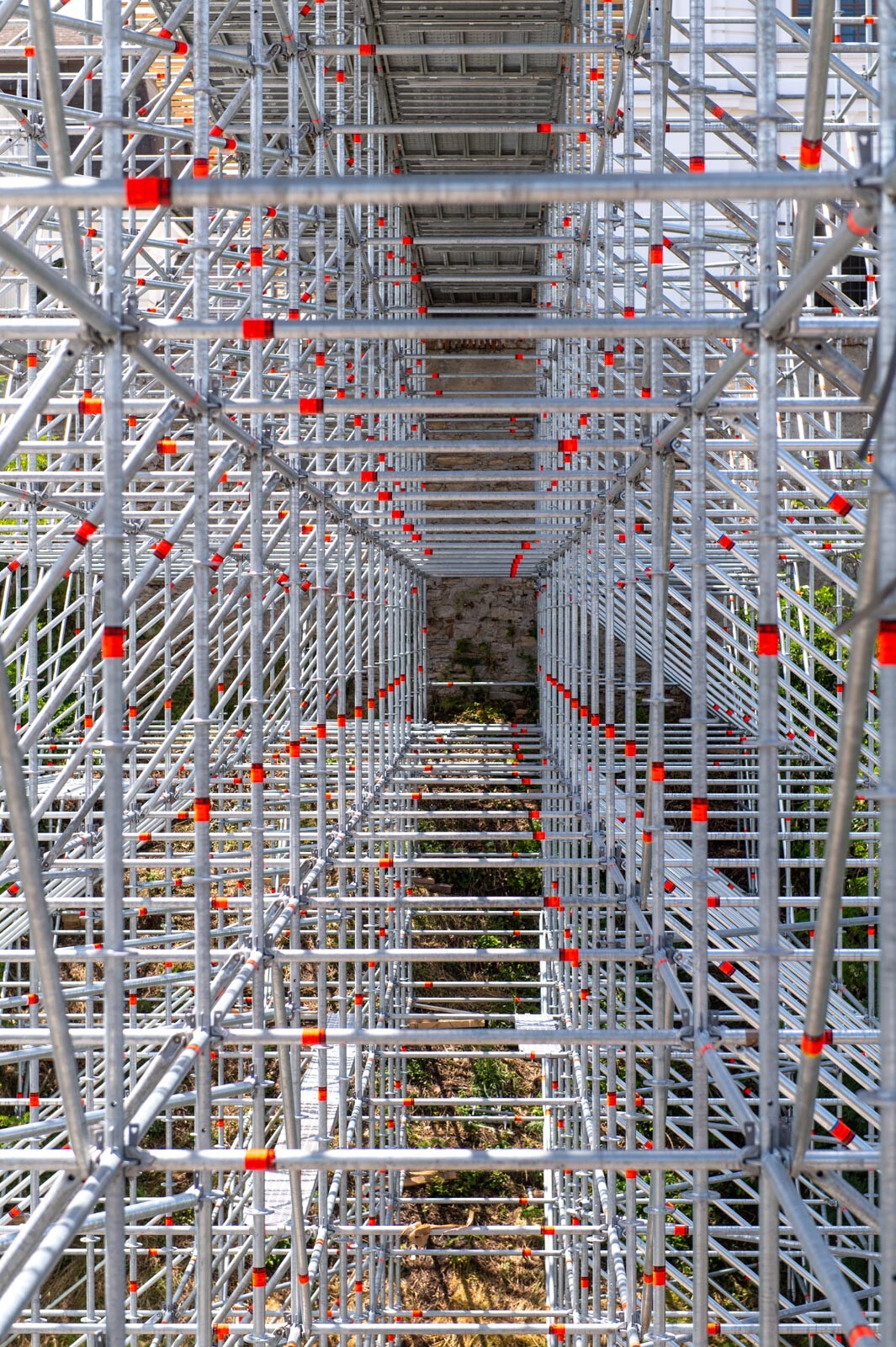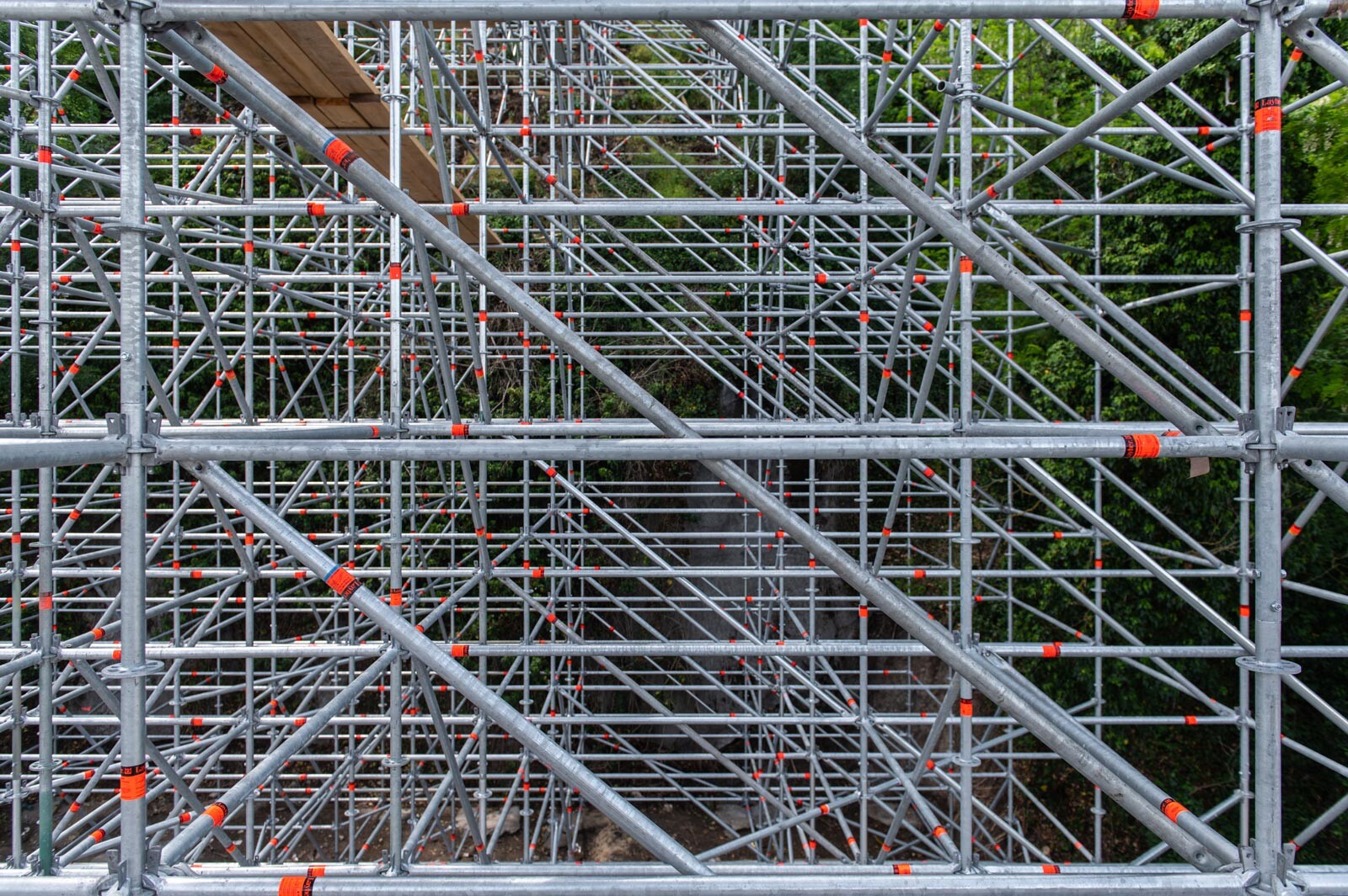 A 80 tonna állványanyagból megvalósult szerkezet 42 méter magas és 12.000 köbméter állványzatot foglal magában.