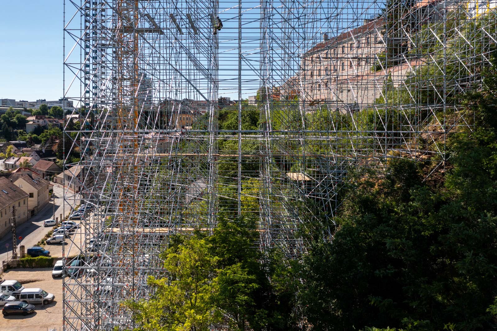 „A 3D állványterv és a pontos kiviteli tervek elkészítésekor kihívást okoztak a változatos terepviszonyok, ugyanis nem volt egyenletes az emelkedés mértéke, több szakaszon átlagon felüli meredek lejtéssel kellett számolni” – emelte ki Tóth Patrik, a Layher Kft. műszaki vezetője.