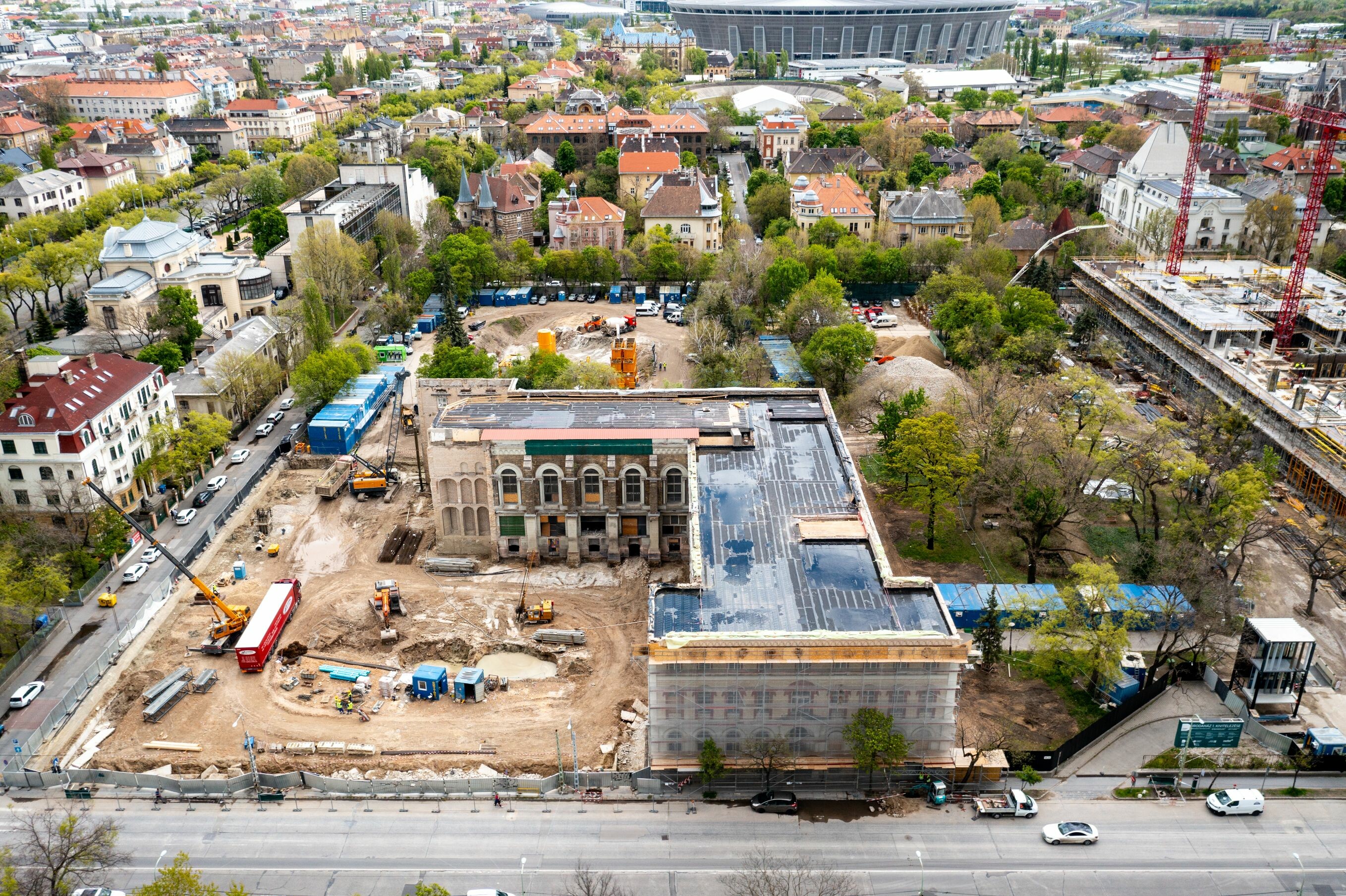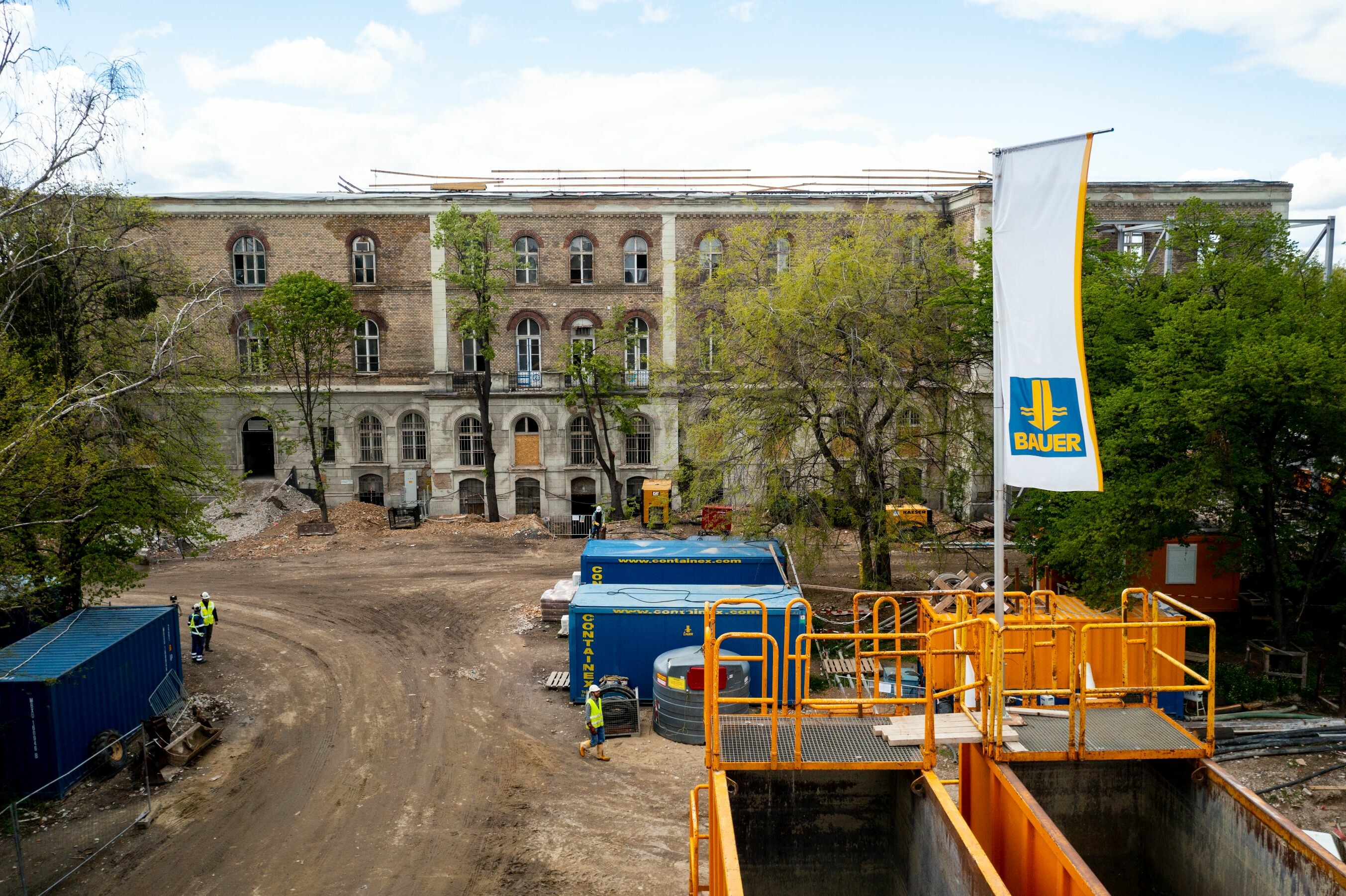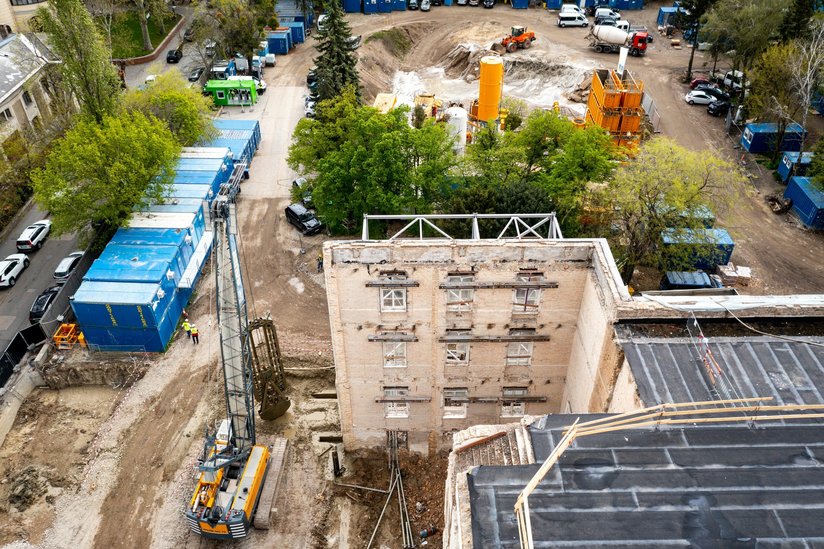 A BAUER Magyarország Kft. munkájával már zajlik a Dürer Park második irodaházának mélyépítése is, amely során többek között speciális technológia alkalmazásával óvják meg az egykori Sacré Cœur-rend történelmi épületének megmaradt homlokzatát.
