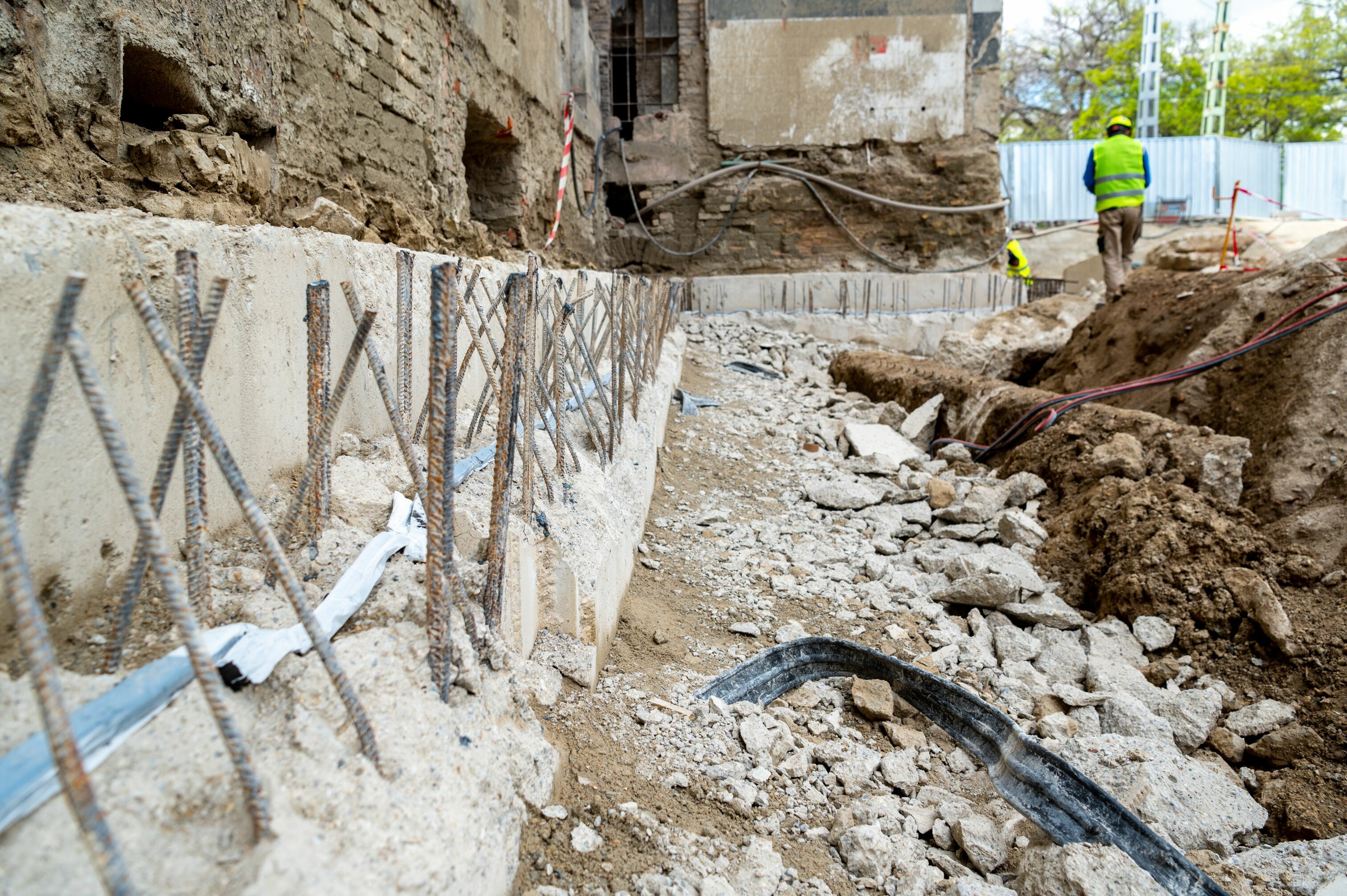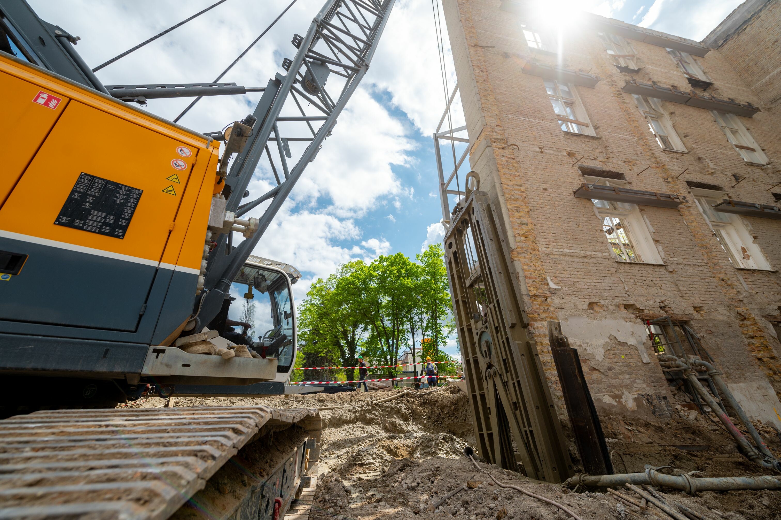 az épület belső részében pedig megerősítették a megmaradt falszerkezeteket, amelyet a projekt későbbi szakaszában fel is újítanak.