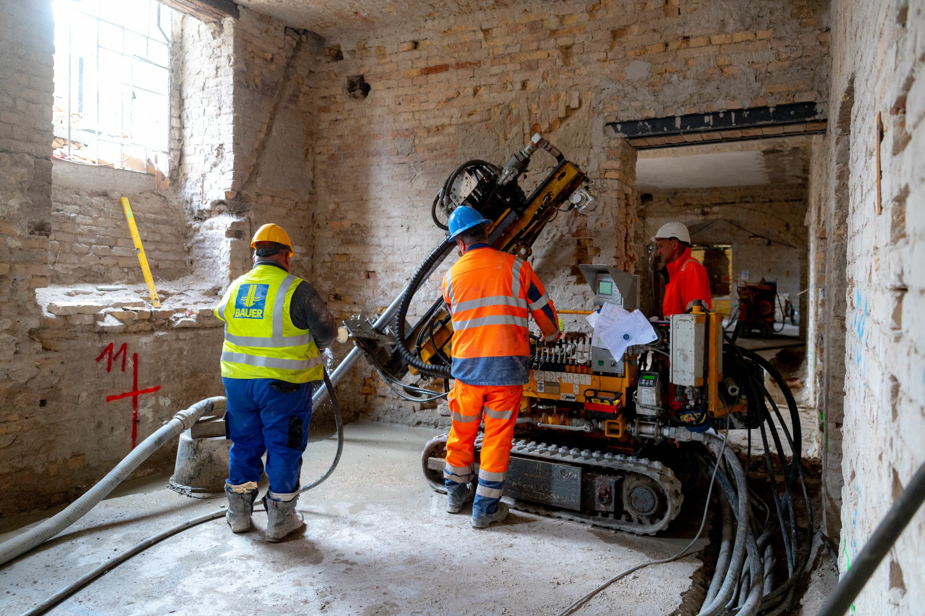 Az épületen belül mindemellett funkcióváltás is történik: mivel megváltoznak terhelések, a pincerészen ugyancsak Jet-es alapsík süllyesztést kellett elvégezni, ehhez pedig közel 2000 folyóméter hosszúságban, több mint 400 jetoszlopot alakítottak ki a biztonság érdekében.