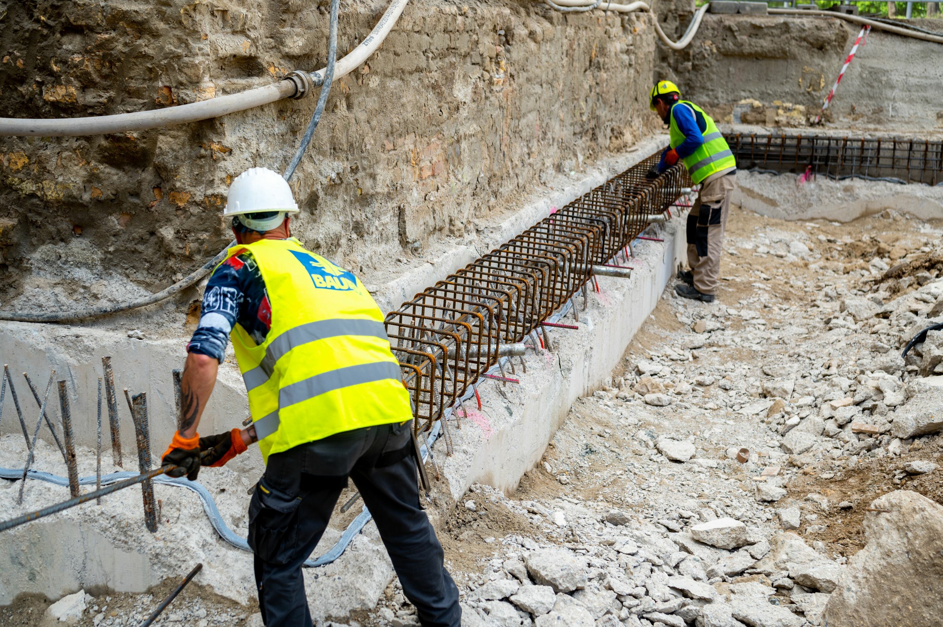 A szakemberek ezt követően elhelyezték a résvezetőket, majd megkezdték a közel 3000 négyzetméternyi résfal felület kiépítését. A talaj megtámasztása érdekében 2 sor horgonyt alakítottak ki, amely során közel 170 db teherviselő elemet helyeztek el, valamint szintén réseléssel telepítettek víztelenítő kutakat, ezáltal kiszivattyúzták a munkatérbe bezárt vizet.