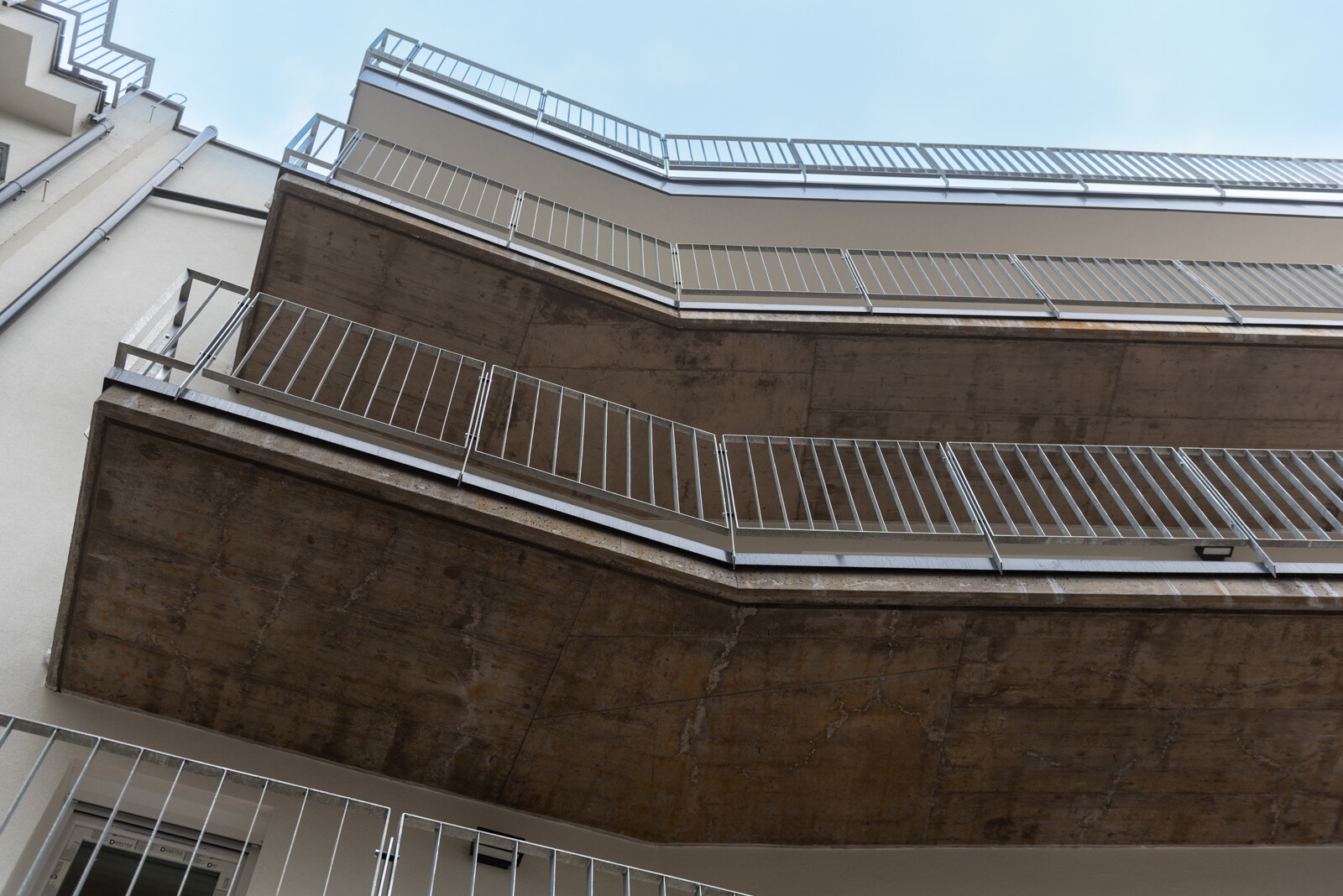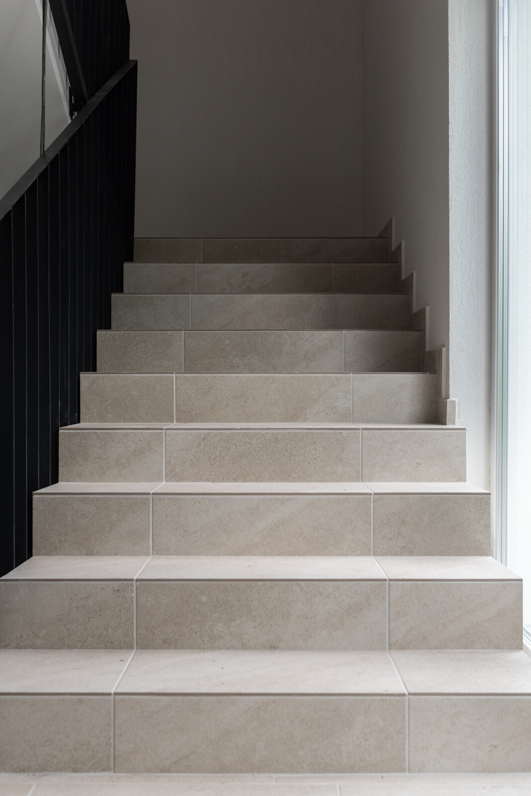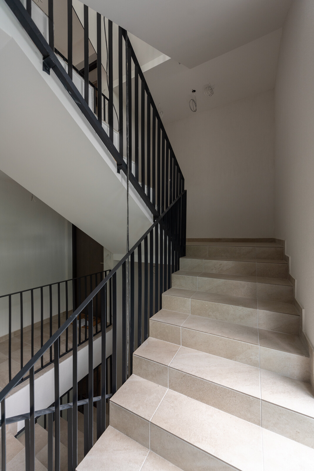 „Straubinger Antal a lépcsőházban valami különleges, szokásostól eltérő felületi megoldást szeretett volna” – árulta el a Cemix szakembere. „Így került kiválasztásra az Edelputz Extra 1, ami a szokásos sima, glettelt felület helyett egy enyhén strukturált nagyon szép felületet adott.”