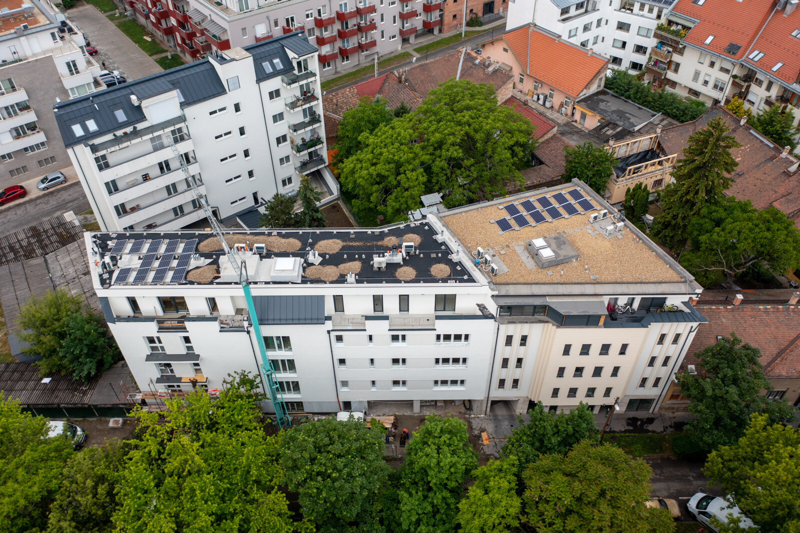A 2021 januárjában indult fejlesztés idén májusra készült el. A projektben az energetikai szempontok is hangsúlyt kaptak: a 30 centiméteres Ytongból készült épület 20 centiméteres hőszigetelést kapott, míg a lapostető 35 centiméteres hőszigeteléssel készült. A közösségi áramellátást napelem rendszer biztosítja.