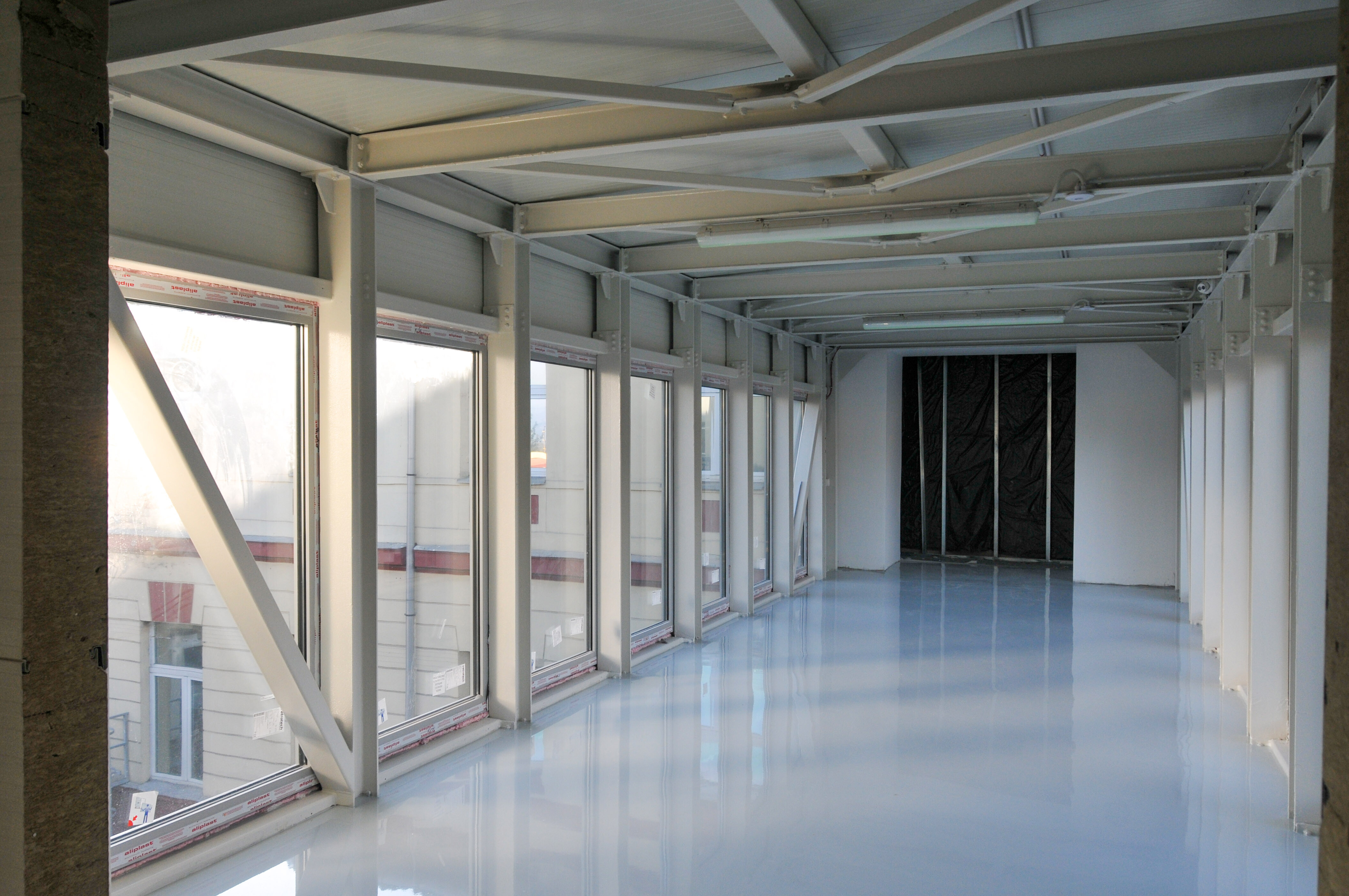 Az építkezés során számos kihívással szembesült a Weinberg, hiszen egy működő üzem területén, minden oldalról körülzárt, szűk helyszínen kellett megvalósítani az új épületrészt. A monolit vasbeton szerkezetű üzemcsarnok háromszintes kialakítása lehetővé teszi a rendelkezésre álló szűkös terület optimális kihasználását.
