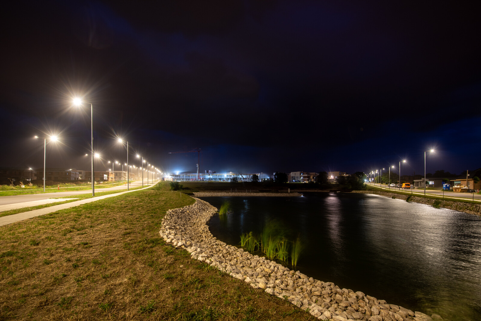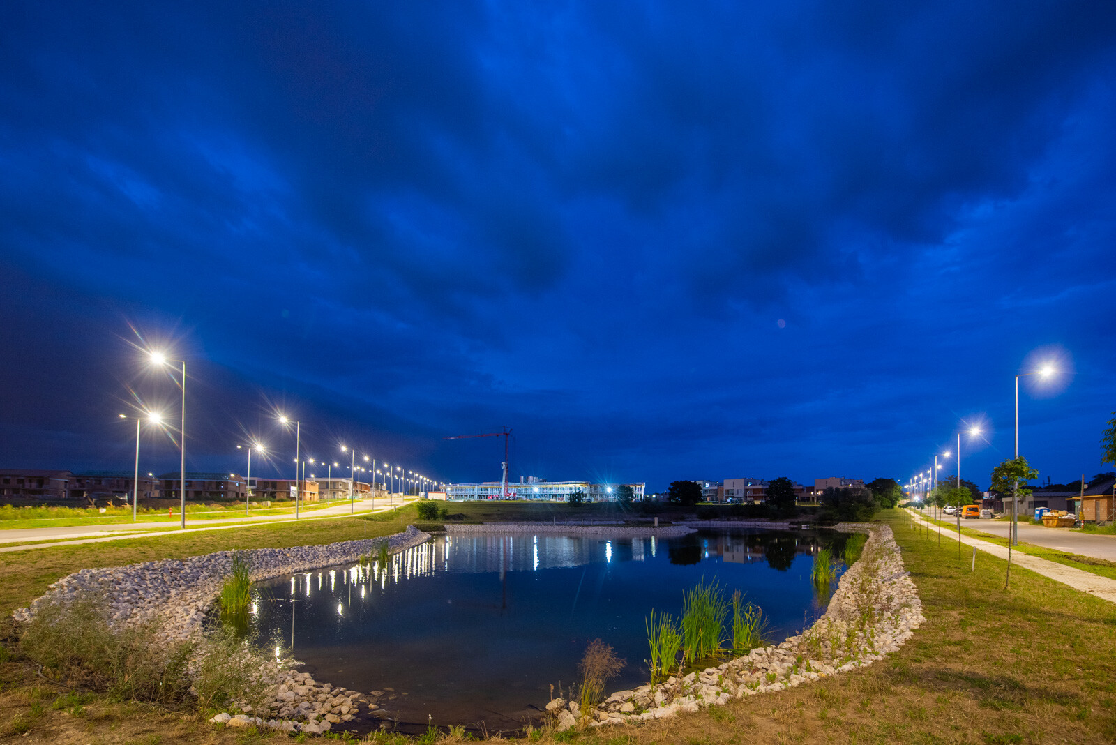 Több hónapos előkészület után a kiépített közvilágítási hálózatot ez év tavaszán átadták a Budapesti Dísz- és Közvilágítási Kft. tulajdonába, a sikeres próbaüzemet követően a lakópark esti kivilágítása folyamatossá vált.