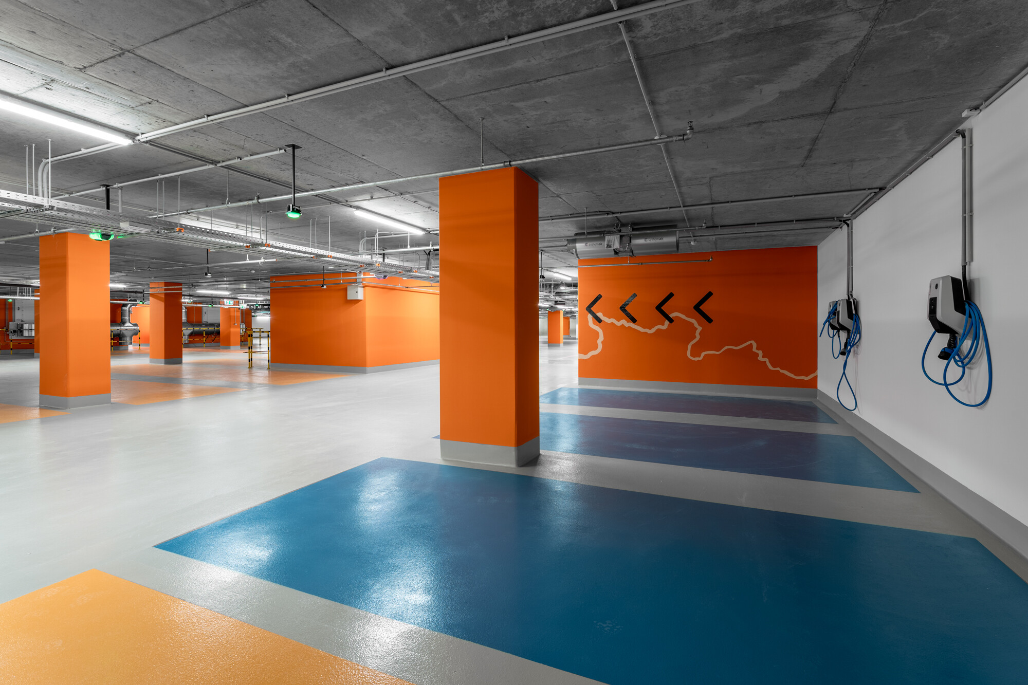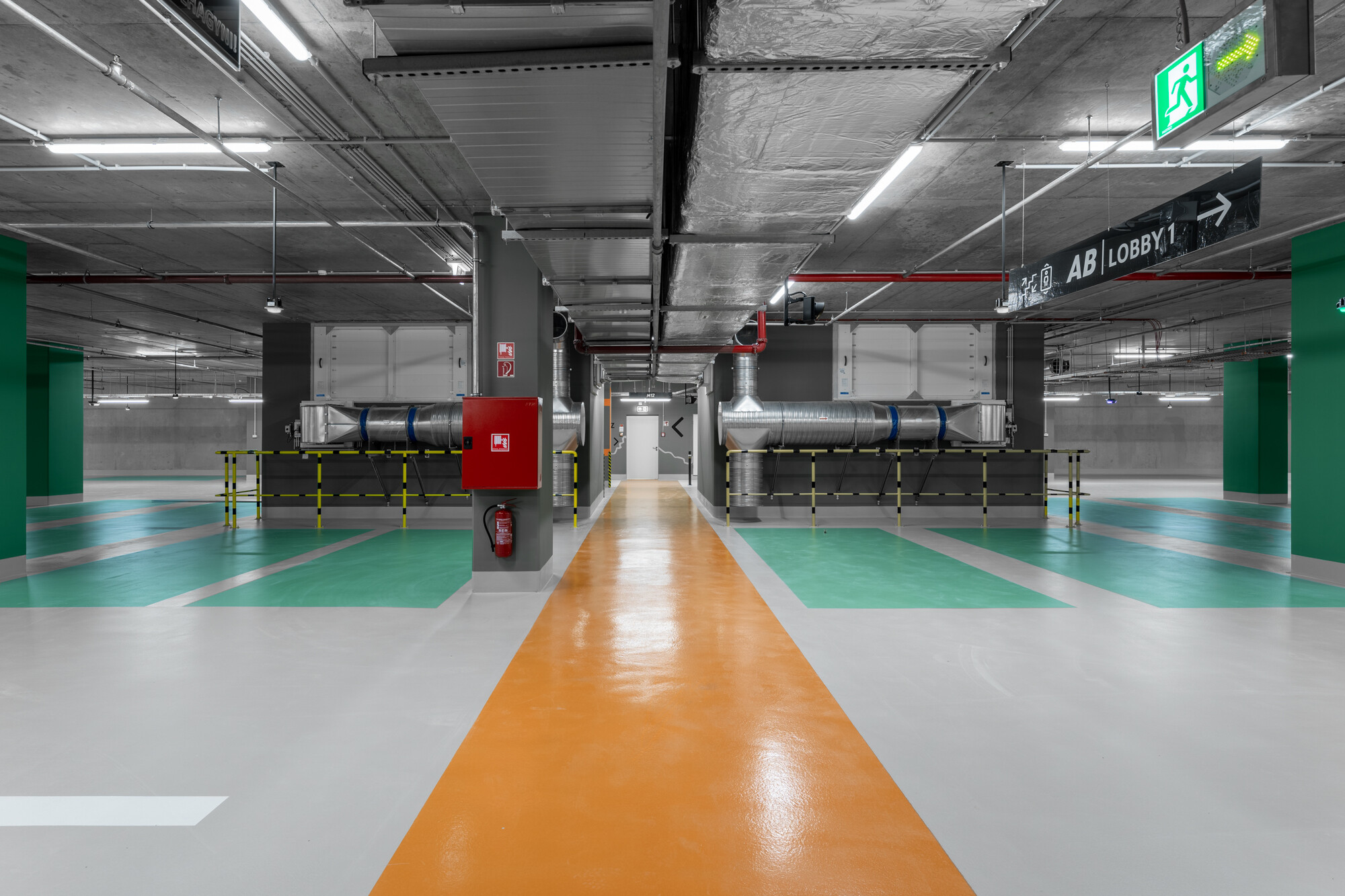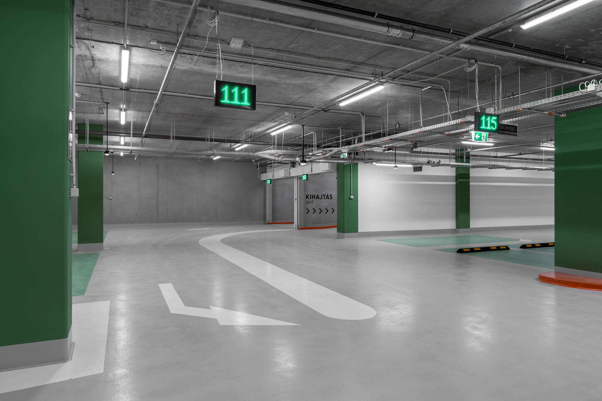 Az épületben korszerű menedzsment rendszer is működik a különböző energia-előállító eszközök hatékony üzemeltetéséhez. A 878 férőhelyes parkolóházban 20 elektromos autótöltő is rendelkezésre áll.