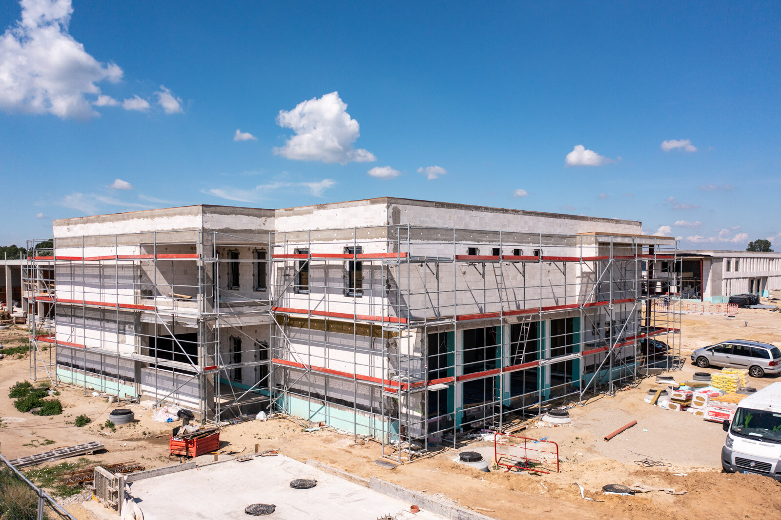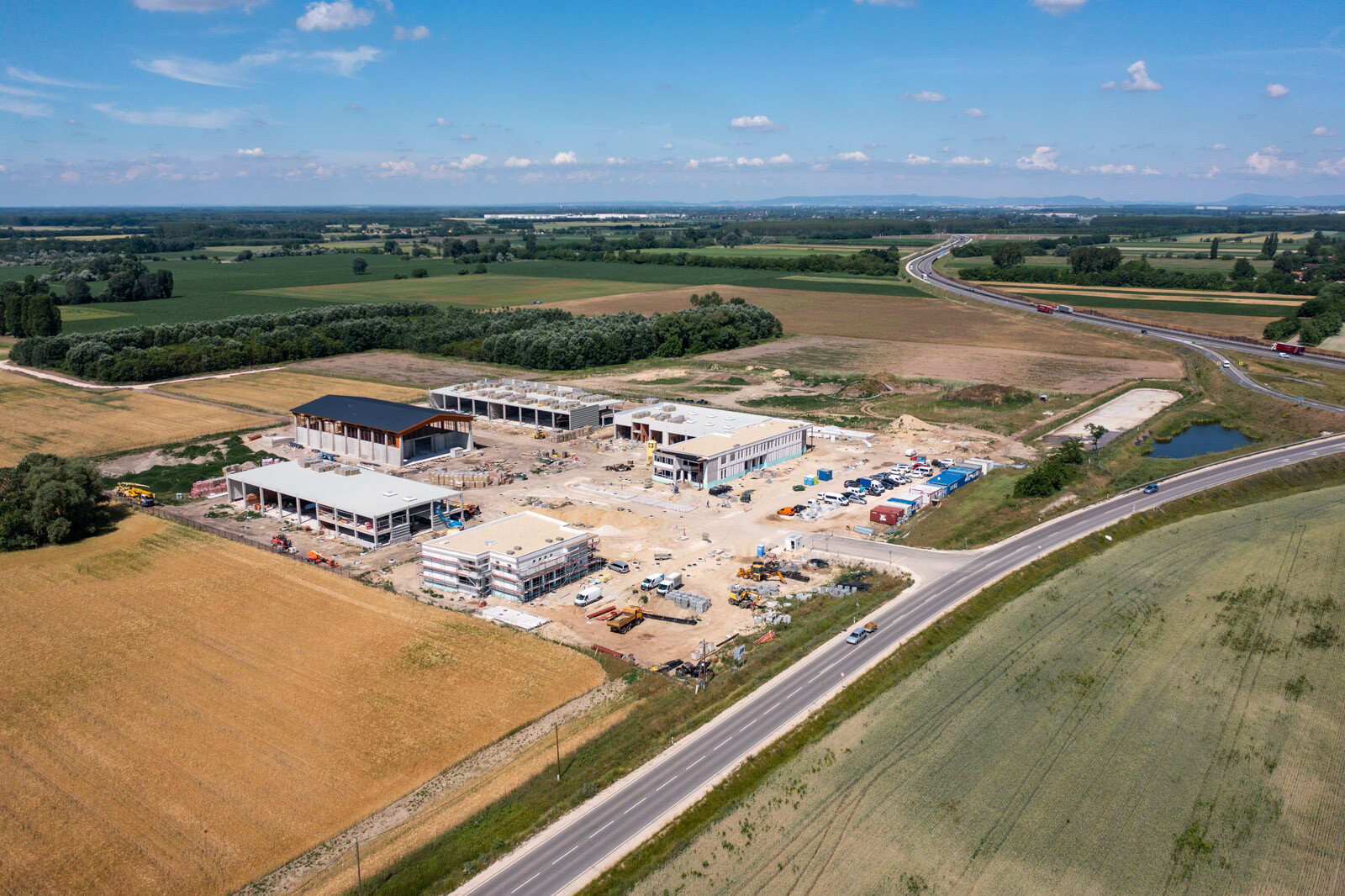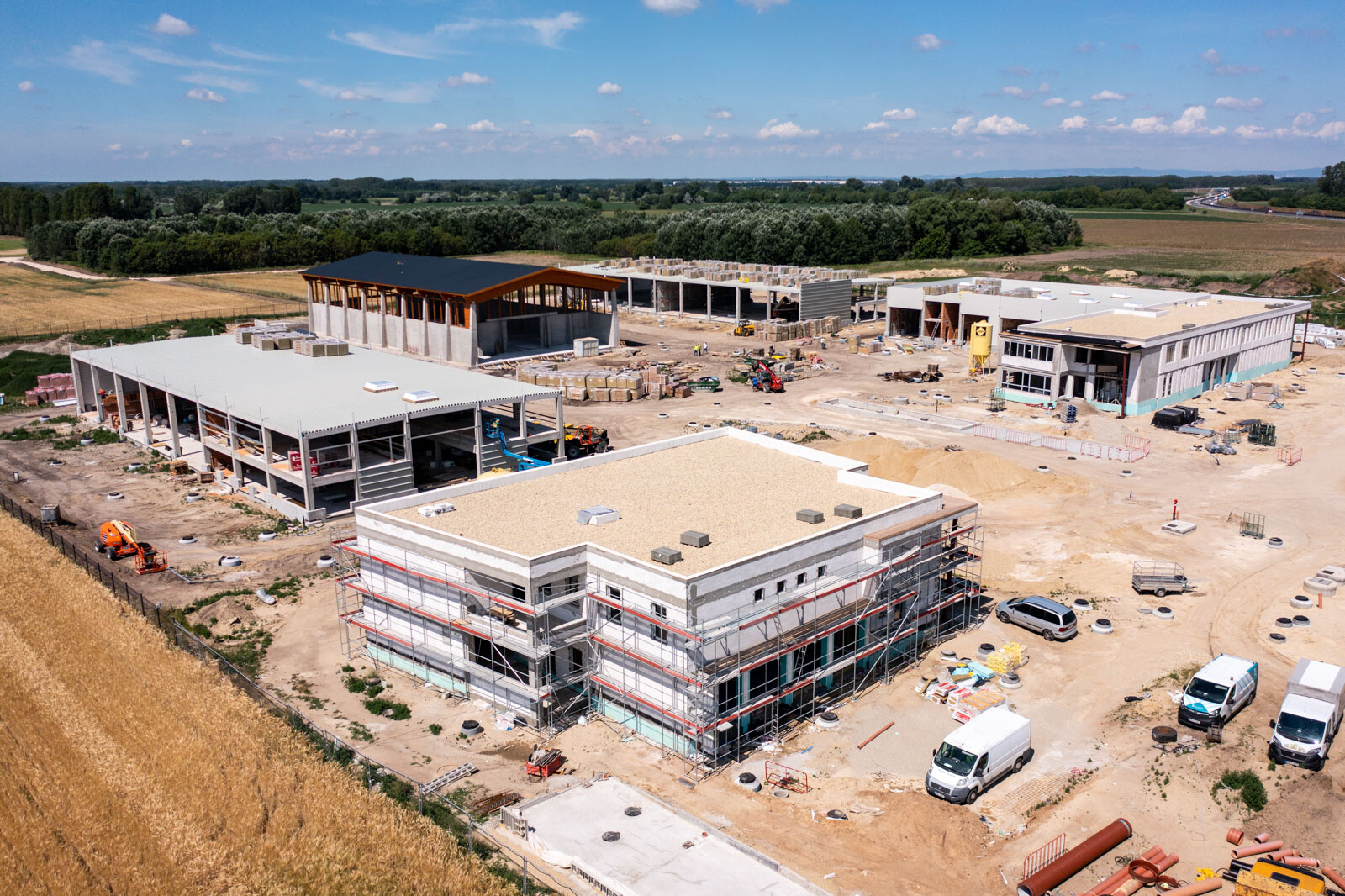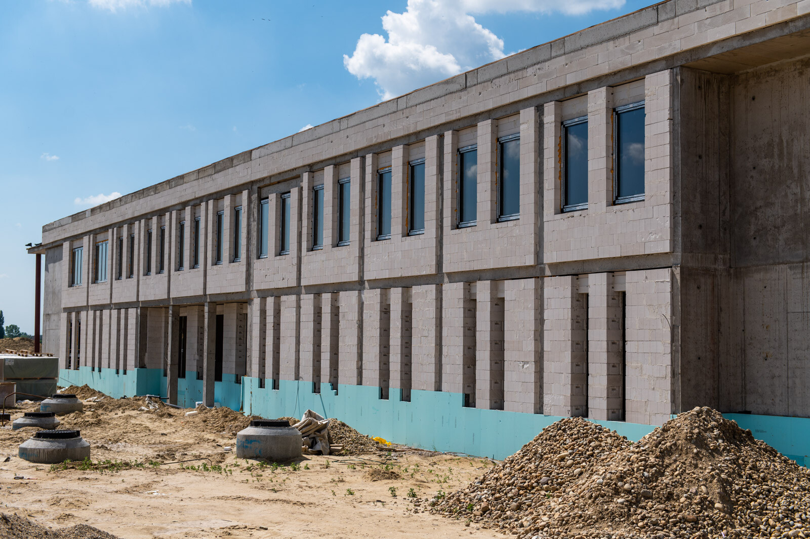 Az épületek teherhordó szerkezete, tetőfedése, illetve homlokzata mind a hat tervezett épületnél elkészült, illetve a terepszint alatti közműhálózat kiépítése is megvalósult. A kétszintes rendőrségi épületnél, illetve a mérnökségi szociális-iroda épületnél folyamatban vannak a befejező szakipari munkák, illetve a gépészeti és elektromos hálózatok kiépítése. Az épületek szerkezetépítésében az Épszerk-Pannónia Invest Kft. is szerepet vállalt.