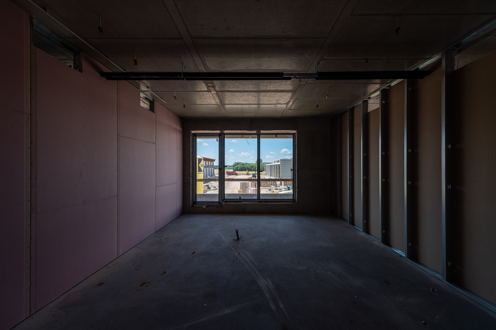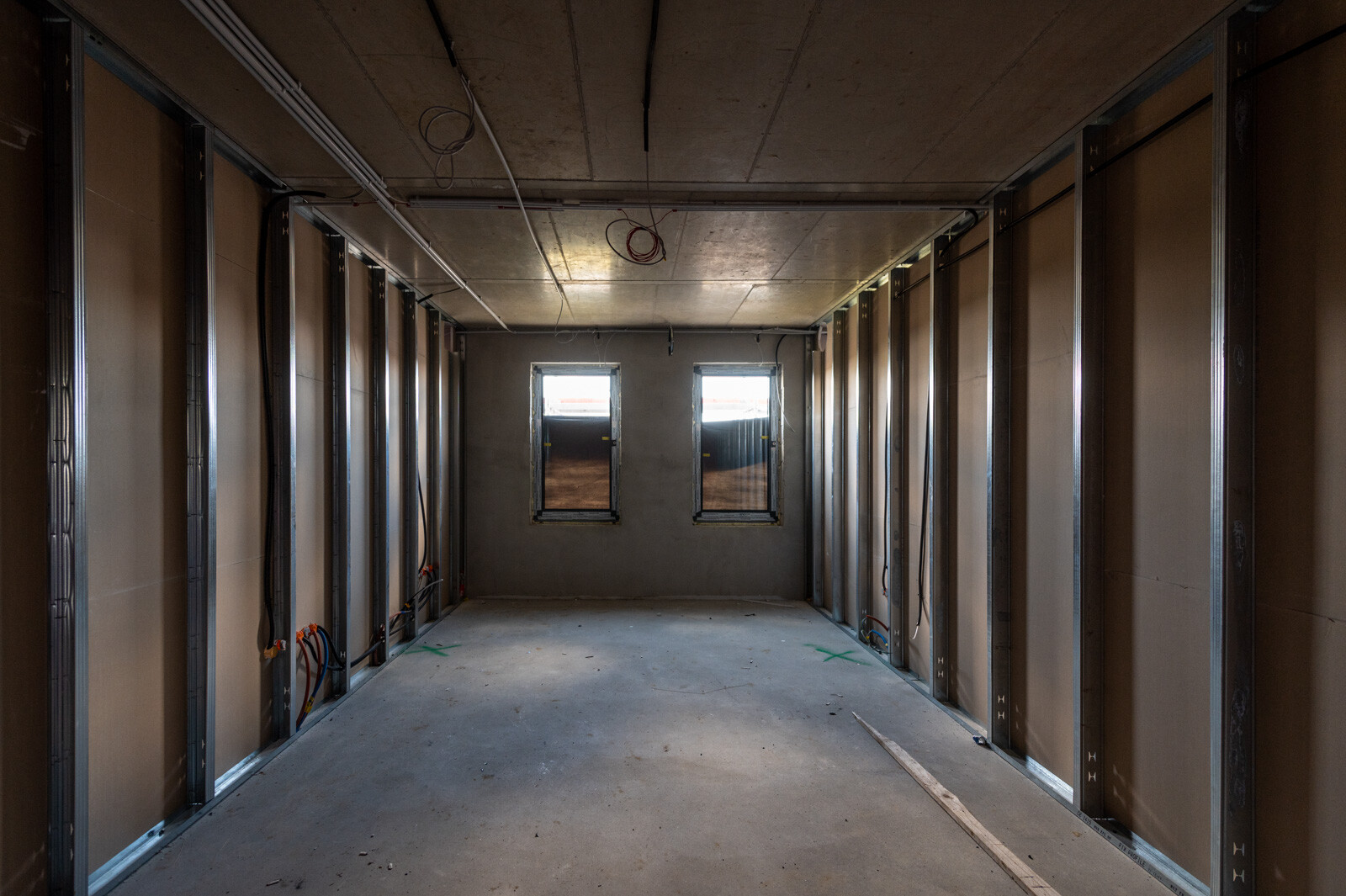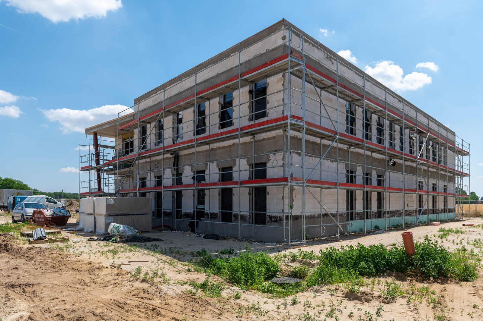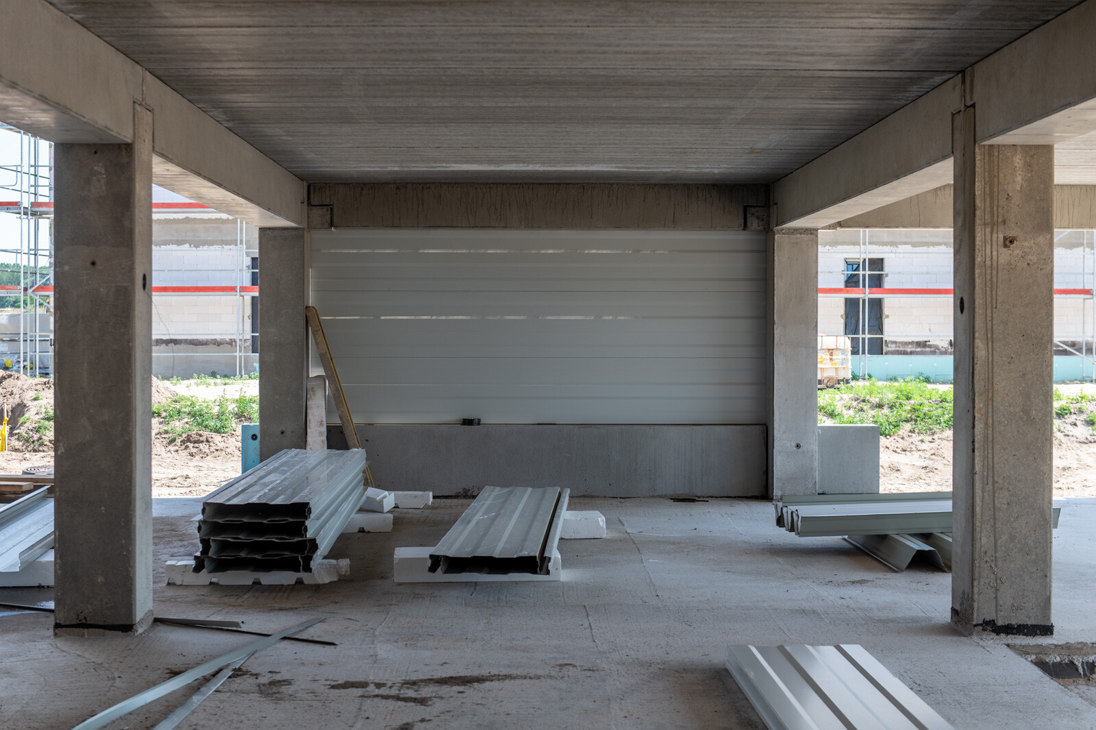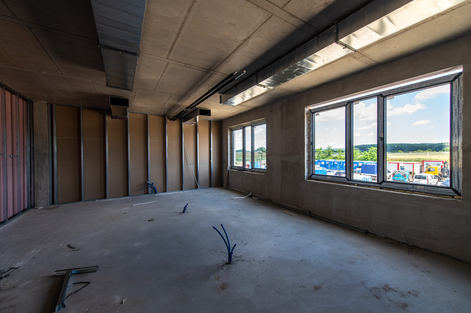 Az épületek teherhordó szerkezete, tetőfedése, illetve homlokzata mind a hat tervezett épületnél elkészült, illetve a terepszint alatti közműhálózat kiépítése is megvalósult. A kétszintes rendőrségi épületnél, illetve a mérnökségi szociális-iroda épületnél folyamatban vannak a befejező szakipari munkák, illetve a gépészeti és elektromos hálózatok kiépítése. Az épületek szerkezetépítésében az Épszerk-Pannónia Invest Kft. is szerepet vállalt.