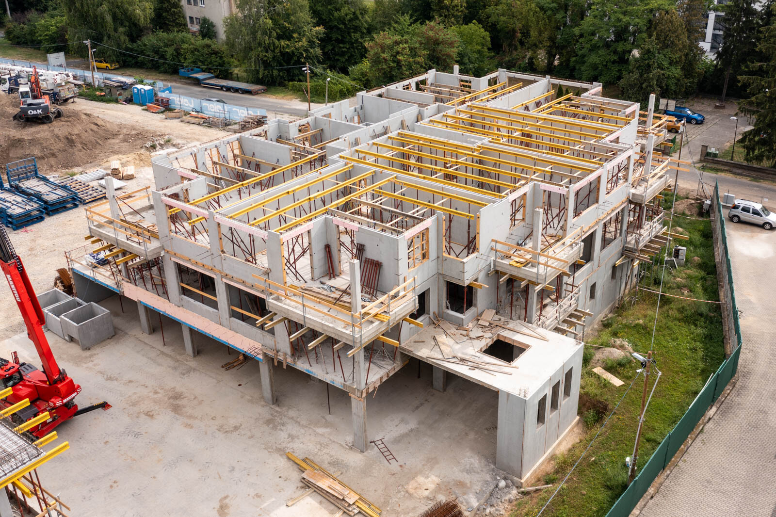 A lakások megvalósításához a Leier Hungária Kft. előregyártott kéregelemek, illetve tömör vasbeton elemek gyártását és helyszínre szállítását végzi el.