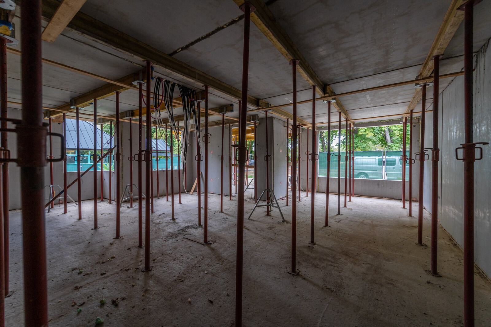 Samu Bence elmondta, jelenleg a kéregfal és a kéregfödémek, illetve a gerenda beépítésén dolgoznak, továbbá a két épület eltolva készül, így minden termék építése folyamatosan halad.