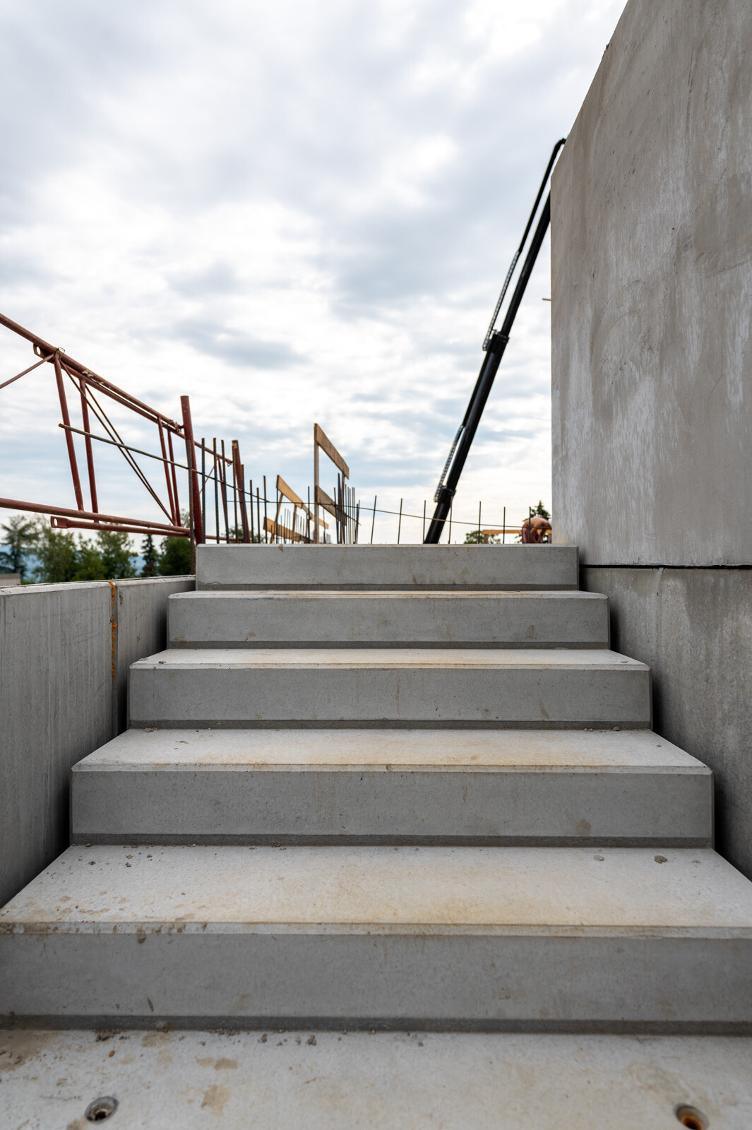 A lépcsőházban, a szintek áthidalására egyenes és pihenős lépcsőkarokat építenek be, amelyek azonnal terhelhetők, illetve esztétikai minőségben is élen jár a gyors alkalmazhatósága mellett.