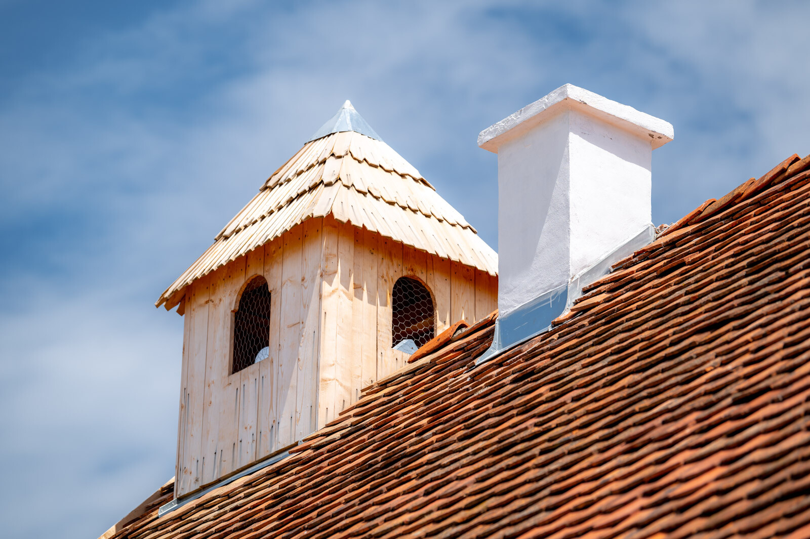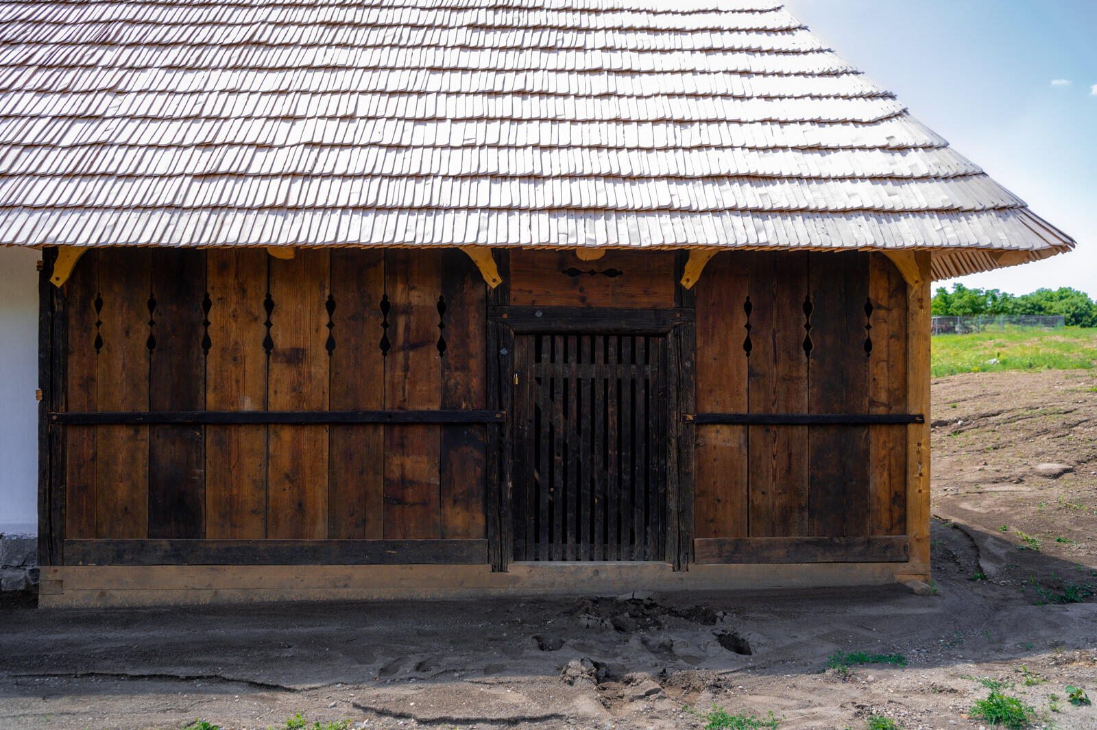 A tájegységnek megfelelő stílusú cserepet nehezen és csak több helyről lehetett összegyűjteni, a dránica deszkafedéshez szükséges alapanyagok (faszögekkel szegelt tetőfedő deszkalapok – a Szerk.) Erdélyből érkeztek. A tetőszerkezetek ácsolása hagyományos ácskötésekkel és illesztésekkel, illetve keményfaszegekkel készült, míg a csűr kialakítása során nádszövet tapasztást, vesszőfonást és agyagtapasztást alkalmaztak.