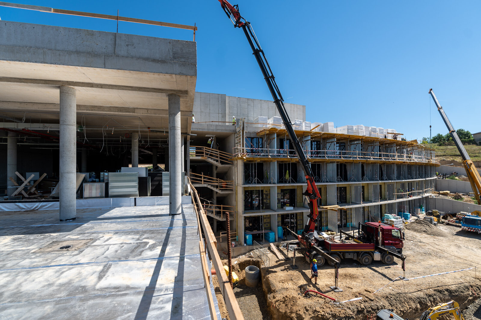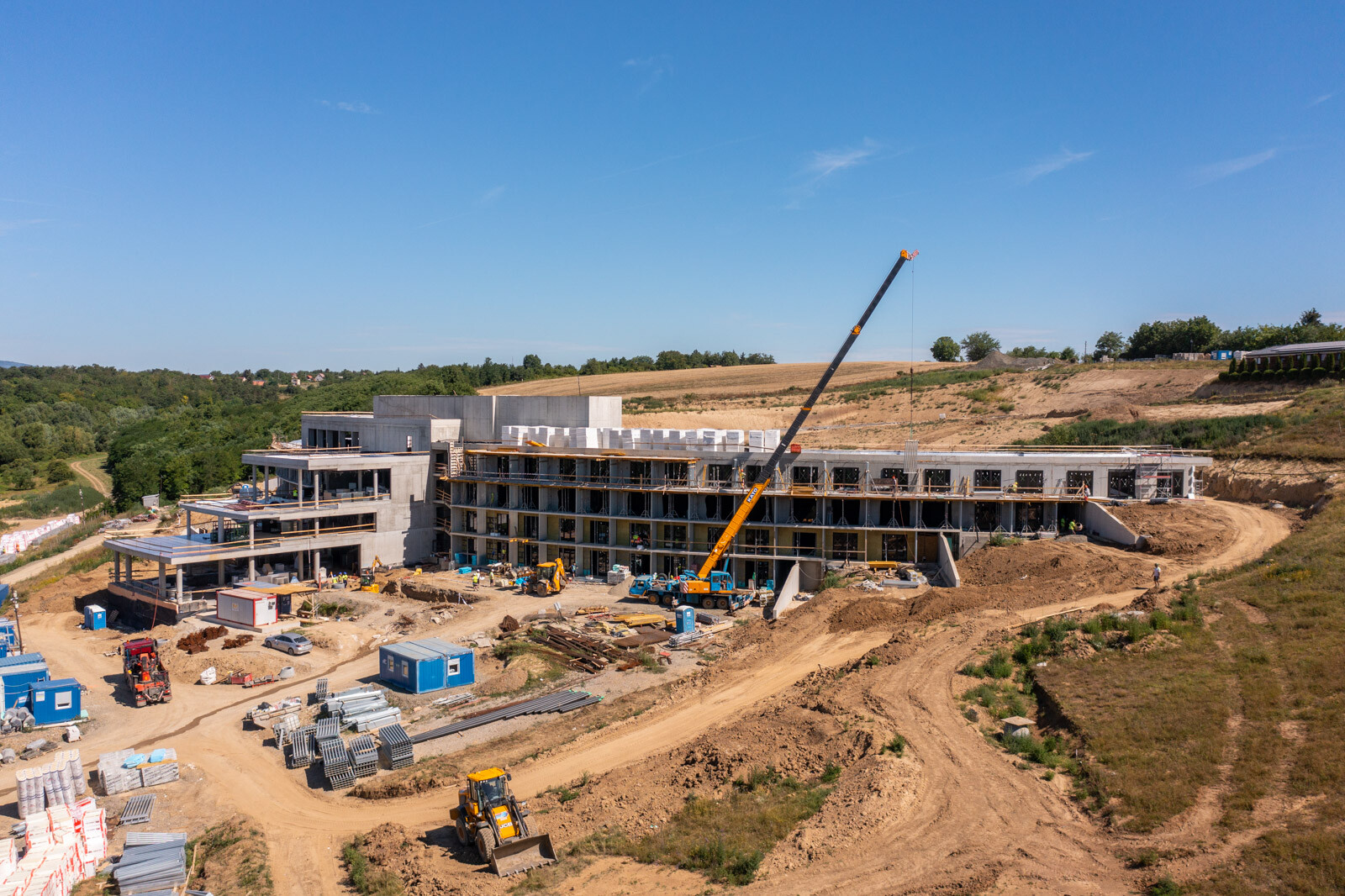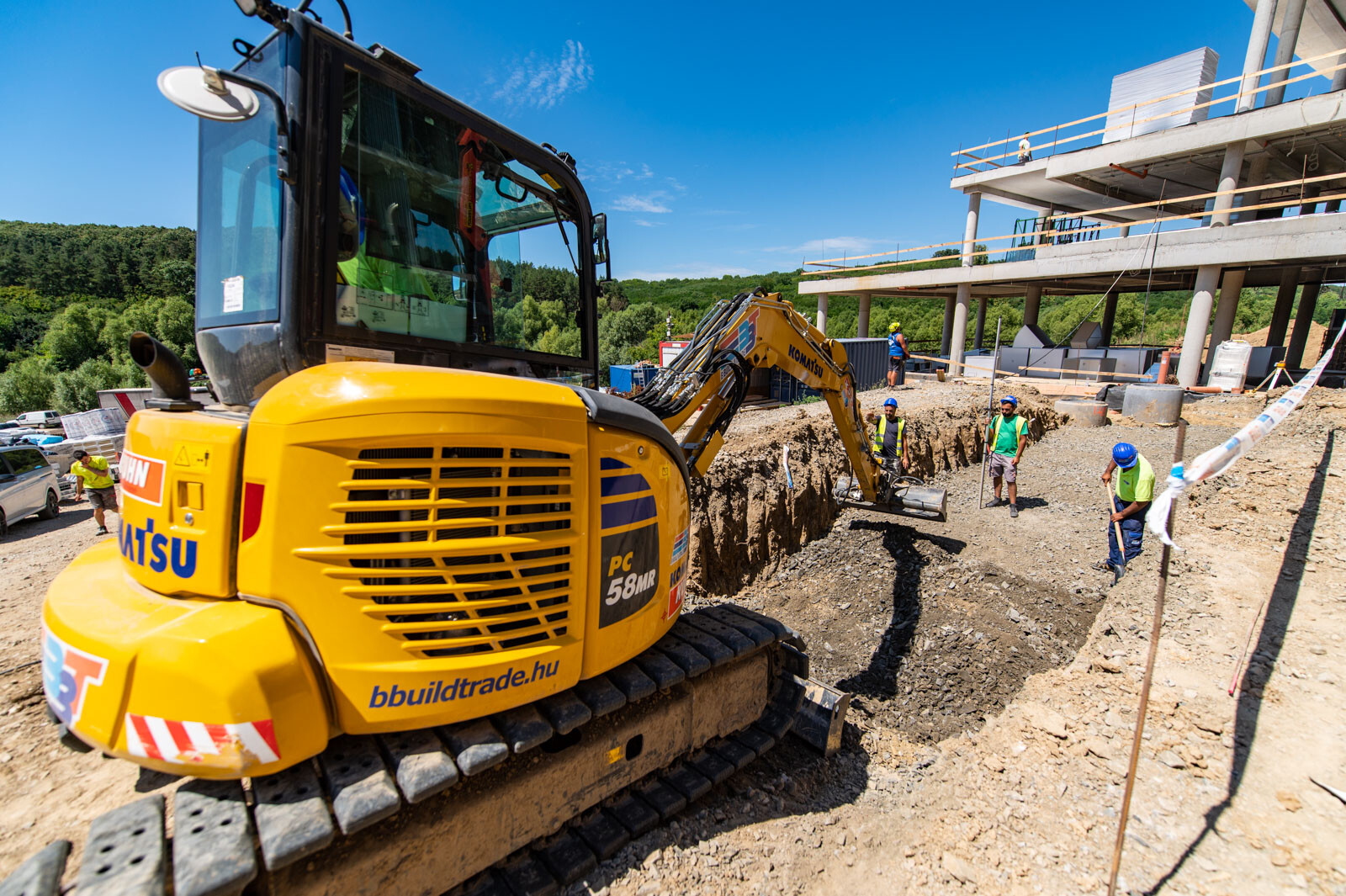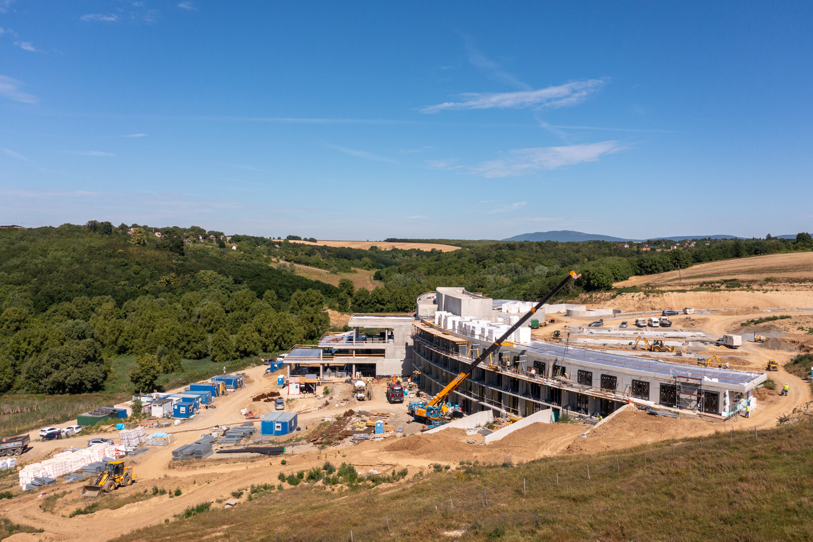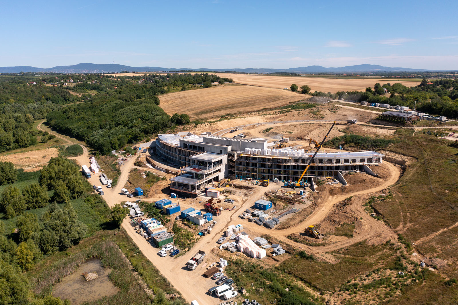 „A szerkezetépítés ezekben a napokban fejeződik be, ezzel párhuzamosan készül az épületgépészet és a villamosság, valamint az uszodagépészet” – tette hozzá a projektvezető. Emellett folyamatban van a végleges tereprendezés, a parkolók és a közlekedési utak építése, továbbá a közműépítések is terv szerint haladnak.