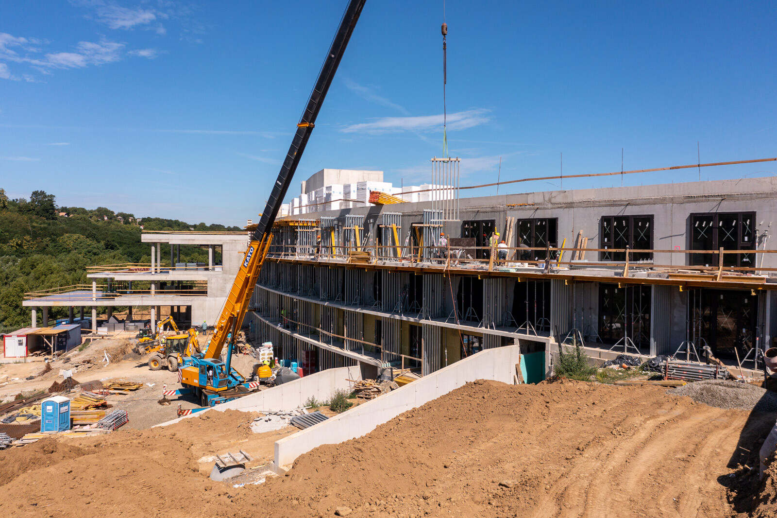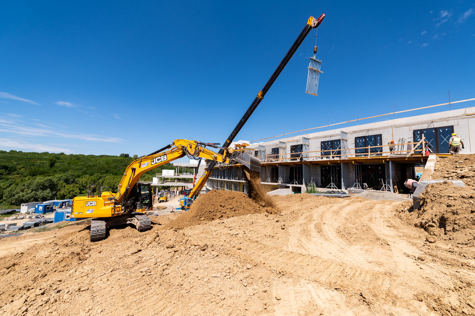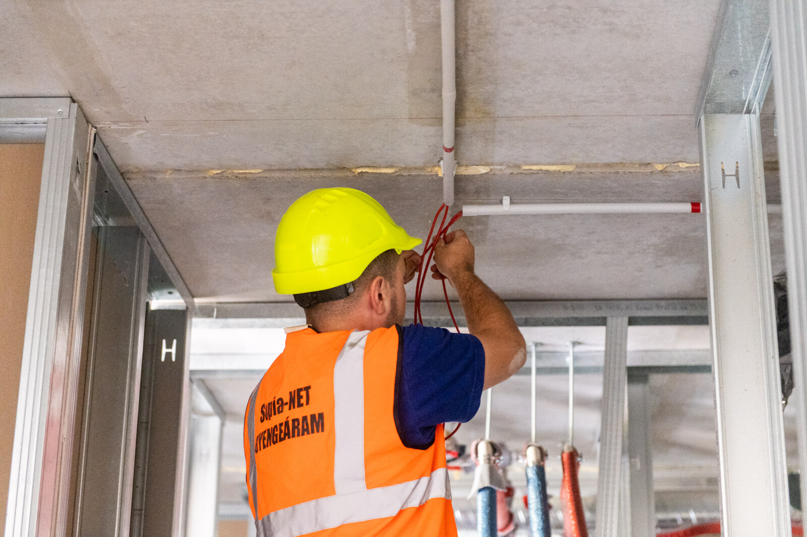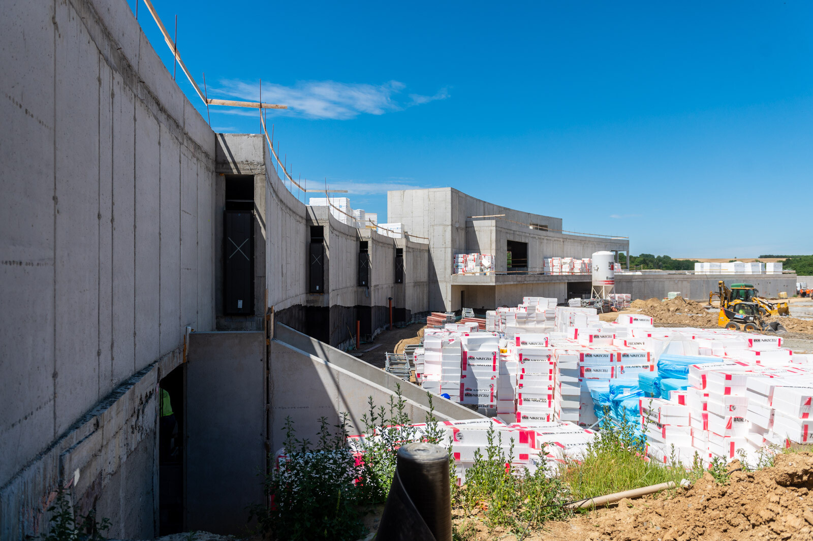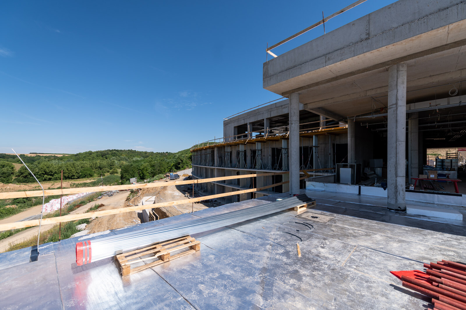 „A szerkezetépítés ezekben a napokban fejeződik be, ezzel párhuzamosan készül az épületgépészet és a villamosság, valamint az uszodagépészet” – tette hozzá a projektvezető. Emellett folyamatban van a végleges tereprendezés, a parkolók és a közlekedési utak építése, továbbá a közműépítések is terv szerint haladnak.