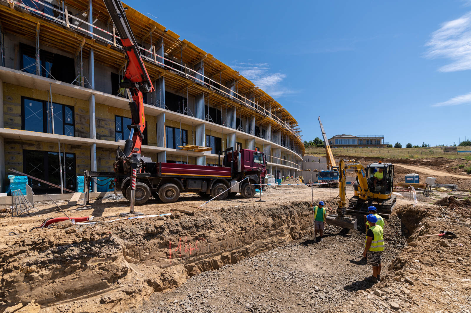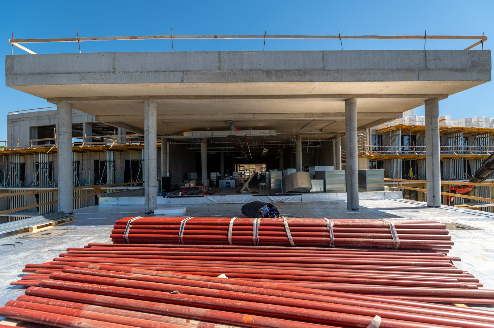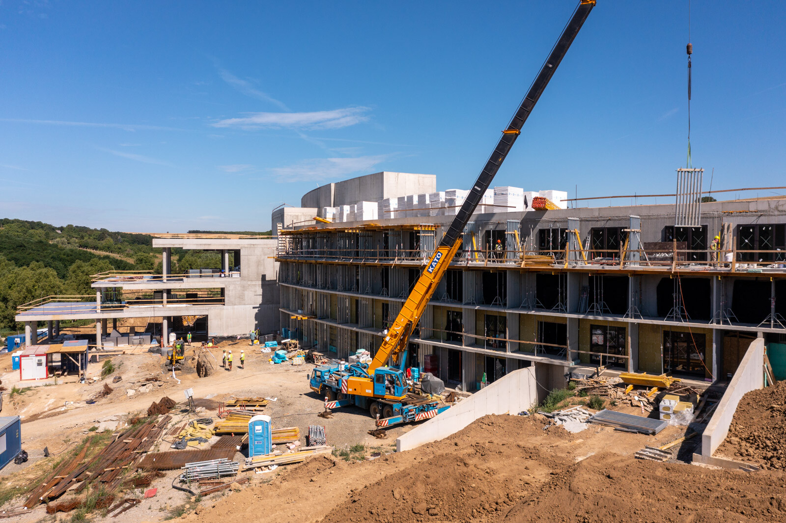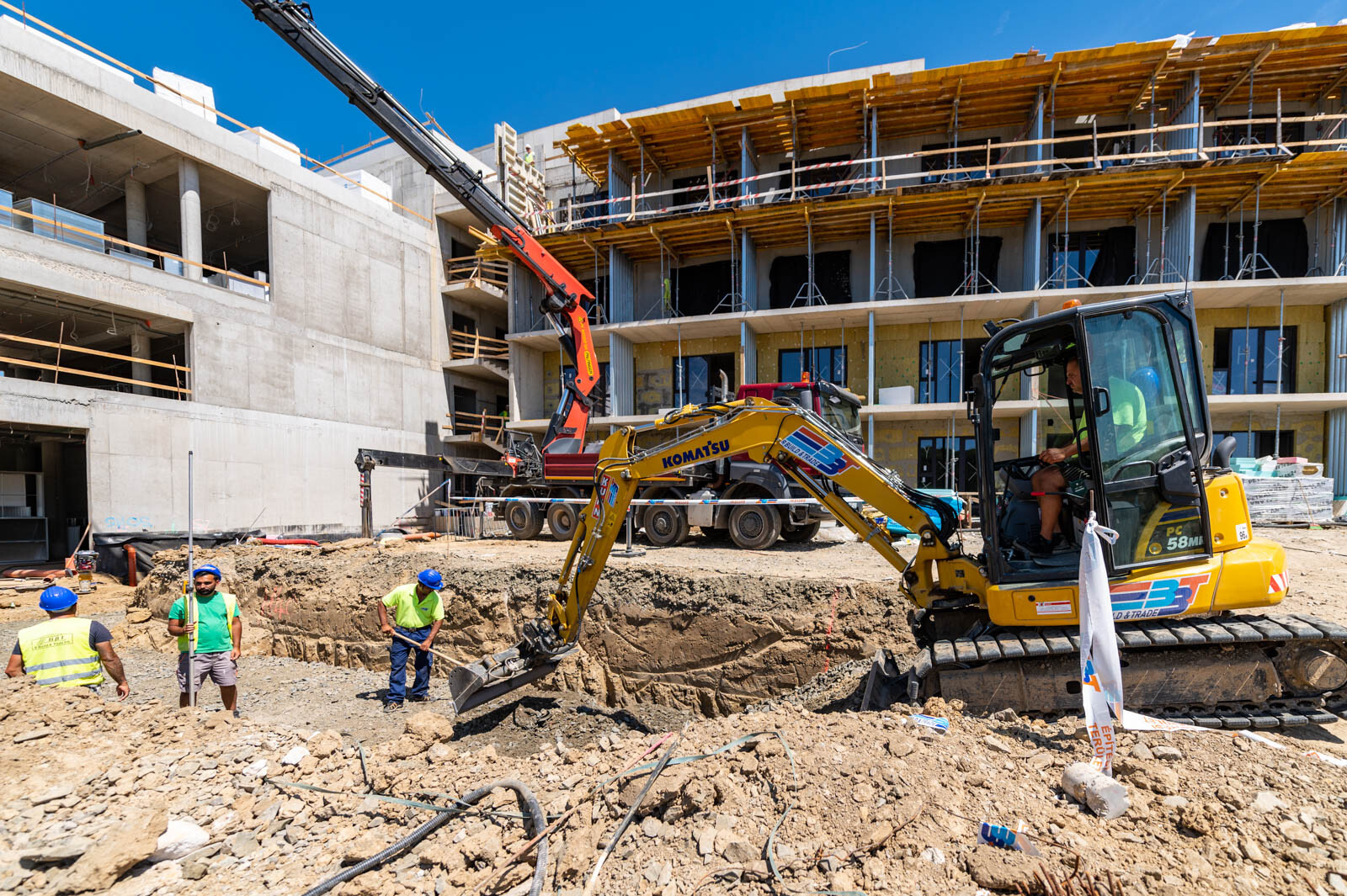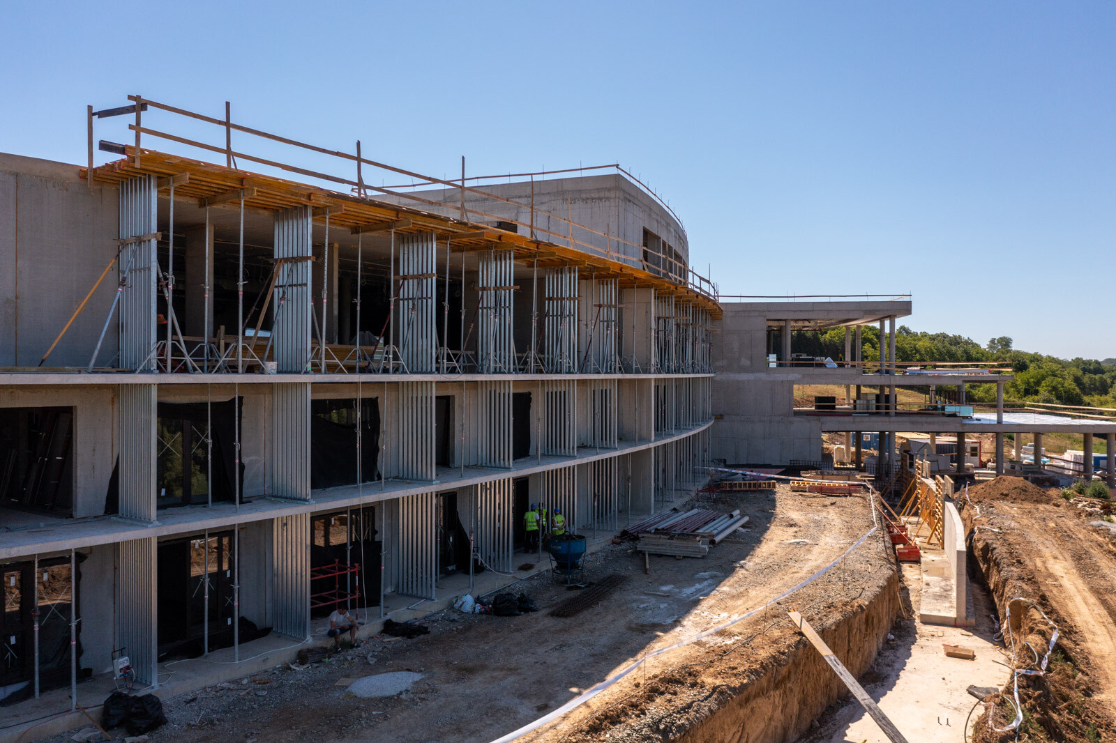 „A szerkezetépítés ezekben a napokban fejeződik be, ezzel párhuzamosan készül az épületgépészet és a villamosság, valamint az uszodagépészet” – tette hozzá a projektvezető. Emellett folyamatban van a végleges tereprendezés, a parkolók és a közlekedési utak építése, továbbá a közműépítések is terv szerint haladnak.