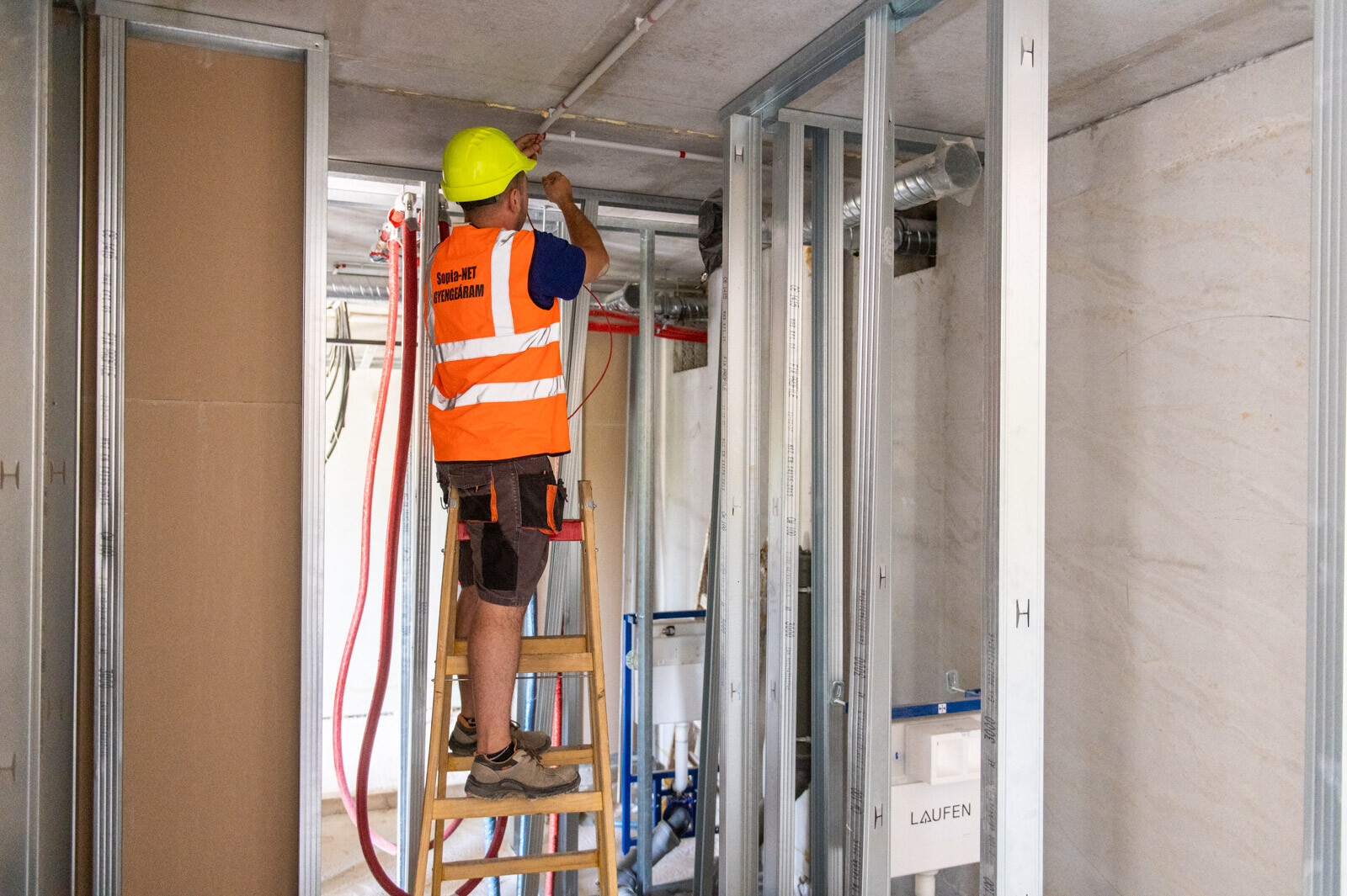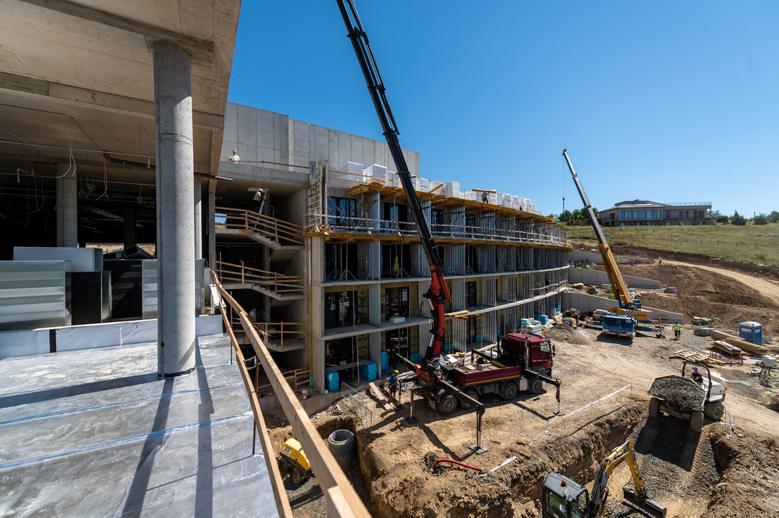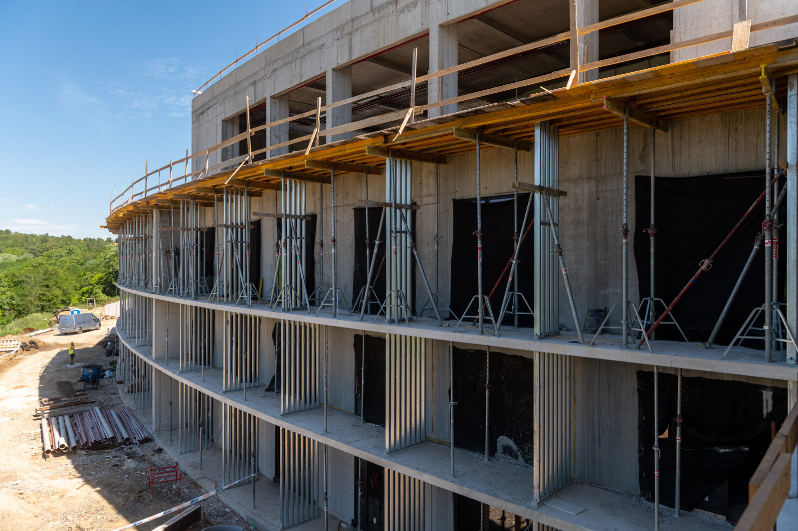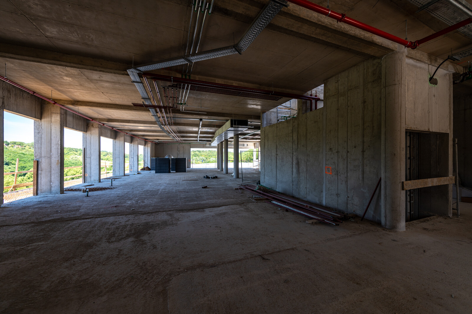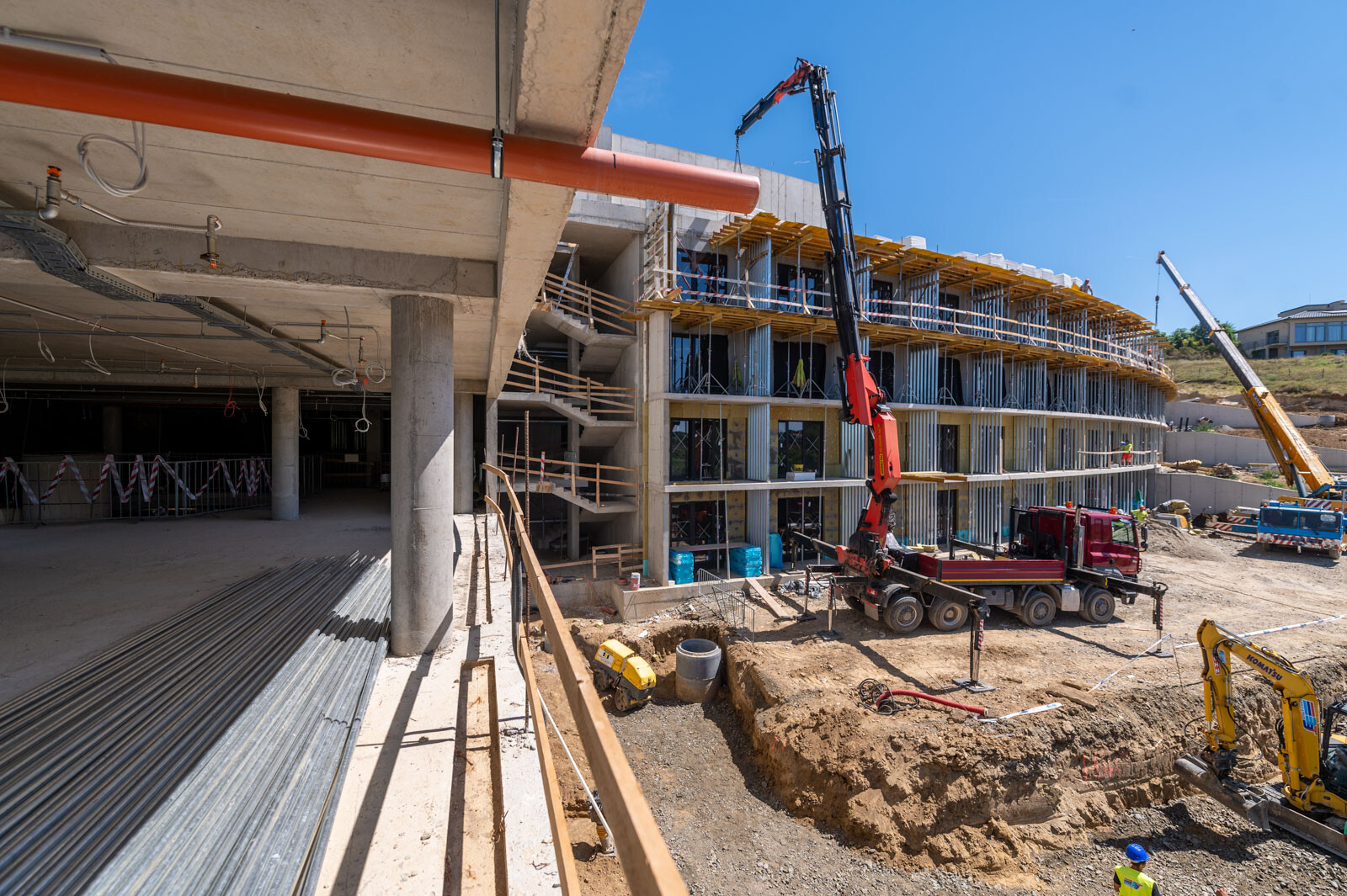 „A szerkezetépítés ezekben a napokban fejeződik be, ezzel párhuzamosan készül az épületgépészet és a villamosság, valamint az uszodagépészet” – tette hozzá a projektvezető. Emellett folyamatban van a végleges tereprendezés, a parkolók és a közlekedési utak építése, továbbá a közműépítések is terv szerint haladnak.