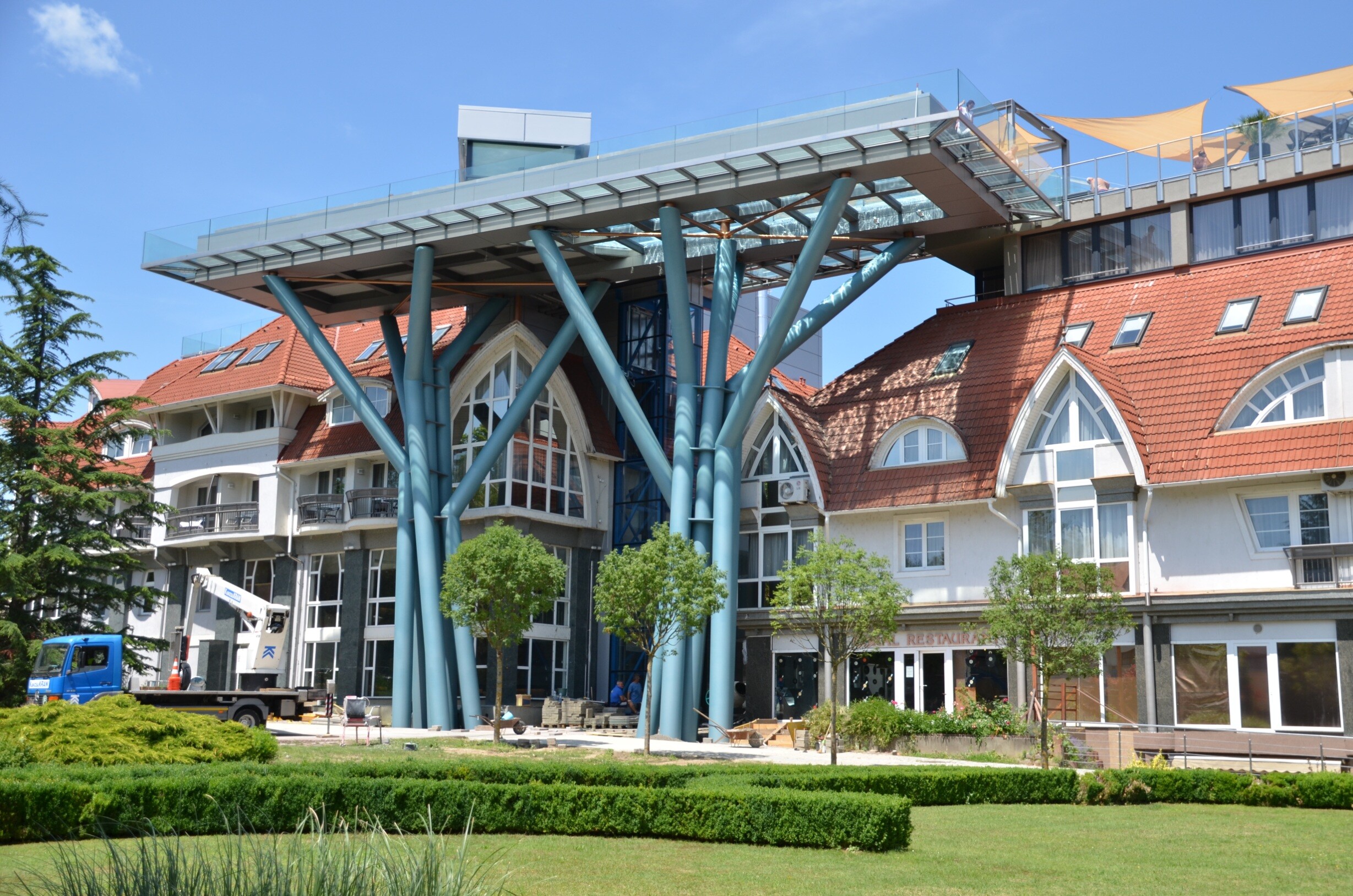 Európában is egyedülálló beruházás valósult meg Zalakaroson, merész ötlettel bővítették ugyanis a MenDan Magic Spa és Wellness Hotel szolgáltatásait: az épület tetőszintjén egy fát formáló, acél pilléreken nyugvó úszómedencét alakítottak ki, mely egy új SPA részleg részét képezi.