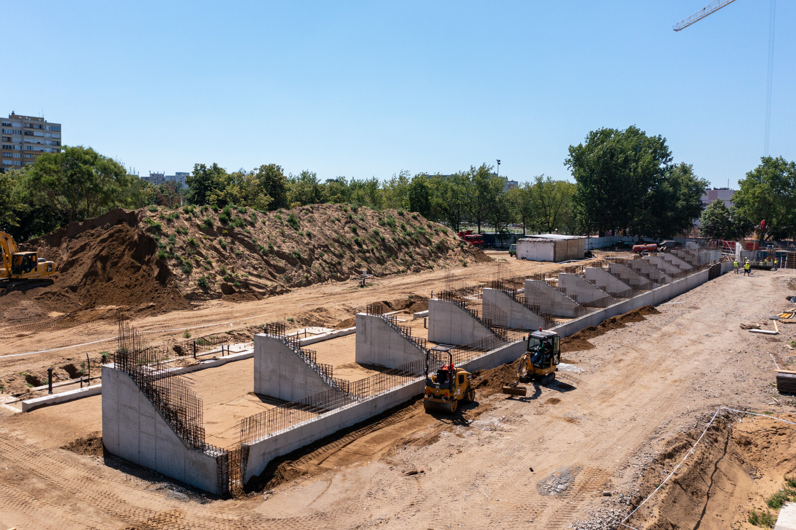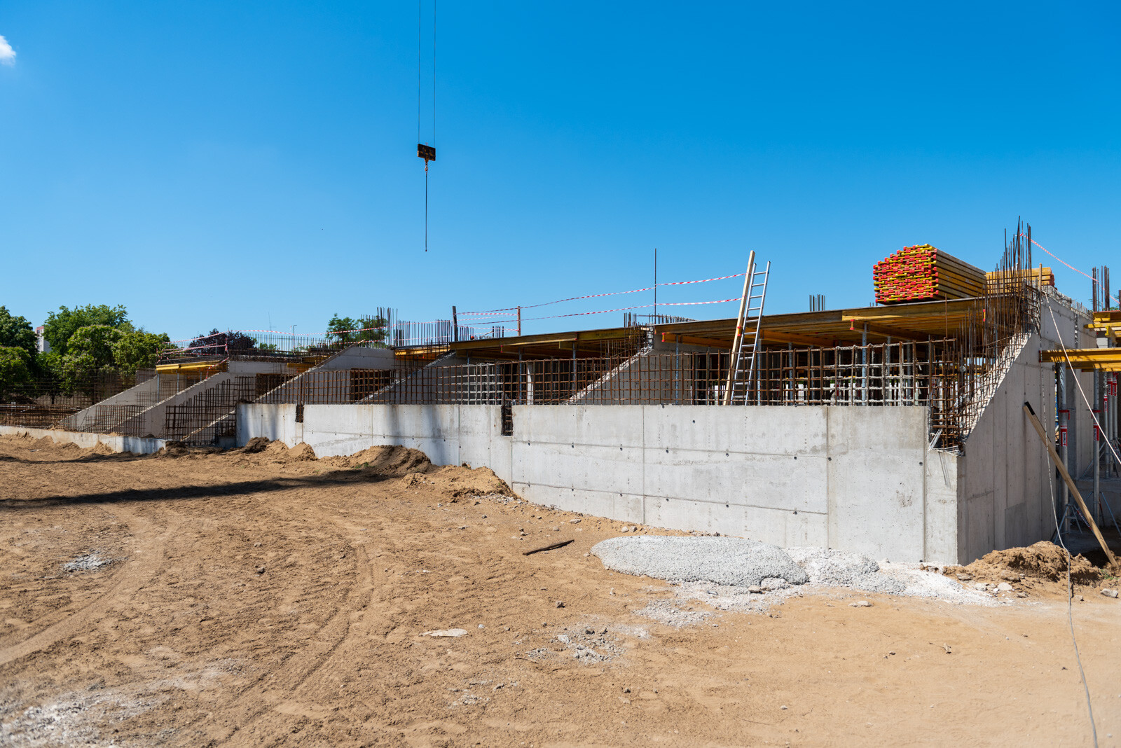Maga a stadion szerkezete is egyre látványosabban emelkedik ki a földből. „A fejépület földszinti falaival és pilléreivel elkészültünk, már a földszint feletti födém vasszerelése készül. A kifejezetten meleg idő alatt sem volt fennakadás - jó ütemben tudunk felfelé haladni” – fejtette ki a vezető mérnök. Kiemelte: