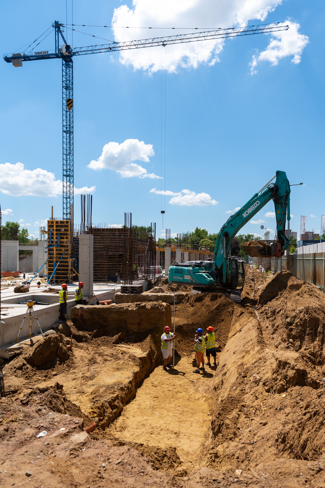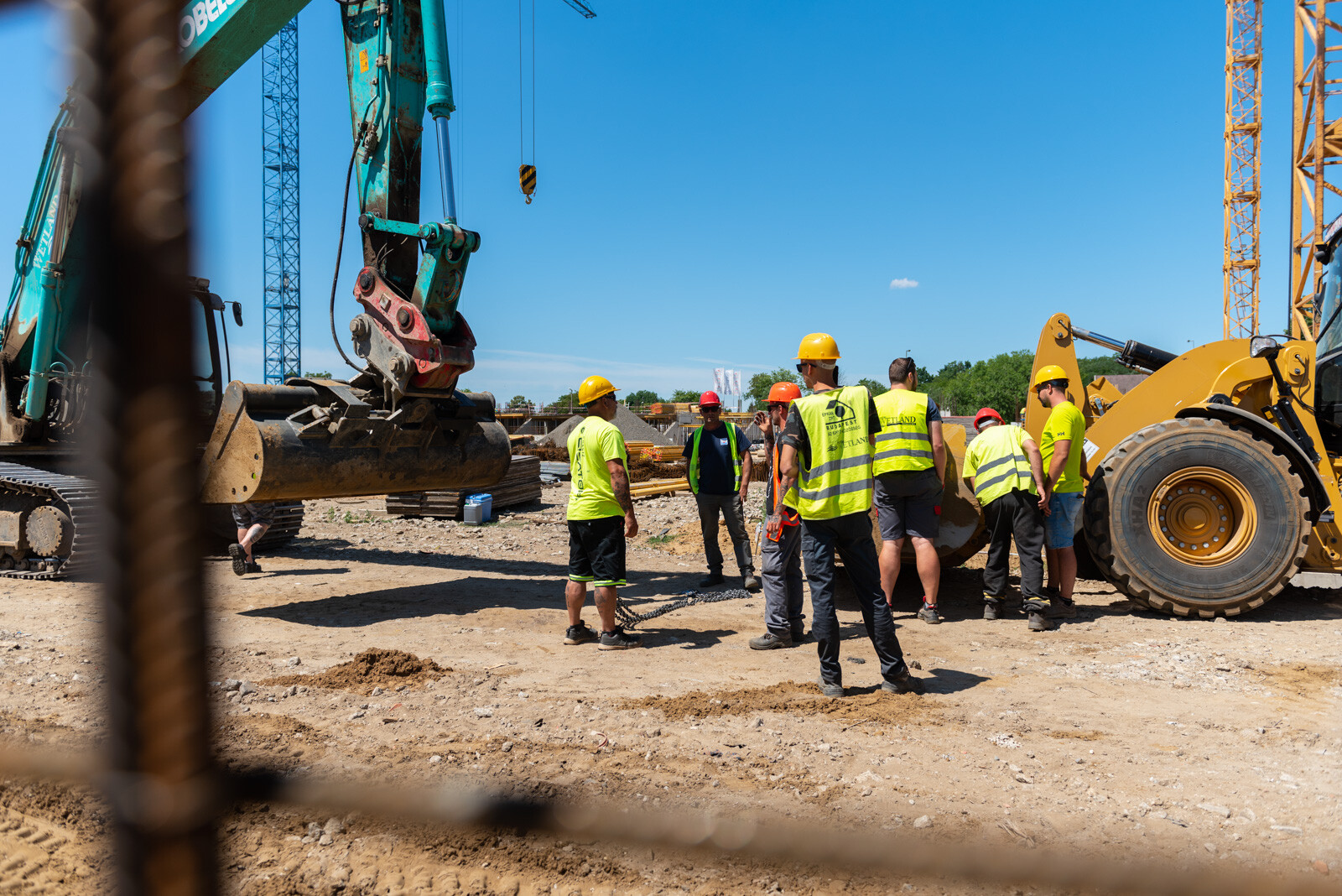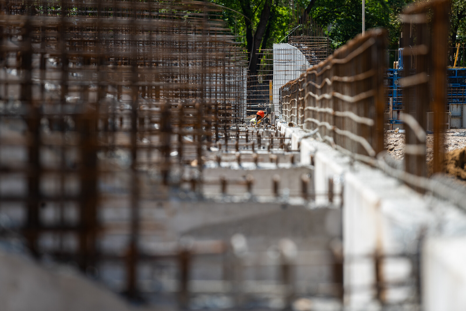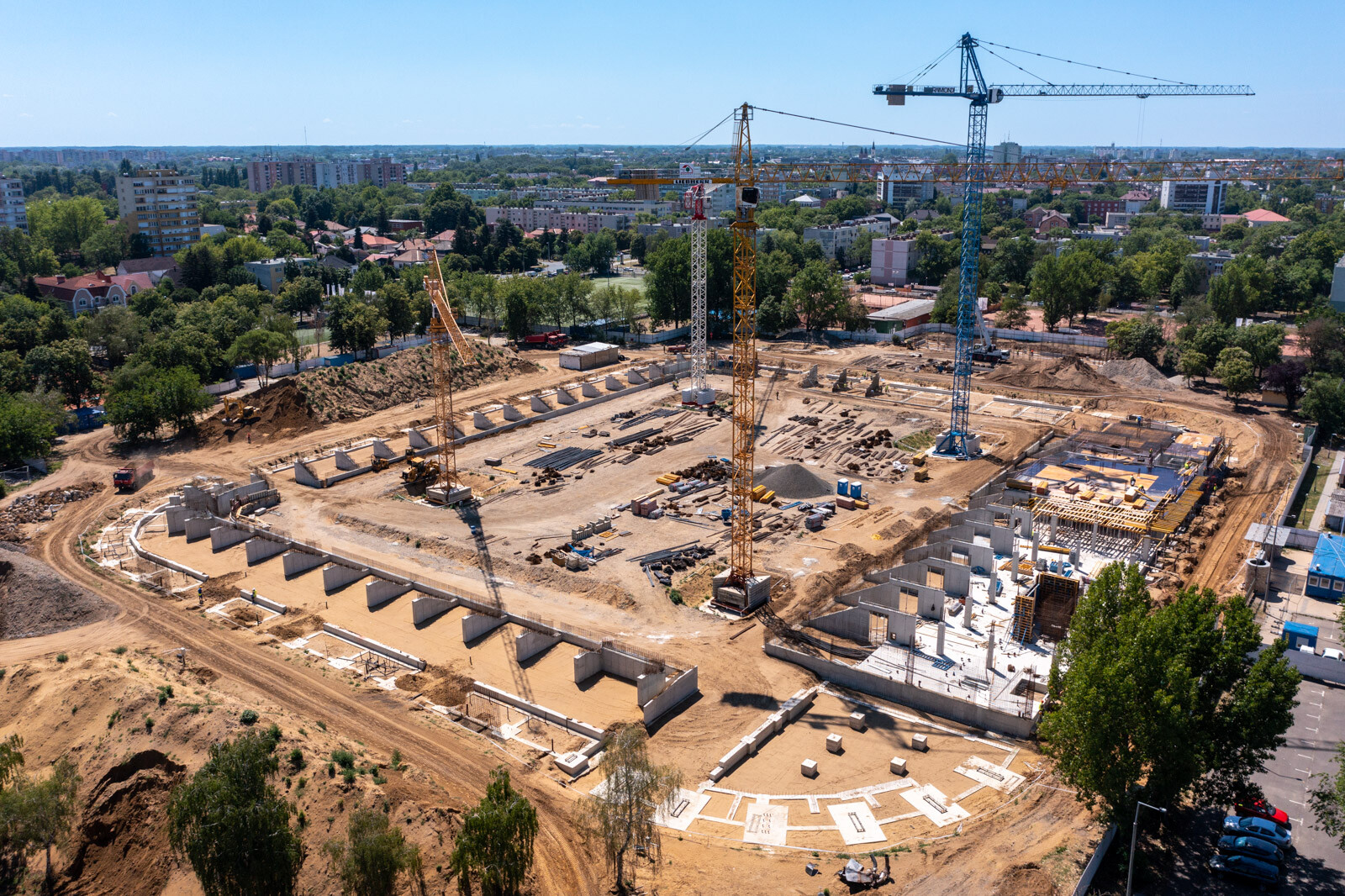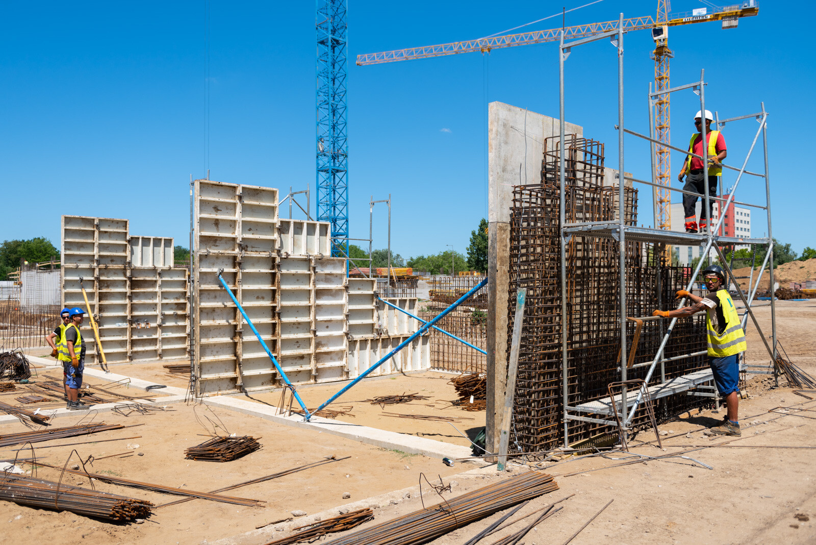 Illés Gábor elmondta: az alapozást a konzorcium elvégezte, a sávalapok és a pontalapok is elkészültek. A kivitelezők a földszinti falak és a pillérek vasszerelésesével is jól haladnak, miközben a lábazati gerendák betonozása is készül már. Ezt követően majd a tömörített földvisszatöltésre kerül sor, ezután pedig kezdődhetnek a padlólemez alatti gépészeti munkák.
