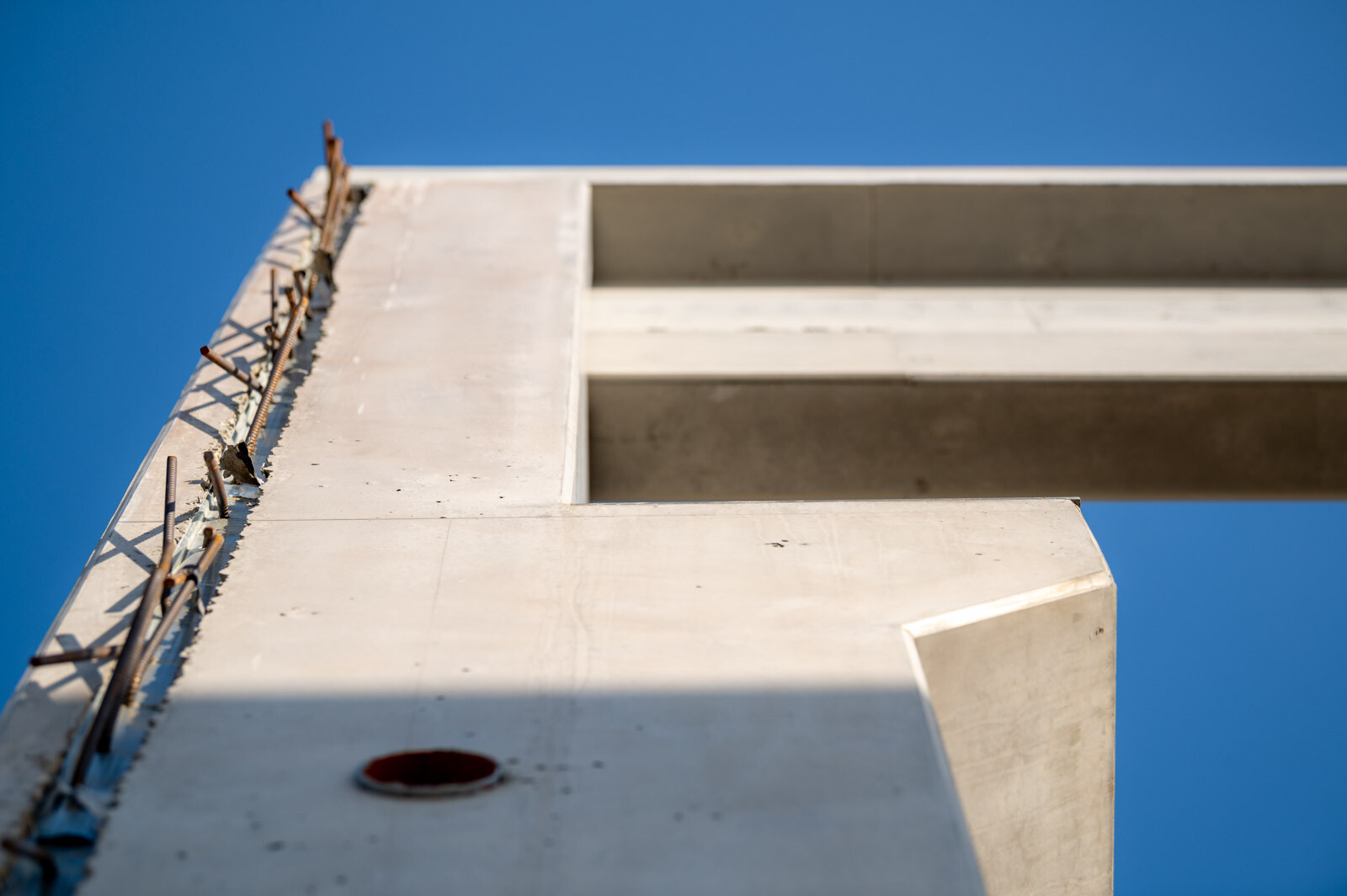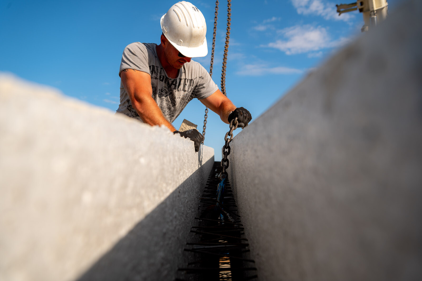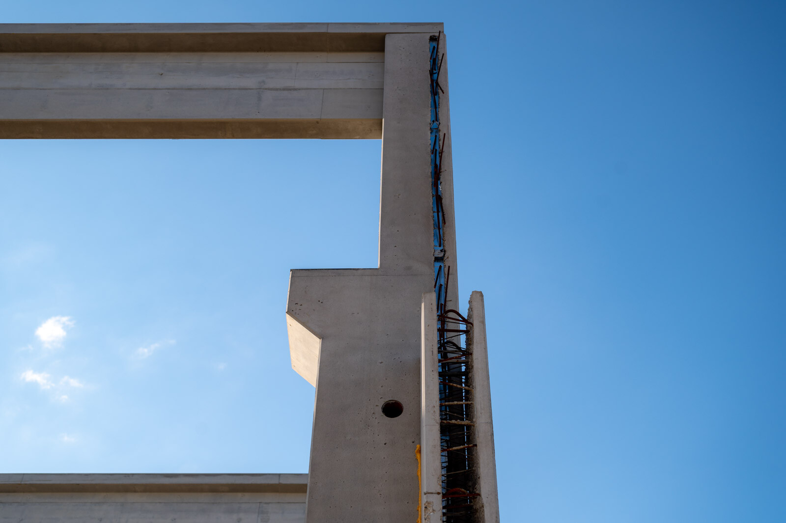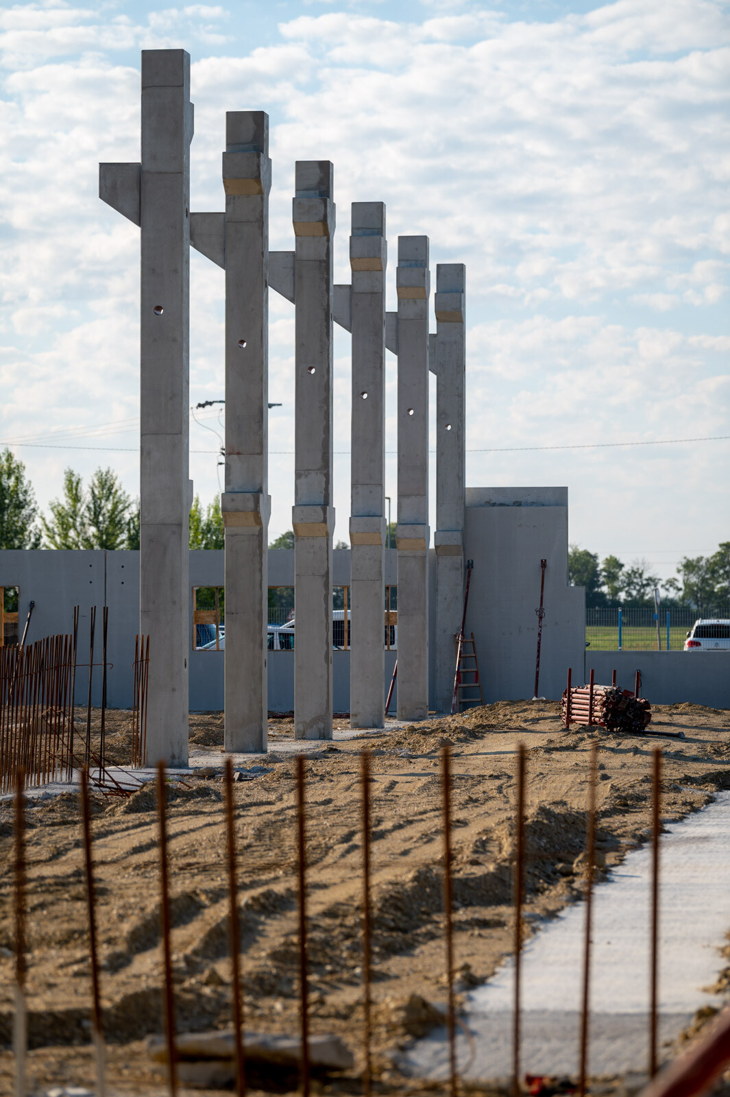 A töltőállomás építéséről Takács Gábor, az előregyártott vasbeton szerkezetek üzletágvezetője elmondta, jelenleg már épül a csarnokváz-szerkezet, ezenkívül az összes pillér és az összes feszített szelemen a helyére került, továbbá az épületet merevítő vasbeton kéregfalaink beépítése is zajlik.