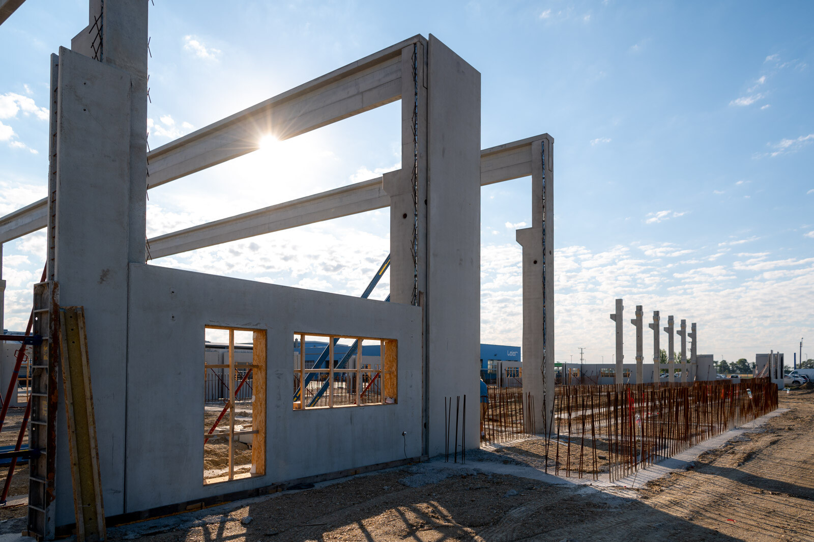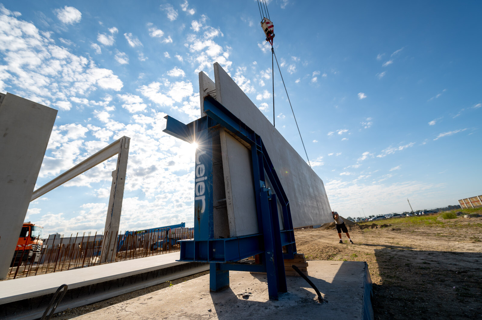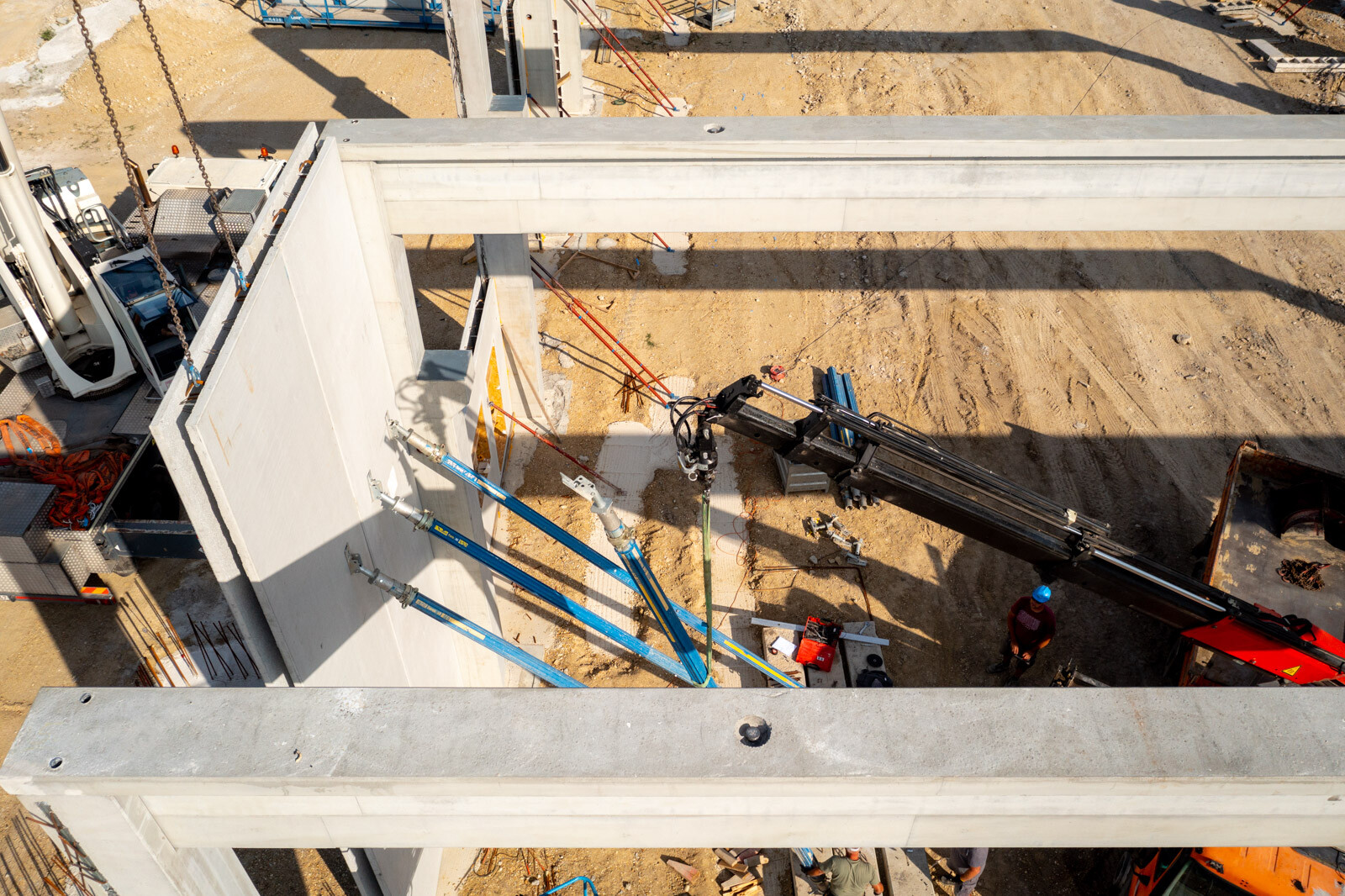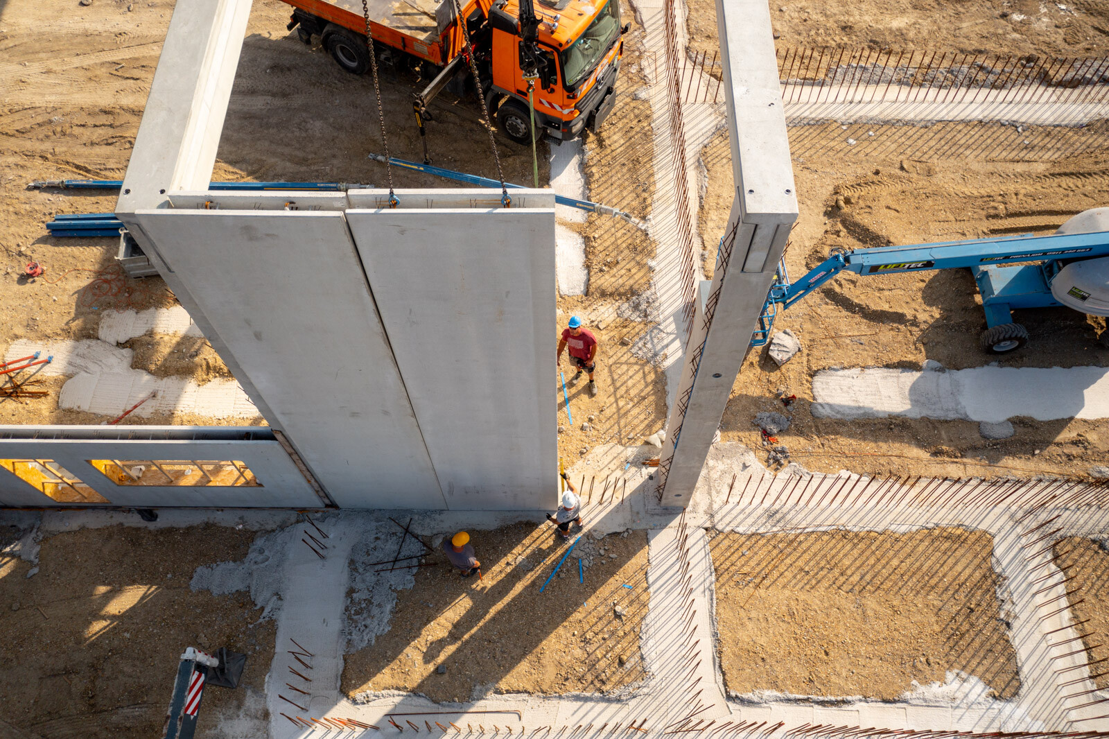 „Mivel a műhely darupályával is rendelkezni fog, indokolt volt a nagy belmagasság megvalósítása. Az épület körítő falaihoz a nagy belmagassághoz igazodva több mint 9 méter magas Leier kéregfalakat építettünk be. Ahogyan korábbi projektjeinknél, úgy most is elmondhatjuk, az itt beépített vasbeton kéregfalak akár 240 perces tűzállósági értéket is elérhetnek” – fűzte hozzá Takács Gábor.