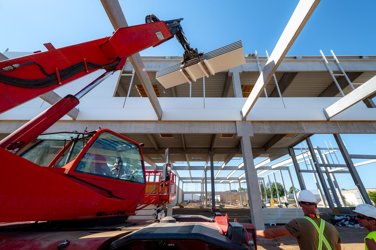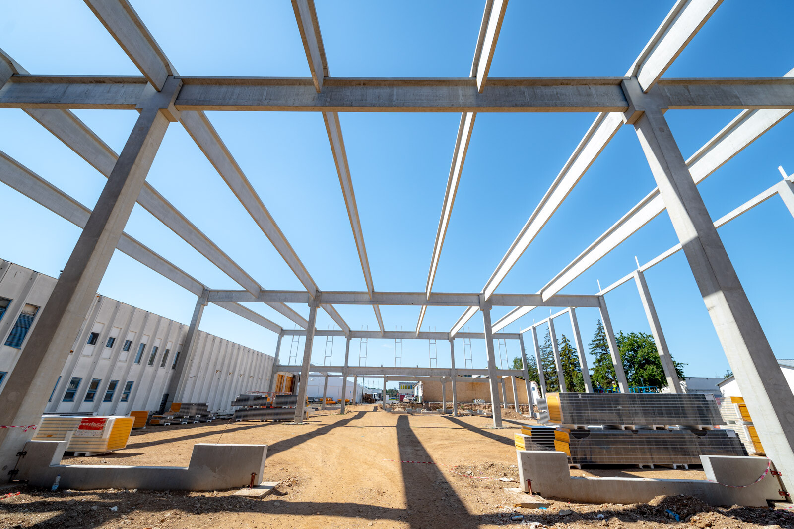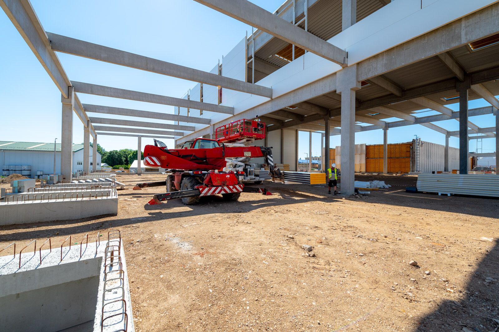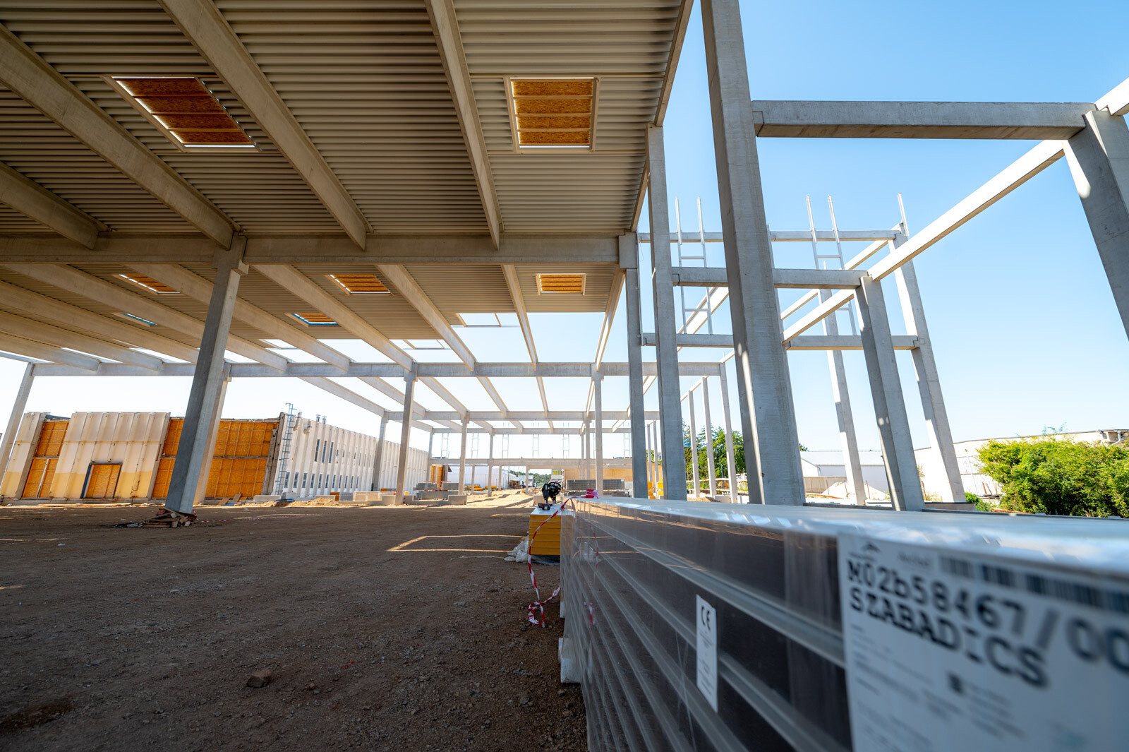 Az épület teljes generálkivitelezéséért felel a vállalat - épületgépészeti, elektromos, szakipari munkákkal együtt. Az épület alapozása, illetve az előregyártott vasbetonszerkezetek építési munkái már elkészültek – tette hozzá a projektvezető.