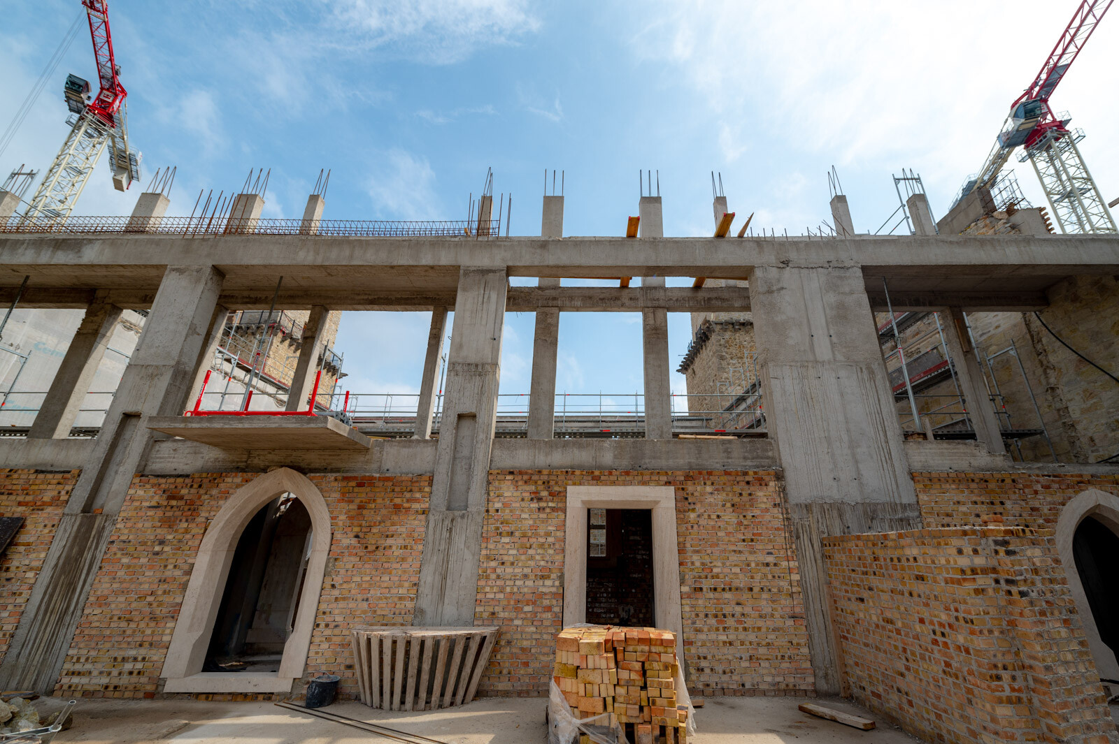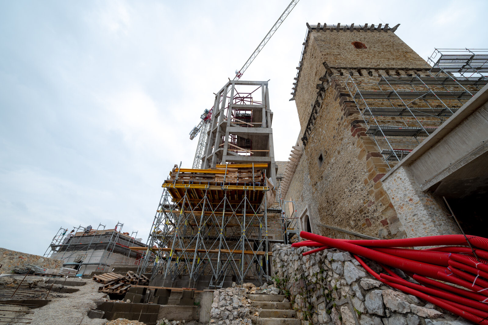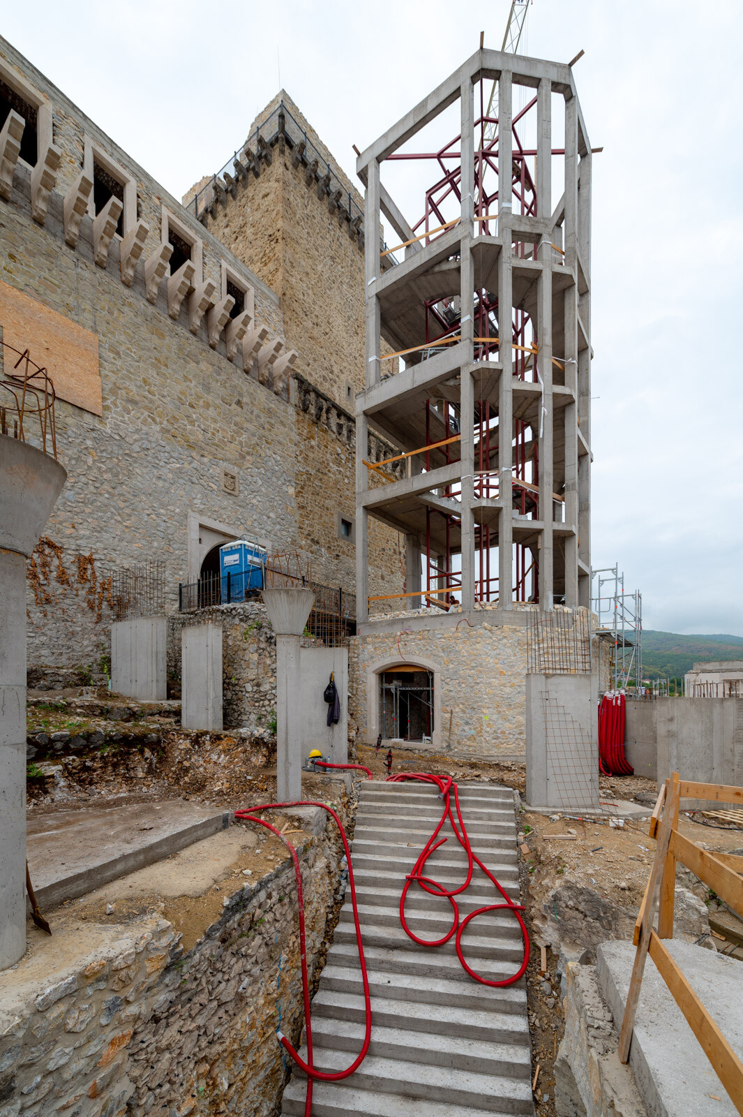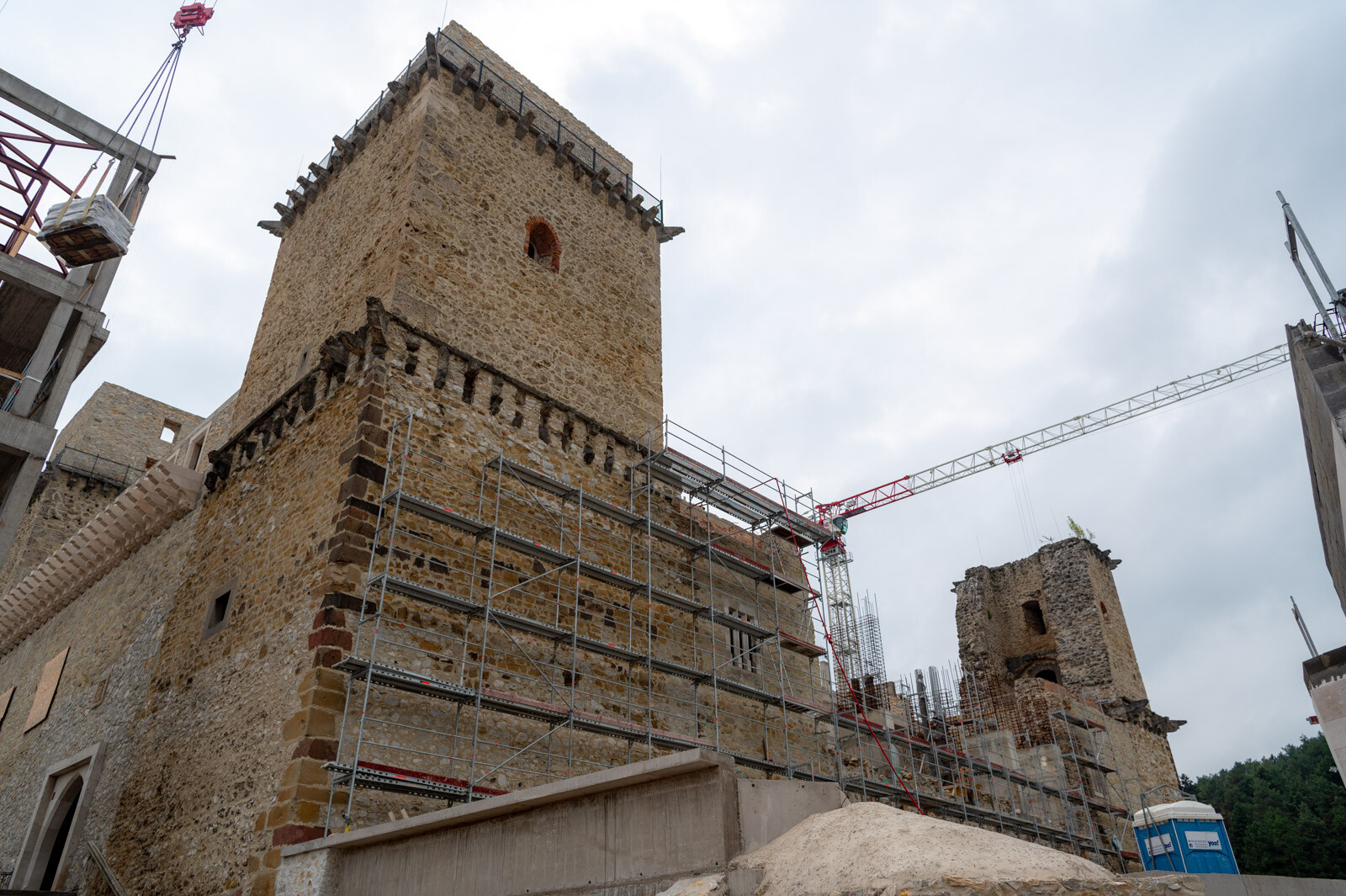Az északnyugati szárnyban található hatszögletű, lépcsőházi funkciót ellátó torony falazását végzik, mindemellett az azt megkerülő rámpa megkapta betonszerkezetét.