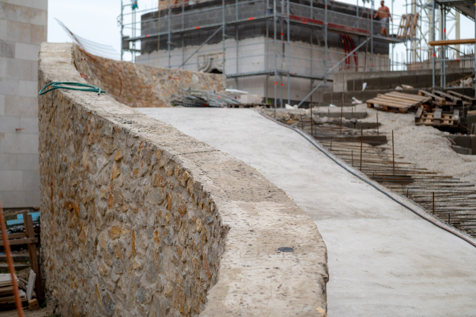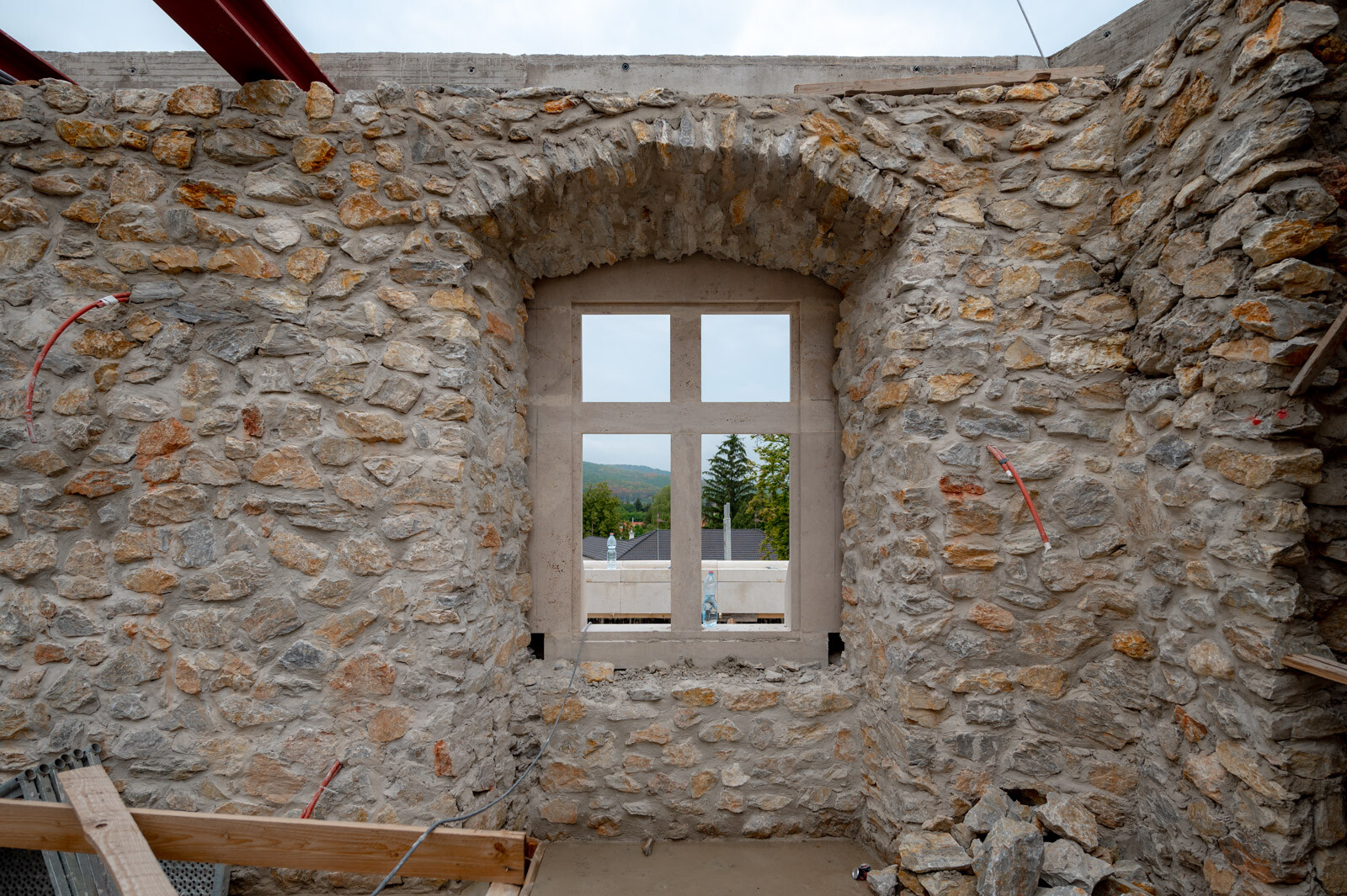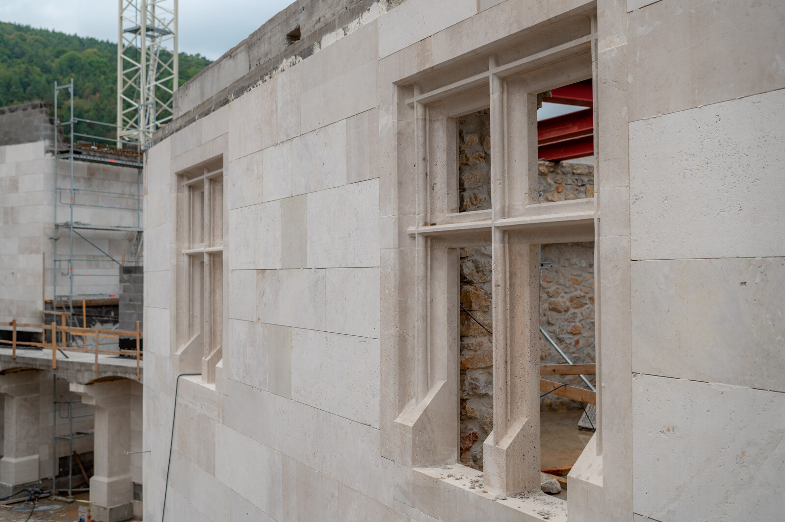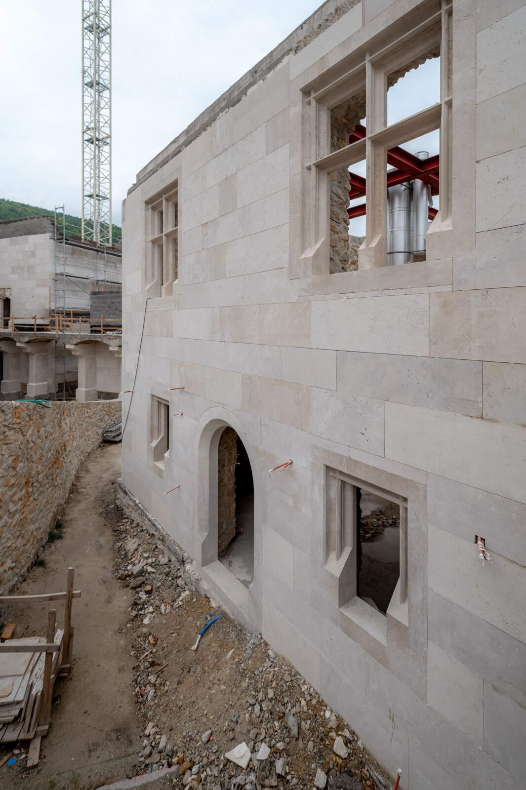 Továbbá a külső konyhaépületnél meglévő régi kőkeret egy darabját újra elhelyezték az új kőfalban. A külső várfal egyre inkább nyeri el végső megjelenését, hiszen a kőburkolat impregnálása történik. Ezzel az anyagkezelési művelettel a nyugati oldali falszakaszon már el is készültek, így ezen a részen már látható, hogyan fog valóban kinézni a külső várfal – tette hozzá Csehes Réka.