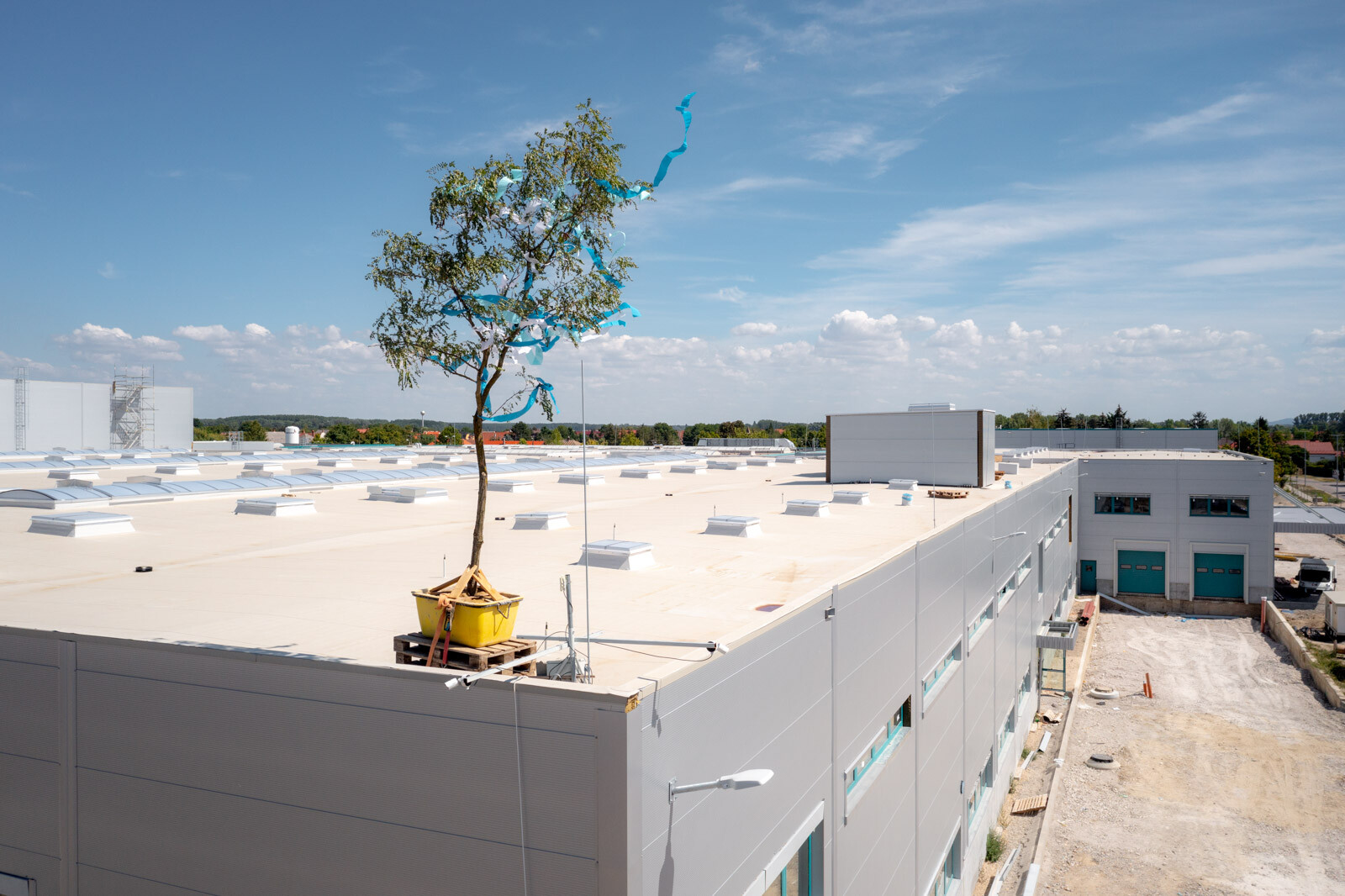 Jelentős mérföldkövéhez érkezett a SICK Kft. Győr-Moson-Sopron megyei telephelyét bővítő beruházása: Elérte ugyanis legmagasabb pontját az üzemi és raktározási céllal épülő új üzemépület, melyet a hagyománynak megfelelően, az épület tetején elhelyezett bokrétával ünnepeltek 2022. augusztus 10-én.
