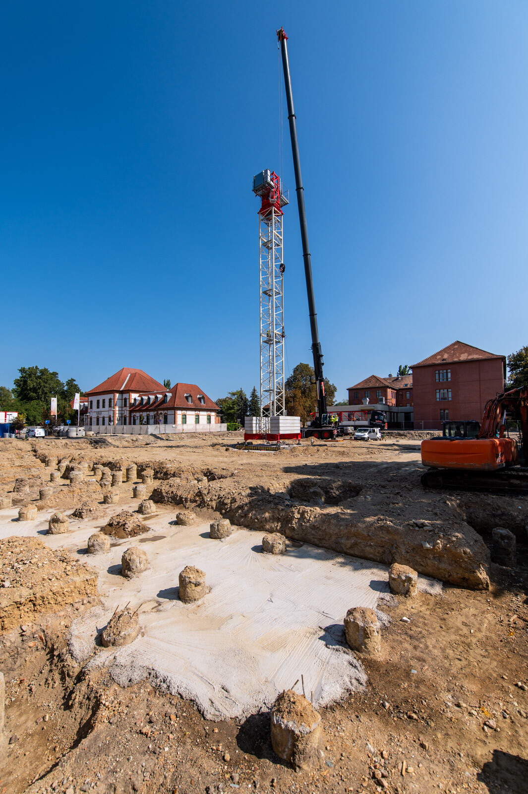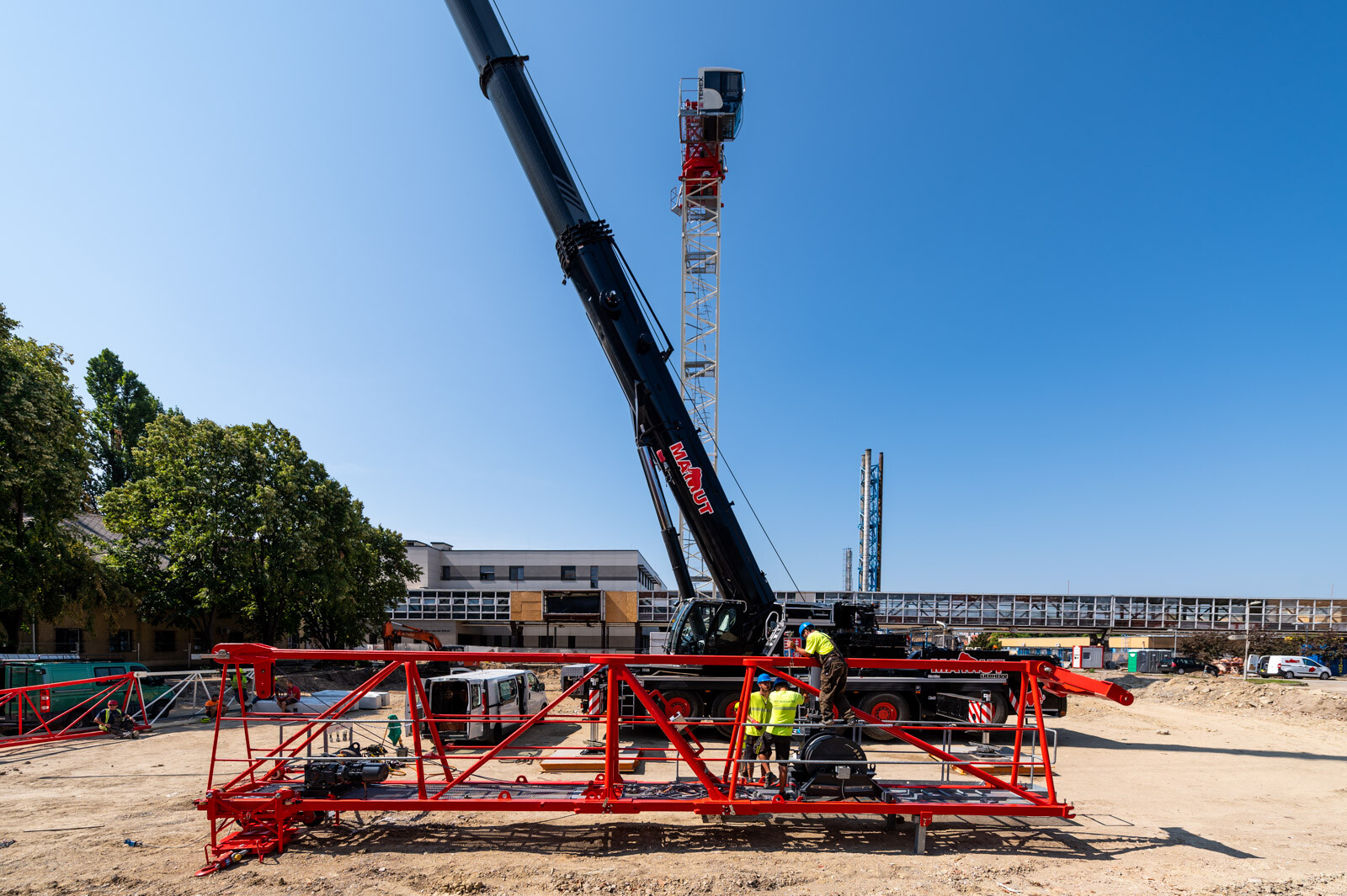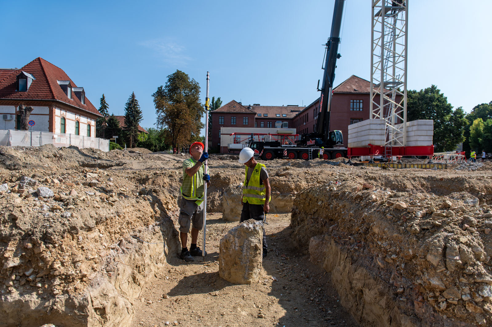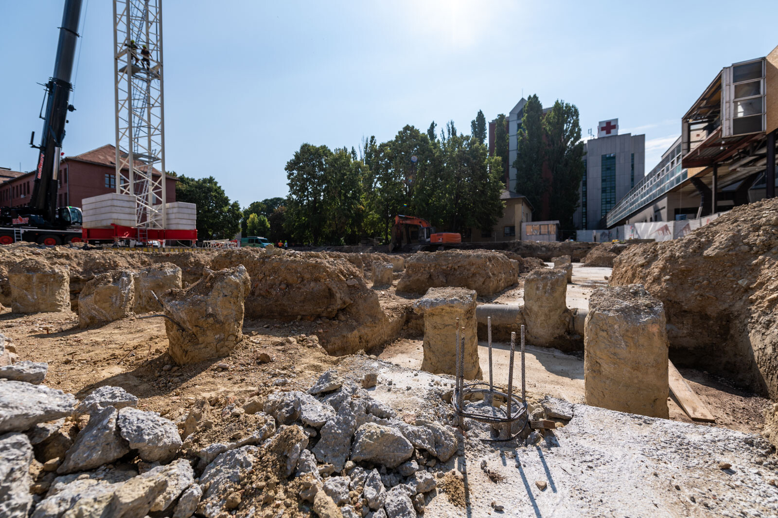 Szintén szó esett arról is, hogy a hónap elején elején felállítottak egy 50 méter gémhosszúságú toronydarut (felállítása idején a helyszínen is járt a fotósunk), illetve egy helyszíni autódaru is segíti a kivitelezés folyamatos haladását.