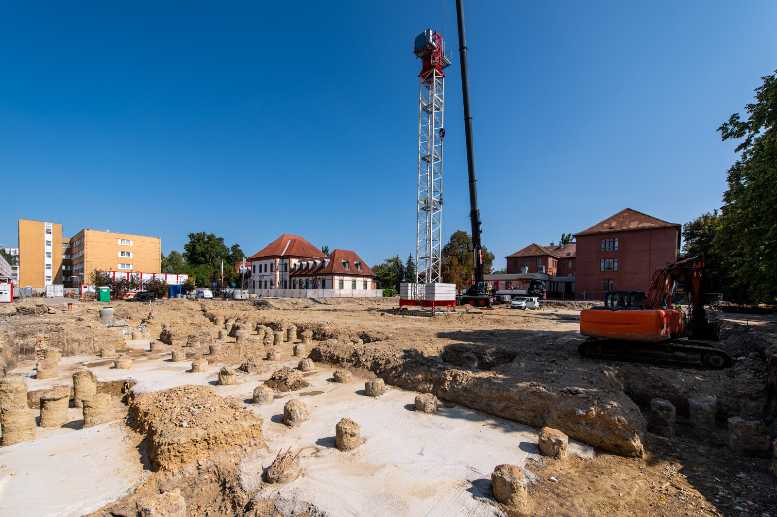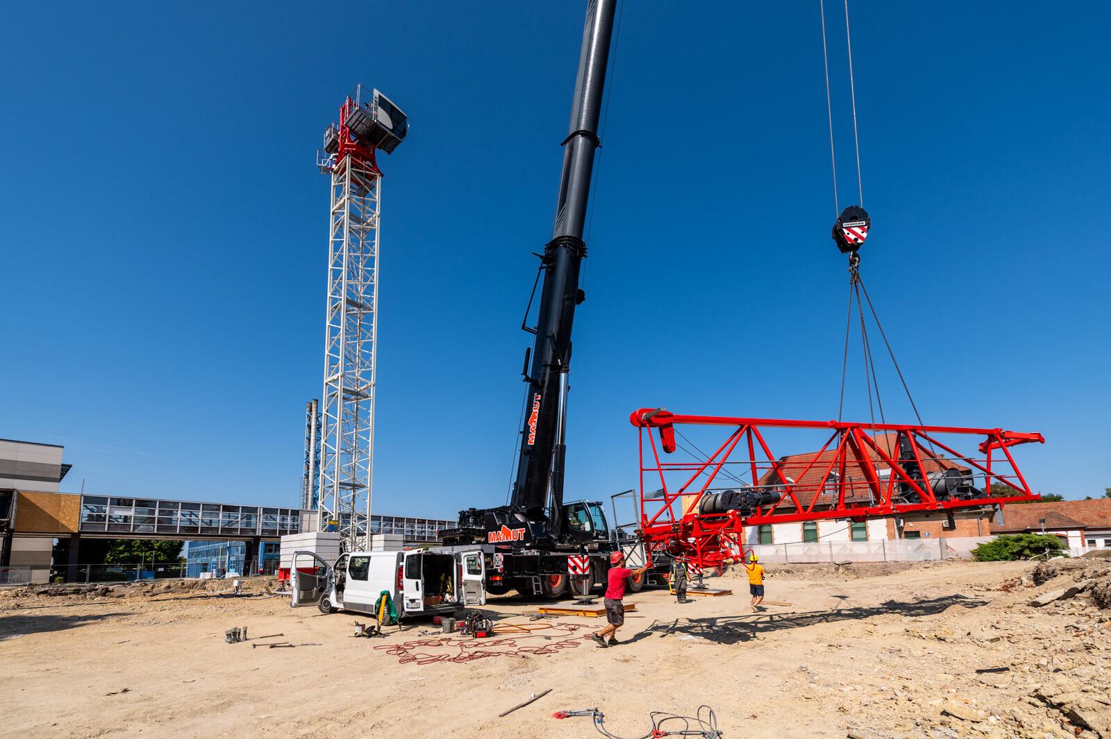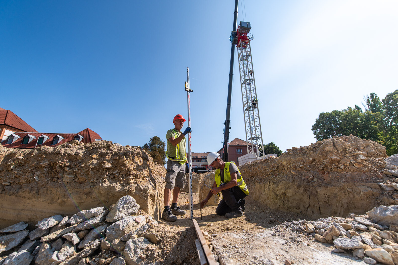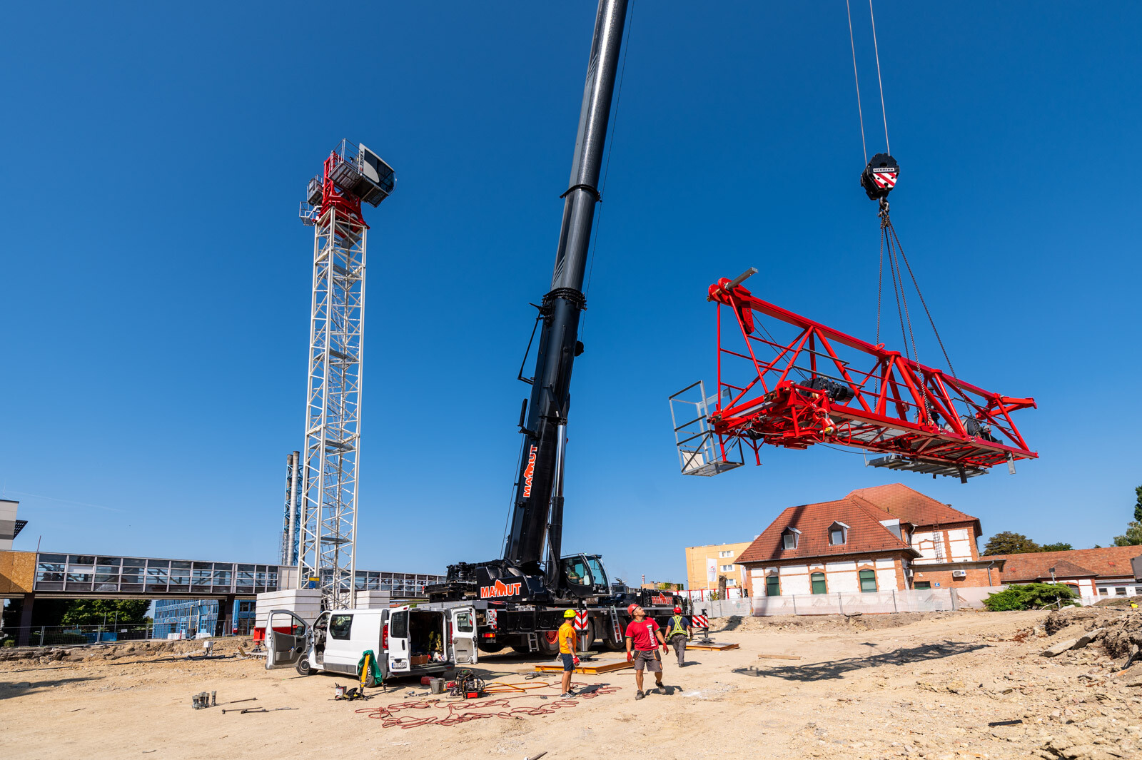 Szintén szó esett arról is, hogy a hónap elején elején felállítottak egy 50 méter gémhosszúságú toronydarut (felállítása idején a helyszínen is járt a fotósunk), illetve egy helyszíni autódaru is segíti a kivitelezés folyamatos haladását.