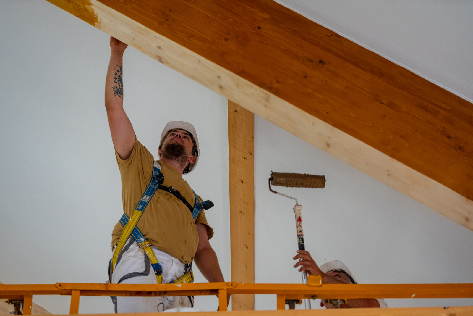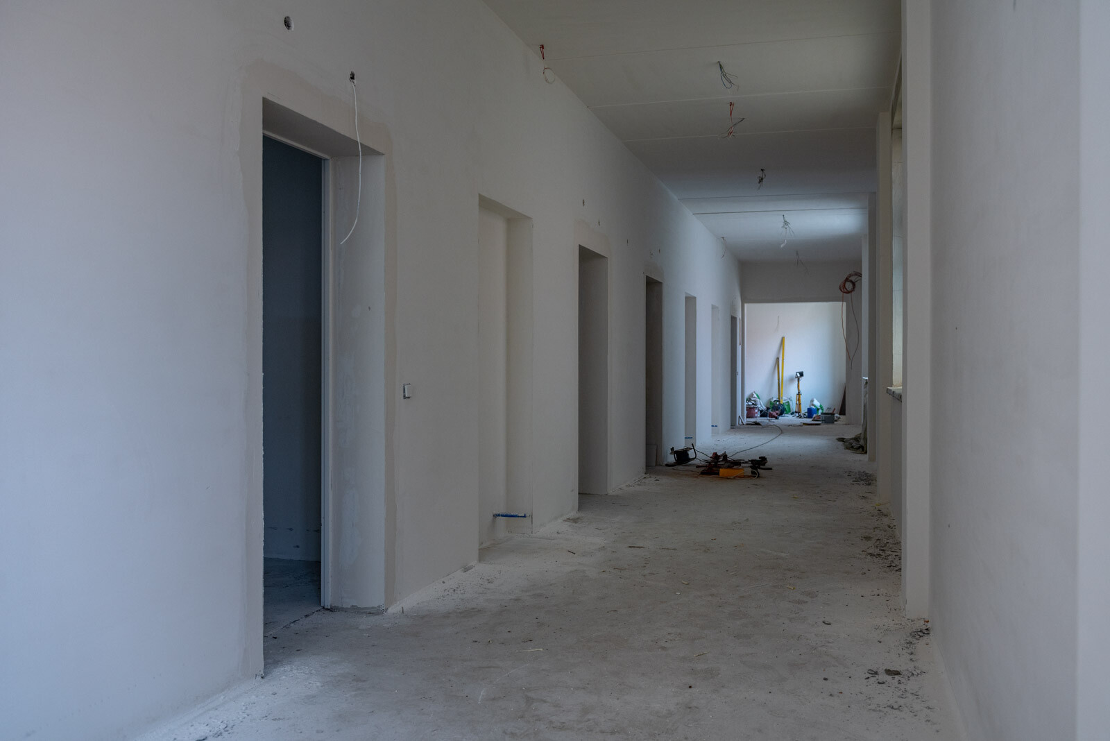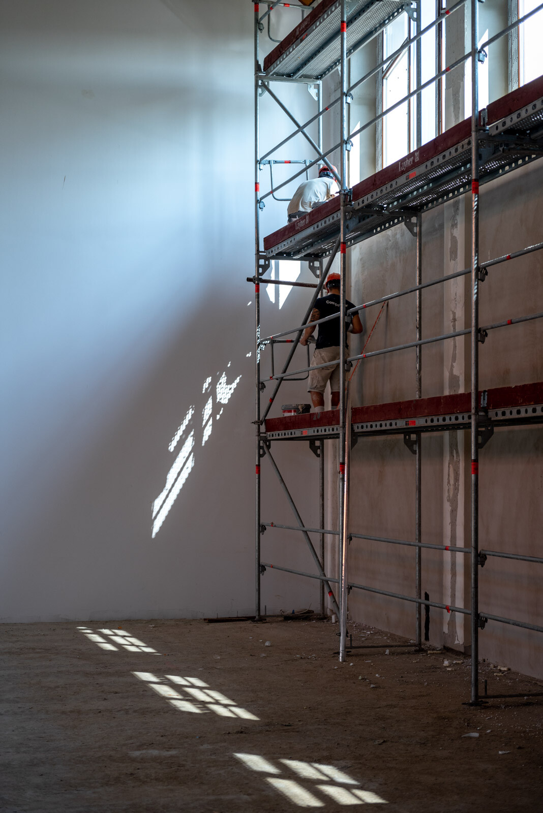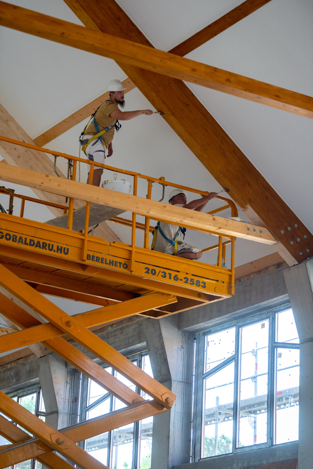 „Jelenleg az épület külső homlokzatának felületképzése van folyamatban, valamint a belső szakipari munkák közül a felületképzés folyik az iskolai részen, emellett a hideg- és melegburkolási munkák is elkezdődtek. Beépítettük a homlokzati nyílászárókat, a belső ajtótokokat, elkészültek a gépészeti és elektromos alapvezetékelések, a kazánházi gépészeti szerelés pedig szintén folyamatban van” – fűzte hozzá a termelési főmérnök.