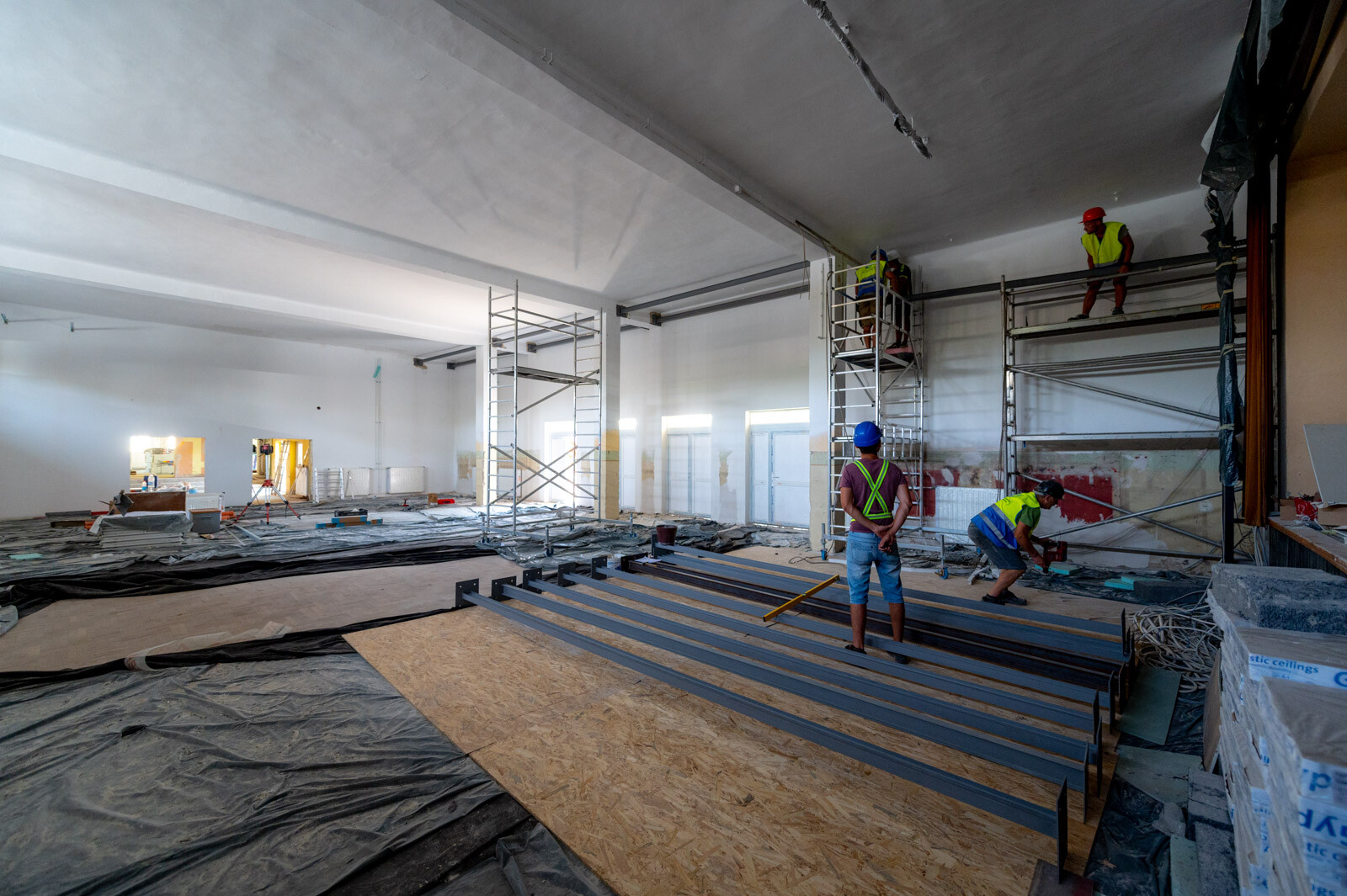 Az egész épületre vonatkozóan megvalósul a belső festés, emellett a közösségi terekben lamellás álmennyezet készül.
