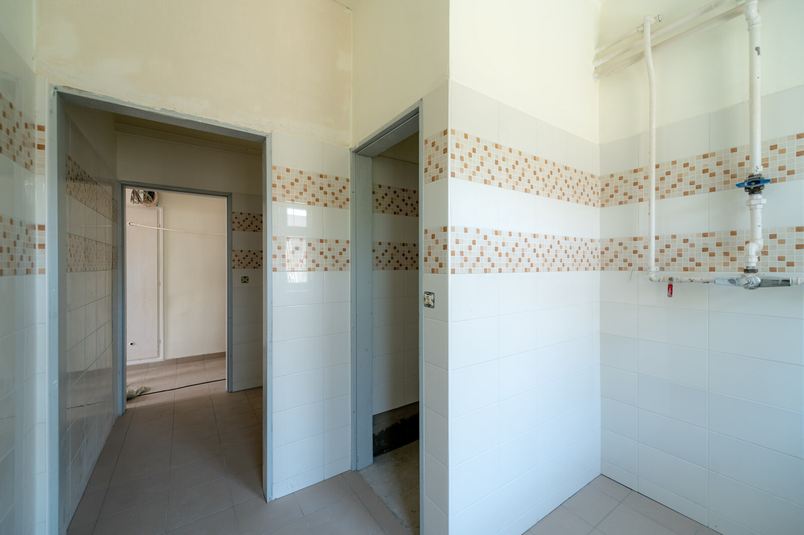 A vizes helyiségekben, valamint a konyha területén található helyiségekben új fal- és padlóburkolatot alakítanak ki. Egyéb helyeken a meglévő PVC burkolatot új, nagy kopásállóságú, gumi burkolatra cserélik.