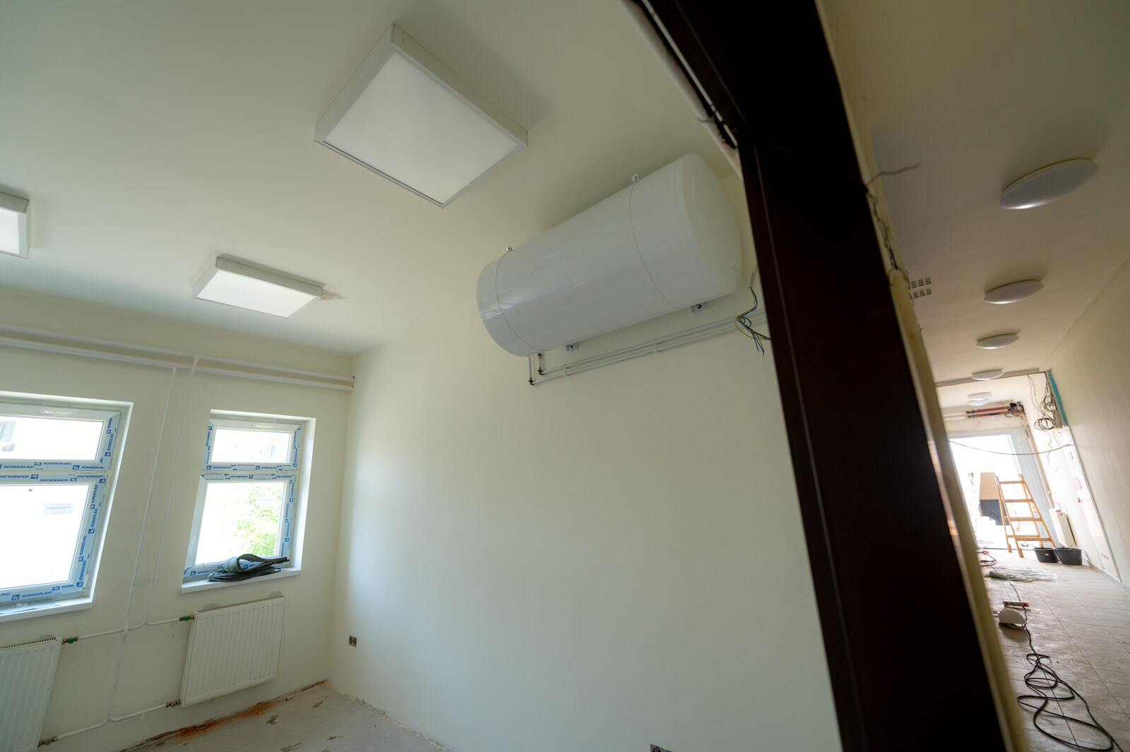 Megvalósul a padlóburkolatok cseréje, a falburkolatok kialakítása, az új beltéri nyílászárók beépítése, továbbá kialakítanak