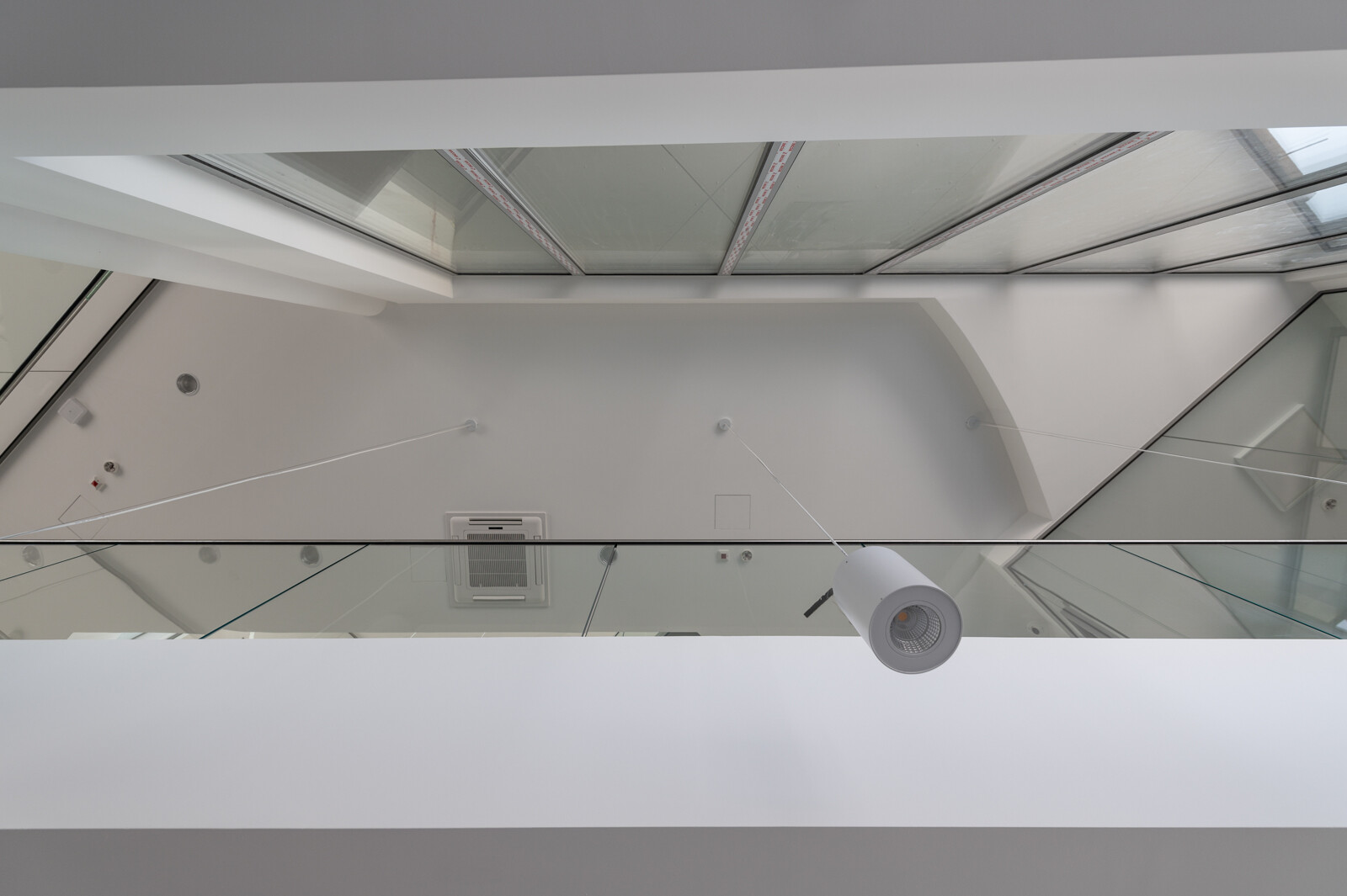 A tervező elképzelése szerint alakították ki a 405 négyzetméter homlokzati üvegburkolatot csúsztatott zsalugáterekkel. A tető és a 2. emelet acélszerkezet kialakítású, alatta monolit vasbeton szerkezet található. A belső nyílászárók esetében DEKO üvegfalakat, míg a homlokzati nyílászáróknál alumíniumot használtak.