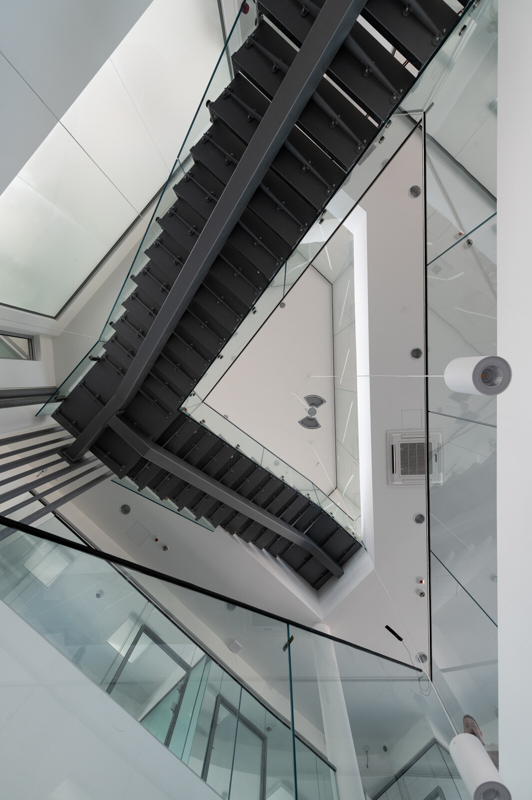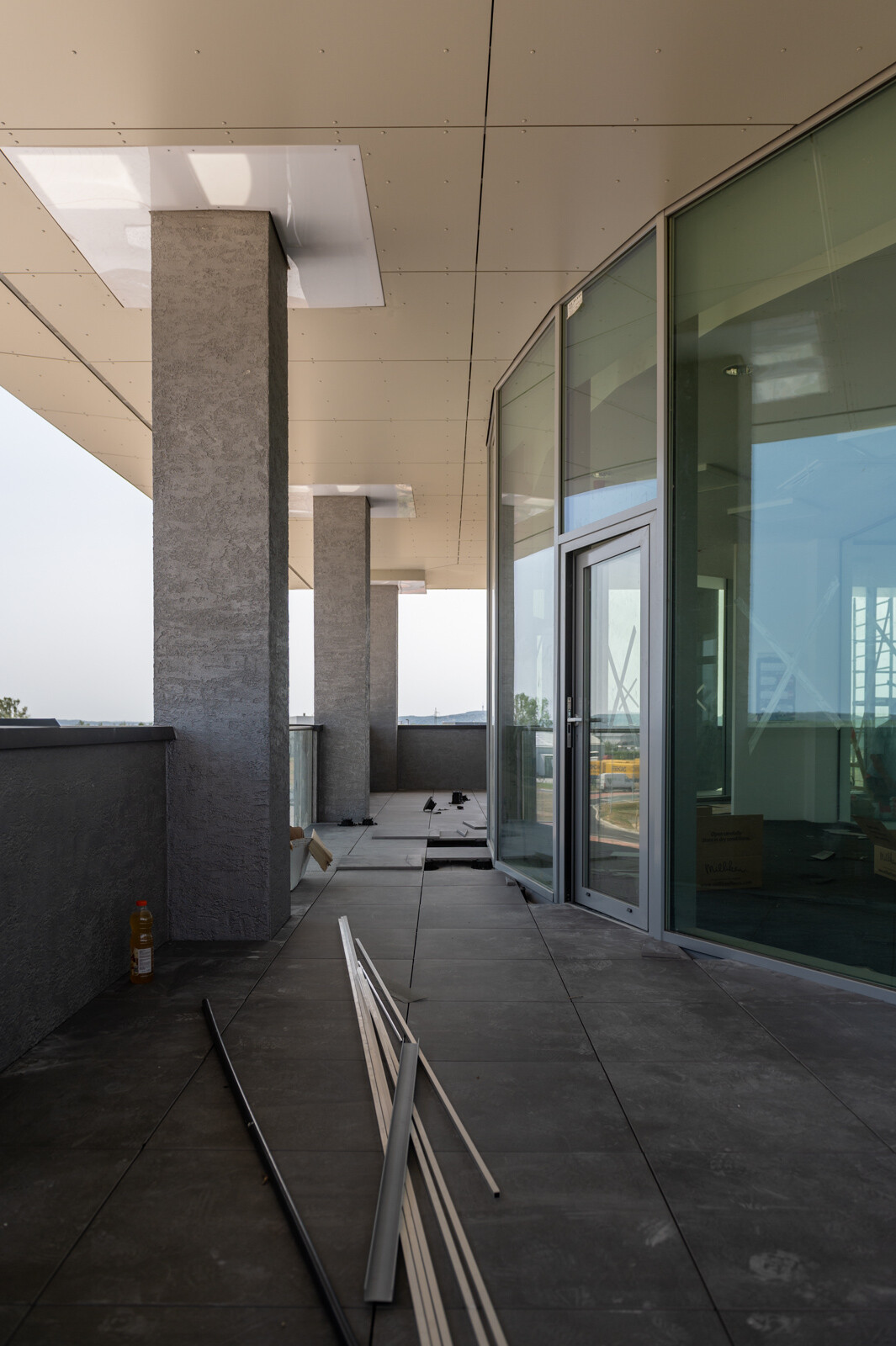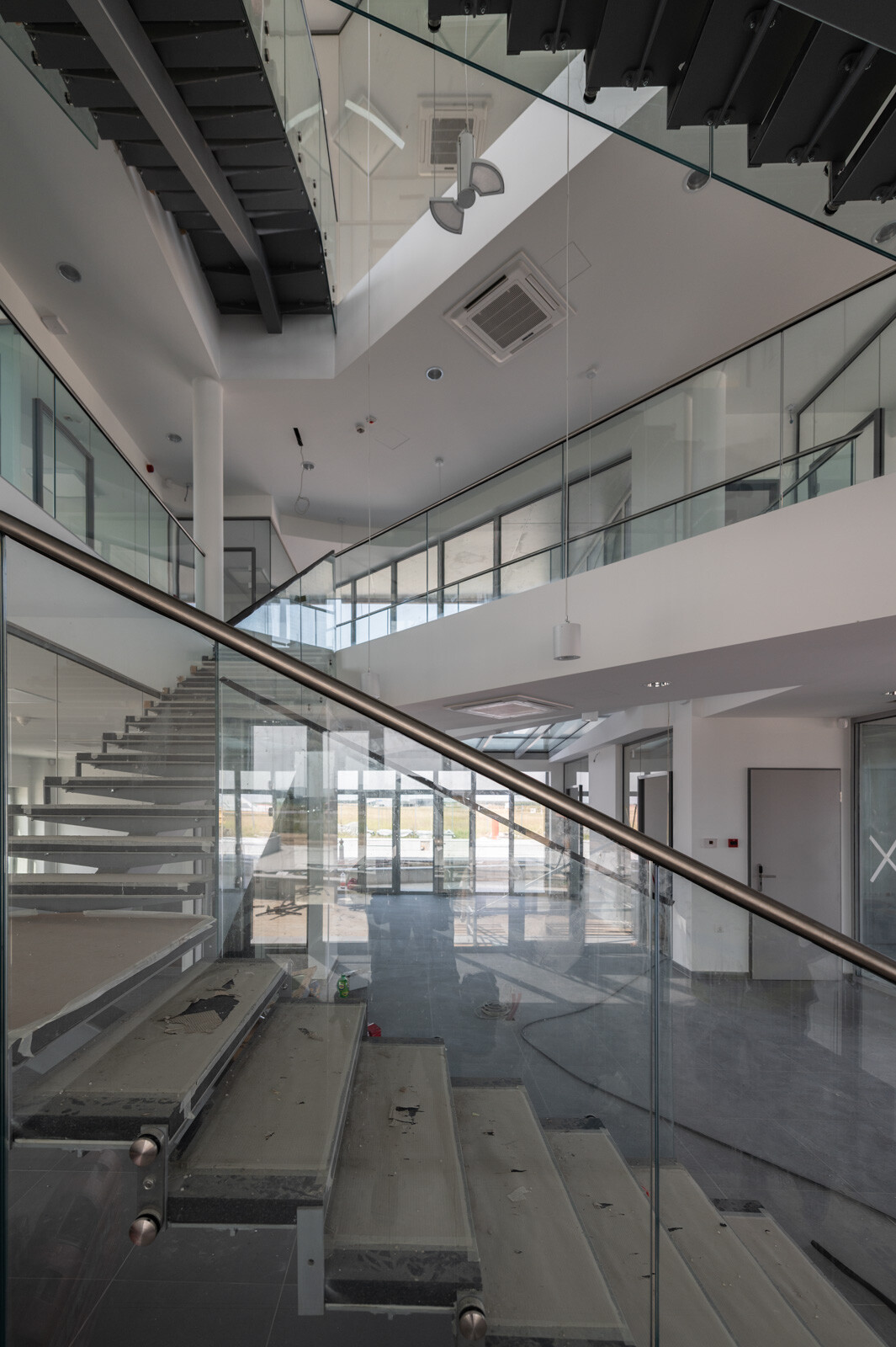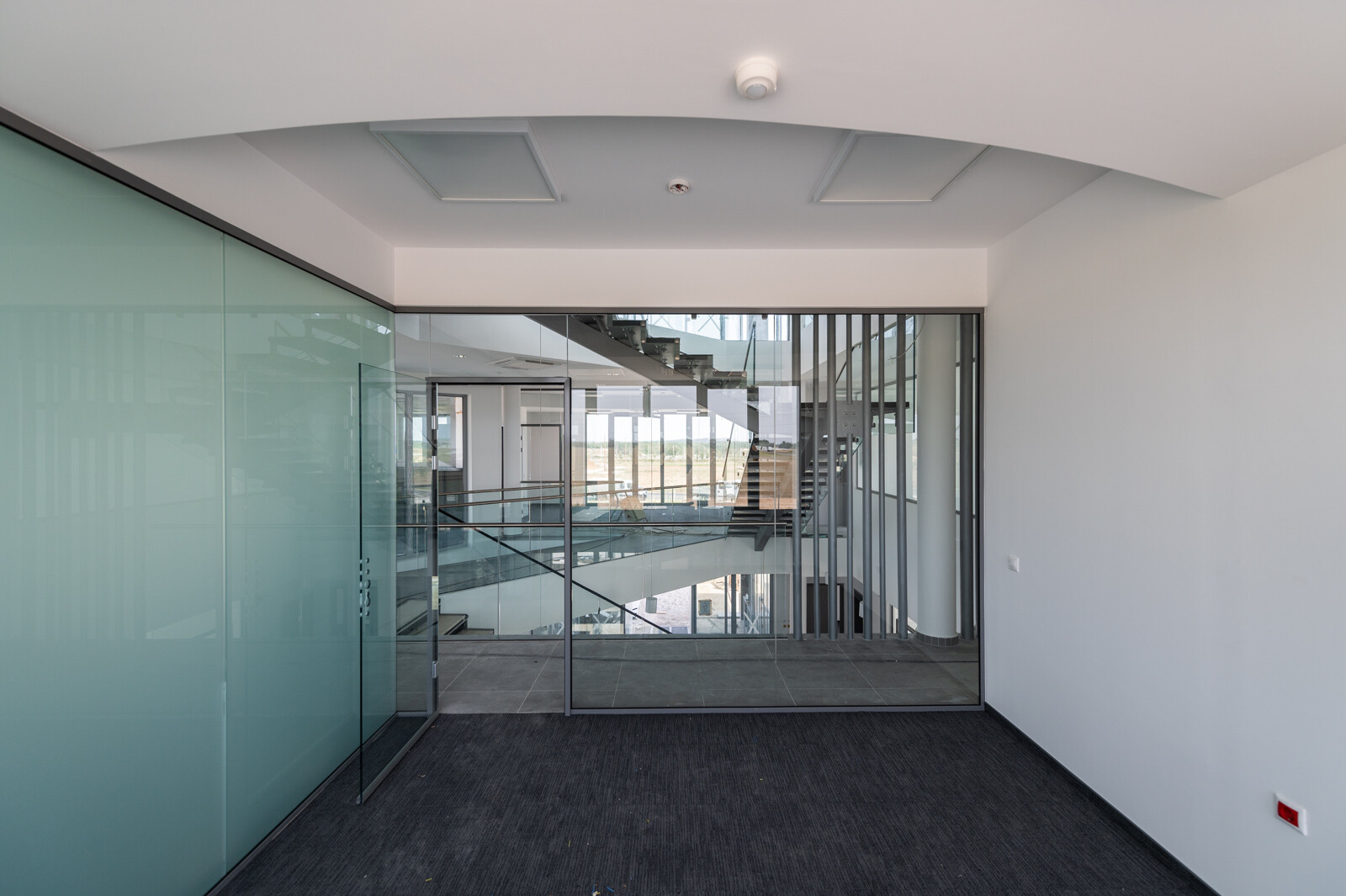 A földszint + 2 szintes épület bástyaként helyezkedik el egy medencében. Homlokzata üvegburkolatú, szálcement burkolattal kiegészítve. Az irodaházon belül üvegkorlátok és gránit lépcsőlapok találhatók. „Az épület kialakításánál nem volt elég a szabványok betartása, tökéletes felületeket kellett létrehoznunk, hogy a különböző szerkezetek illeszkedjenek egymáshoz” – tette hozzá a főmérnök.