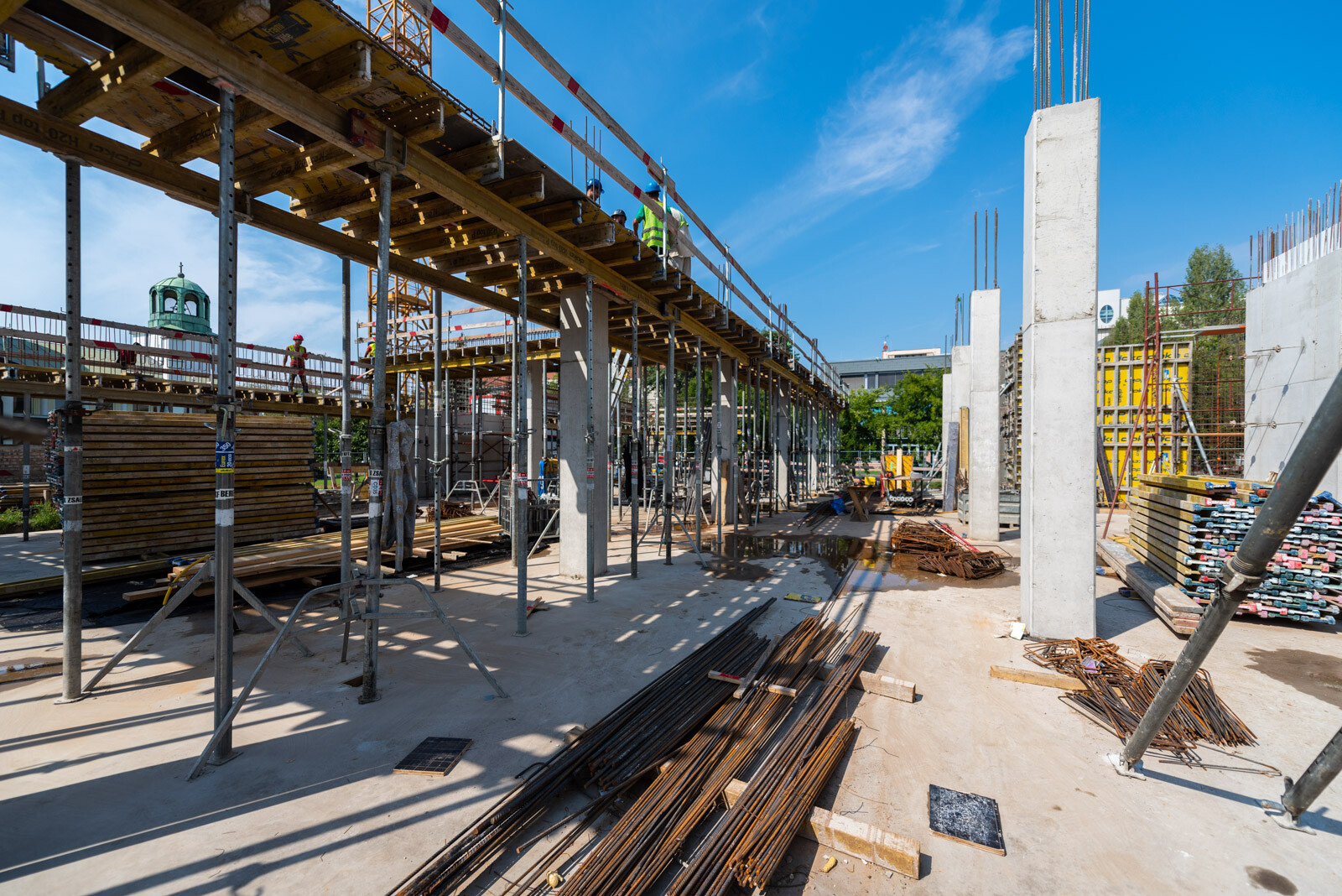 „A földmunkák és a munkagödör elkészültével az ütemtervnek megfelelően az építkezés a szerkezetépítés szakaszában tart. A pinceszinti vasbeton falakkal, pillérekkel és a födémmel már elkészültünk, így jelenleg a földszinti pillérek, gerendák, liftakna és lépcsőházi falak, illetve a lépcsők kivitelezése zajlik.”